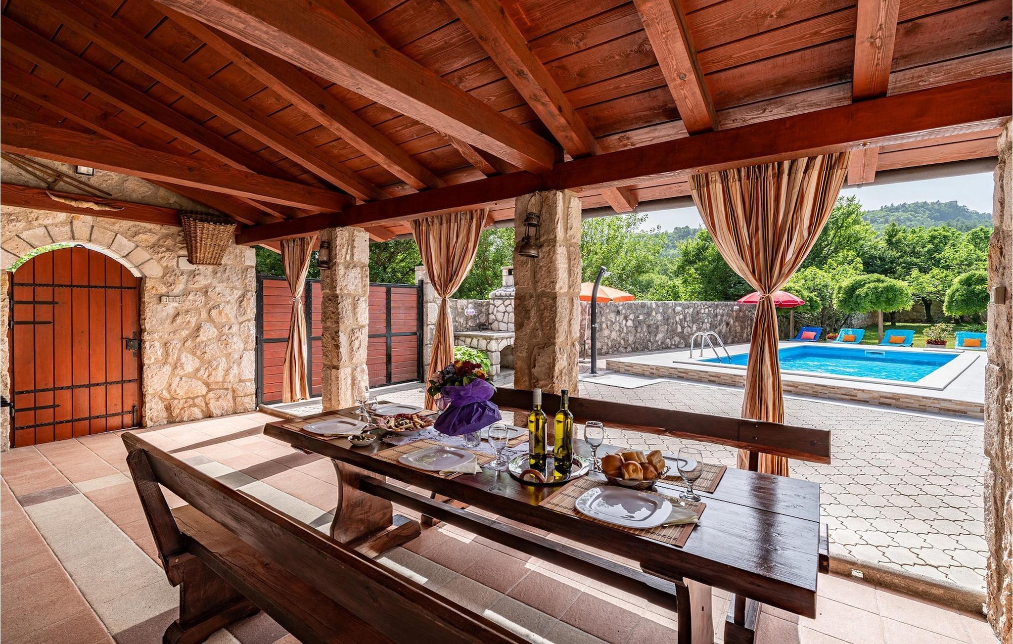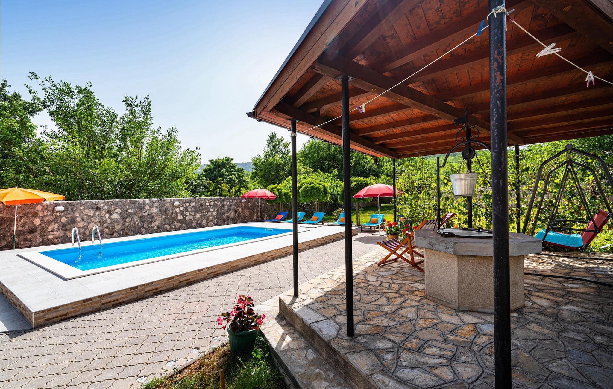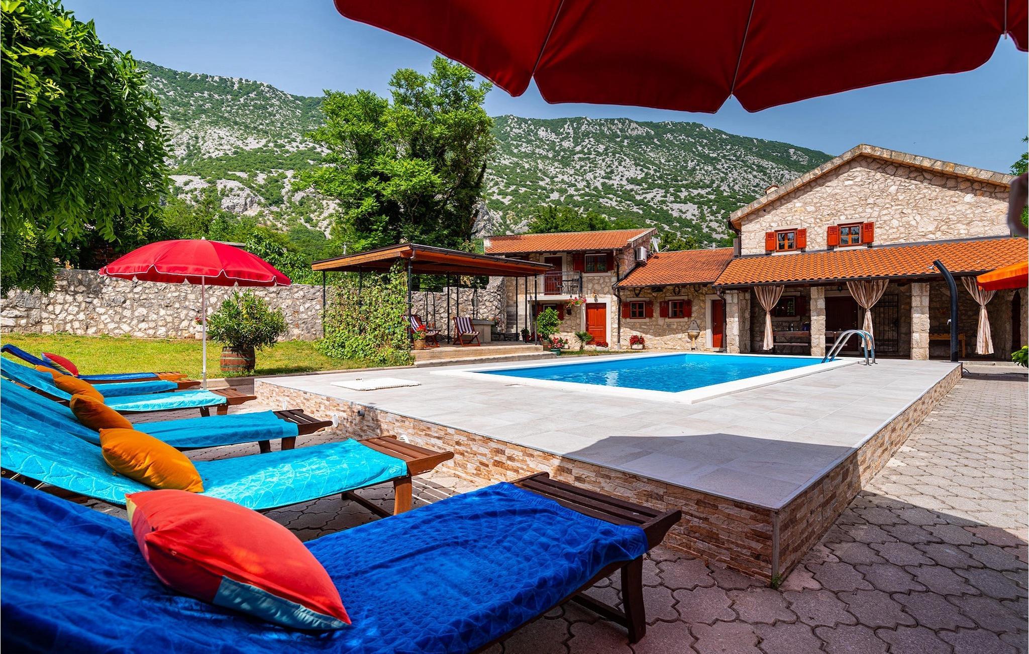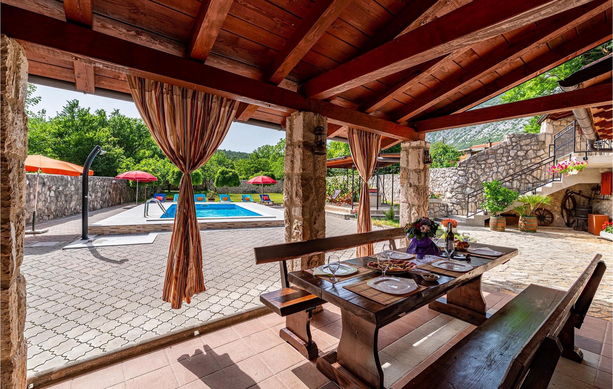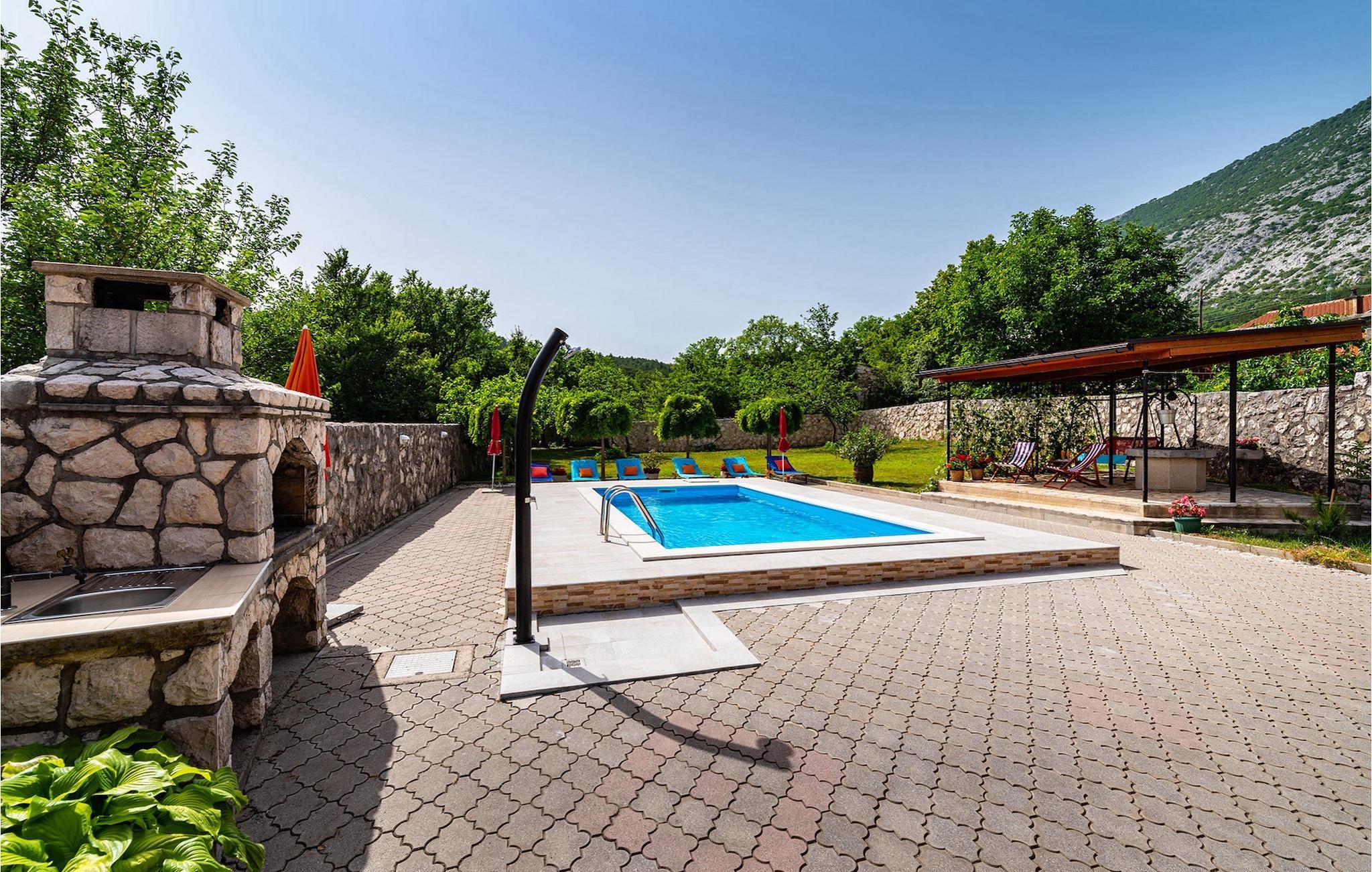 Villa Castra er et traditionelt hus fra det 19. århundrede, der blev nyrestaureret som et luksus stenhus. Huset er beliggende i Vinodol-dalen lige under den historiske Drivenik gamle bydel og slottet, som først blev nævnt i Vinodols lovkodeks i det 13. århundrede. Villaen er rummelig og elegant indrettet med stenvæggeelementer og træbjælker og interiør med aircondition. Det består af separate lejligheder; hver lejlighed har en separat indgang udefra, og de er ikke forbundet indvendigt. Lejligheden til højre består af et fuldt udstyret køkken, spisestue, 2 soveværelser med dobbeltsenge og 2 badeværelser samt en dejlig stue med fladskærms-satellit-tv og pejs til fælles brug. I lejligheden til venstre er 2 soveværelser med dobbeltsenge og 1 badeværelse. Det ydre består af en fuldstændig indhegnet stor privat have med swimmingpool og liggestole, stengrill, overdækkede terrasser med stort spisebord. Der er også gratis trådløs internetadgang og stor privat parkering. Ejendommens gunstige beliggenhed giver en ideel mulighed for dem, der foretrækker en rolig ferie væk fra stress og larm. Vinodol-dalen er et paradis for fiskere, cyklister, vandrere, vandrere, klatrere, paraglidere med mange cykelstier, vandreture og vandrestier, der passerer gennem fascinerende Vinodols områder, som giver vores gæster mulighed for at opleve bevaret natur og kulturarv. Kystbyerne Crikvenica og Novi Vinodolski med smukke strande og restauranter eller øen Krk ligger kun 10 minutters kørsel væk. Den største kroatiske havneby Rijeka ligger 30 km derfra, og Rijeka Lufthavn ligger 5 km derfra. En bil anbefales.