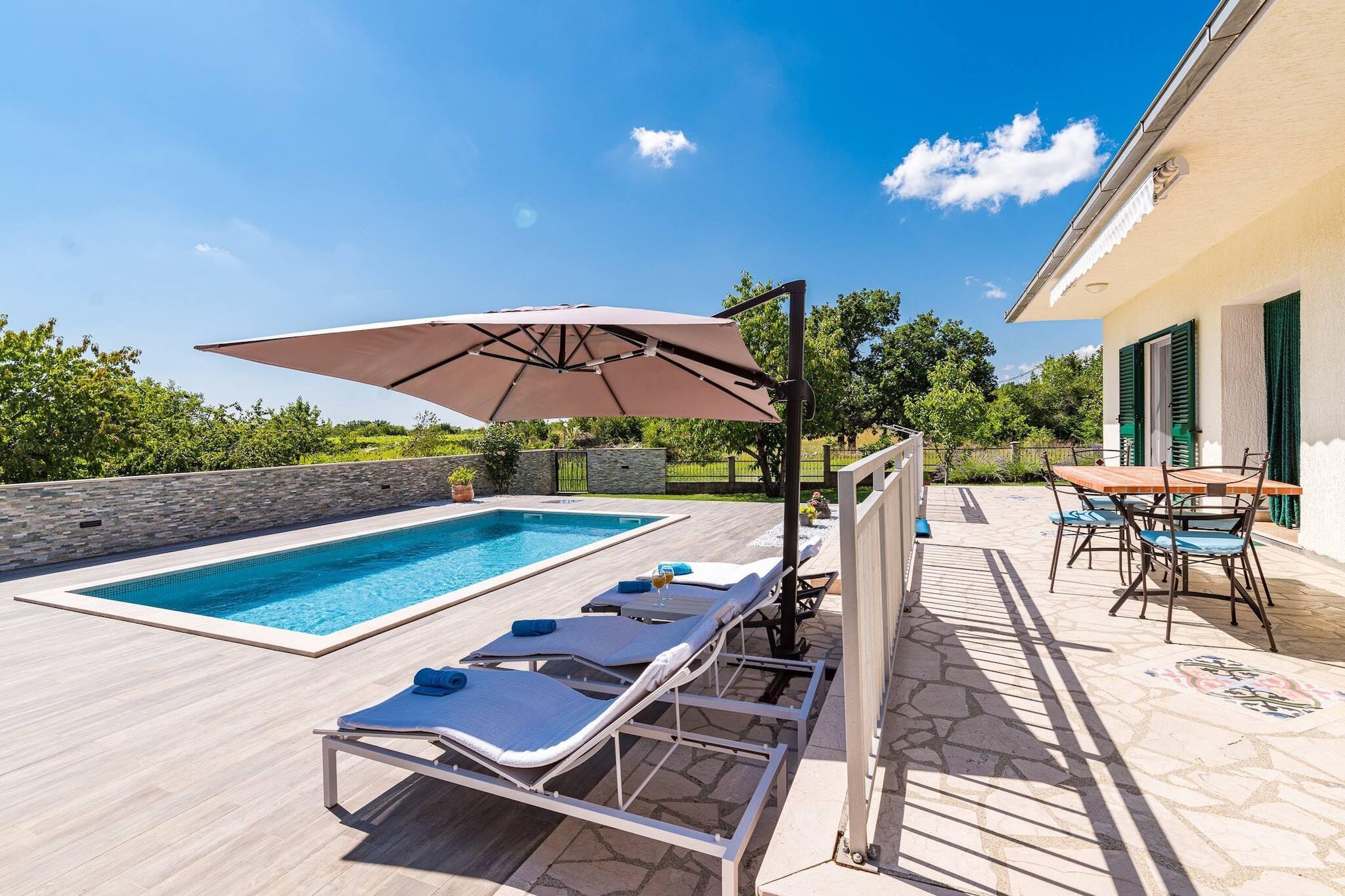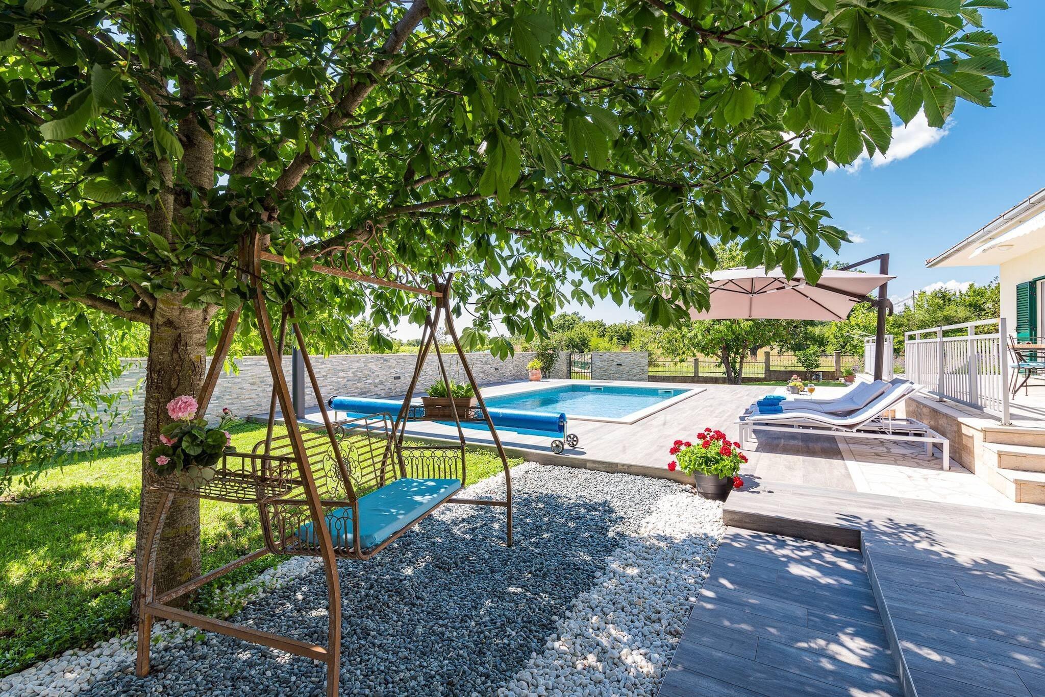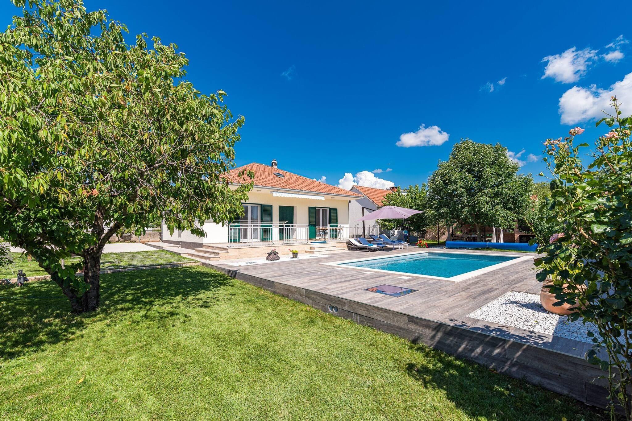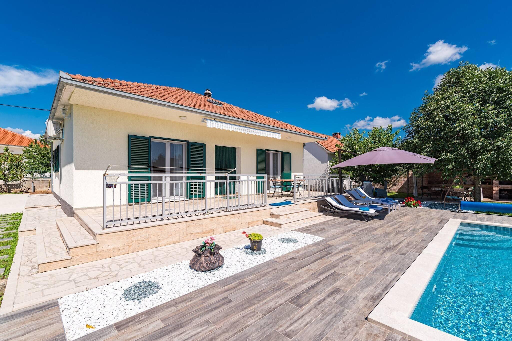 Denne stilfulde villa med 2 soveværelser ligger i den fredelige landsby Danilo Kraljice og tilbyder moderne komfort og landlig charme til op til 6 gæster. Det 100 m² store hus har en smukt anlagt have, privat swimmingpool og en stor indhegnet grund, hvilket gør det ideelt for familier eller venner, der ønsker at slappe af i naturen. Huset kan prale af et fuldt udstyret køkken med gas- og elektriske apparater, herunder opvaskemaskine, kaffemaskine og mikrobølgeovn. En lys opholdsstue, to hyggelige soveværelser og moderne faciliteter som aircondition, Wi-Fi, vaskemaskine og tv sikrer et behageligt ophold. Gæsterne kan slappe af på terrassen, nyde udendørs måltider med grillen eller tage en forfriskende dukkert i poolen. Ejendommen ligger kun 22 km fra vandfaldene i Krka Nationalpark og 34 km fra Aquapark Dalmatia og tilbyder nem adgang til både naturlig skønhed og lokale attraktioner. Med sine rolige landlige omgivelser og moderne bekvemmeligheder er denne villa et perfekt tilflugtssted for både afslapning og eventyr.