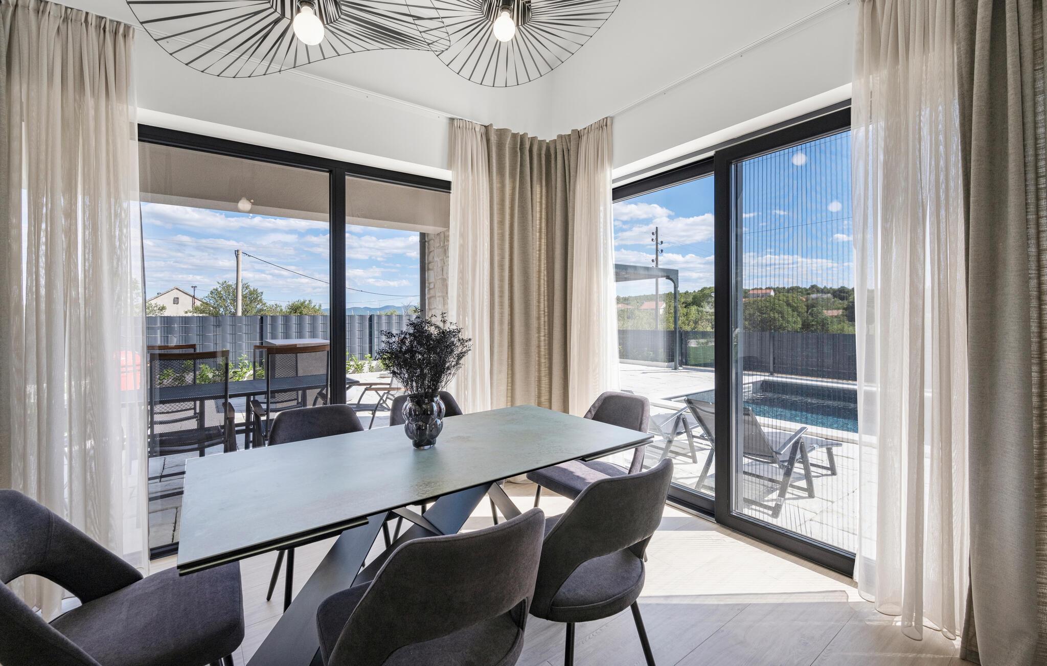 Nyd en afslappende ferie i dette moderne og smagfulde feriehus med pool. Forkæl dig selv med lidt luksus på ferien og tilbring din længe ventede familieferie i dette komfortable og stilfulde feriehus. Her er der tænkt på alt, så det eneste du skal gøre er at sætte fødderne op og slappe af. På kølige aftener kan I samles i opholdsstuen til en filmaften med knitrende åben ild, eller fremtrylle lækre retter i det åbne køkken. Du kan også opdage haven, som indbyder til at hygge dig i poolen. Læs en bog om liggestolene, mens dine børn plasker i vandet. Dette luksuriøse feriehus med pool ligger i Danilo, ikke langt fra Sibenik. Det er omgivet af natur på en smuk grund og er det perfekte valg til en familieferie. I den gamle bydel i Šibenik finder du historiske seværdigheder og livligt byliv. Besøg St. Jacobs katedral og de restaurerede forter med en fantastisk udsigt over havet og de nærliggende øer. Besøg også nationalparkerne Krka og Kornati, som vil tage pusten fra dig, og du vil vende hjem med uforglemmelige oplevelser!