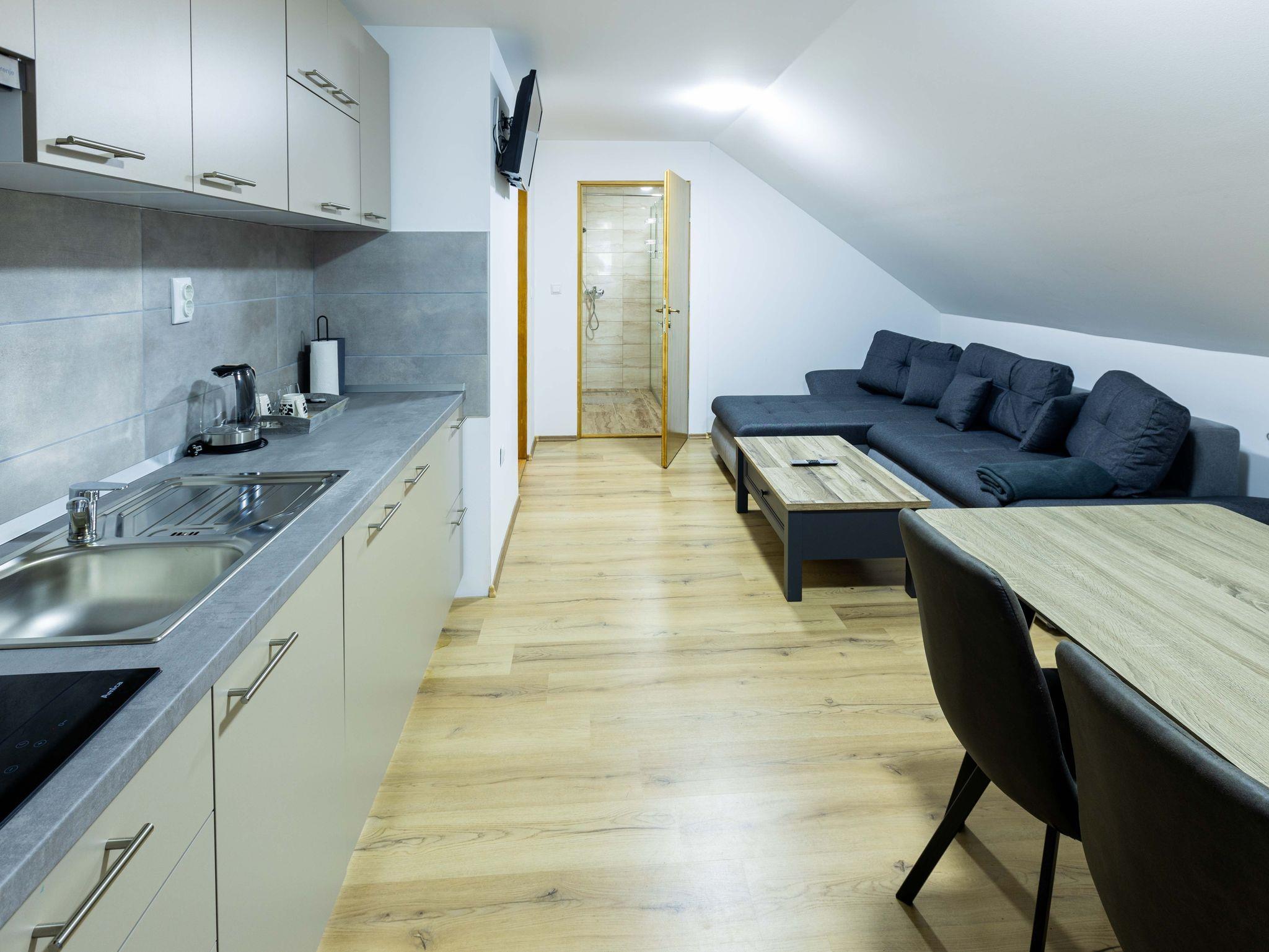 Ferienwohnung bietet Platz für 4 Gäste. Die Betten sind in Schlafzimmern, die es 1 gibt, und in Wohnzimmer, innerhalb einer Gesamtfläche von 51m2, angeordnet. Die Gäste haben eine eigene Terrasse zur Verfügung, auf der sie in warmen Sommernächten genießen können. Für vollen Genuss und Entspannung gibt es einen privaten Grill für Gäste dieser Unterkunft. Räume der gebuchten Unterkunftseinheit werden nicht in eine Ganze verbunden. IM PREIS INBEGRIFFEN: Kurtaxe, Endreinigung, Klimatisierung, Zentralheizung, Parkplatz, Internet, Bügeleisen, Föhn. VERBINDLICHE ZUSÄTZLICHE KOSTEN: Aufzahlung für Kurzaufenthalte (prozentualer Zuschlag pro Nächtigungsanzahl: 30% - 1, 20% - 2, 10% - 3). UNVERBINDLICHE ZUSÄTZLICHE KOSTEN: Frühstück (5,00 €, 50% Nachlass für Kinder zwischen 4 und 12 Jahren, Kinder bis 4 Jahre sind frei.), Zusatzbett (15,00 € pro Nacht). Die Verfügbarkeit zusätzlicher Dienstleistungen in Ihrem reservierten Termin und die Preise derselben (falls nicht aufgeführt) müssen im Voraus überprüft werden. Zusätzliche Dienstleistungen die in der Zahlungsaufforderung nicht aufgeführt sind werden direkt beim Vermieter bezahlt, angenommen der Gast nutzt auch diese.