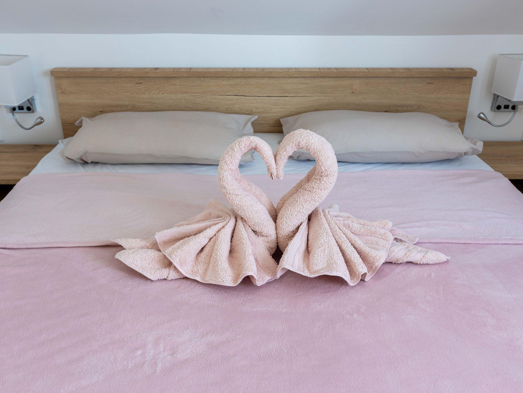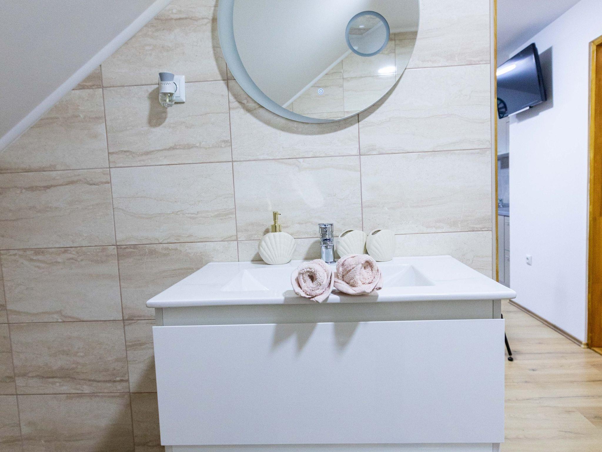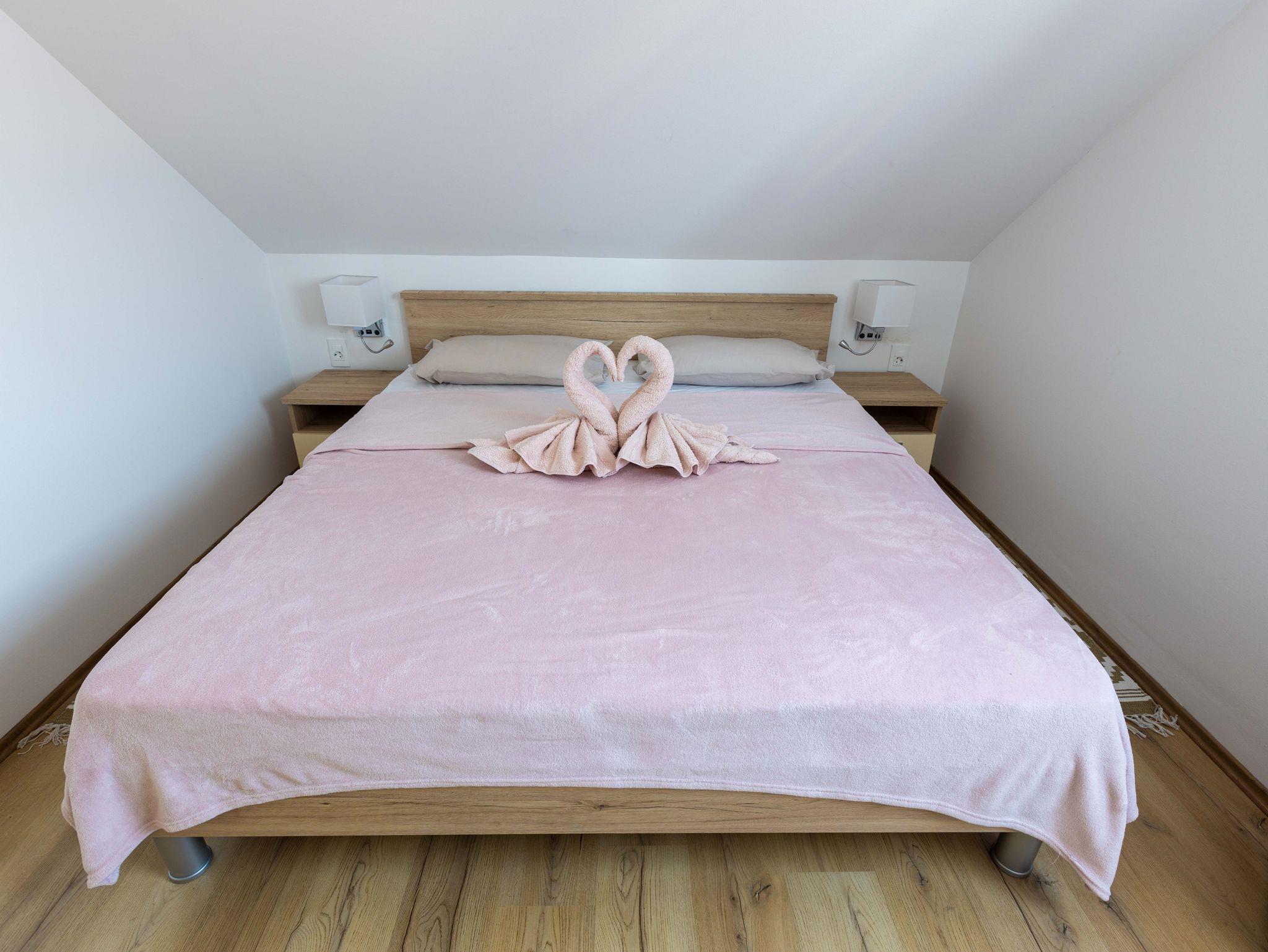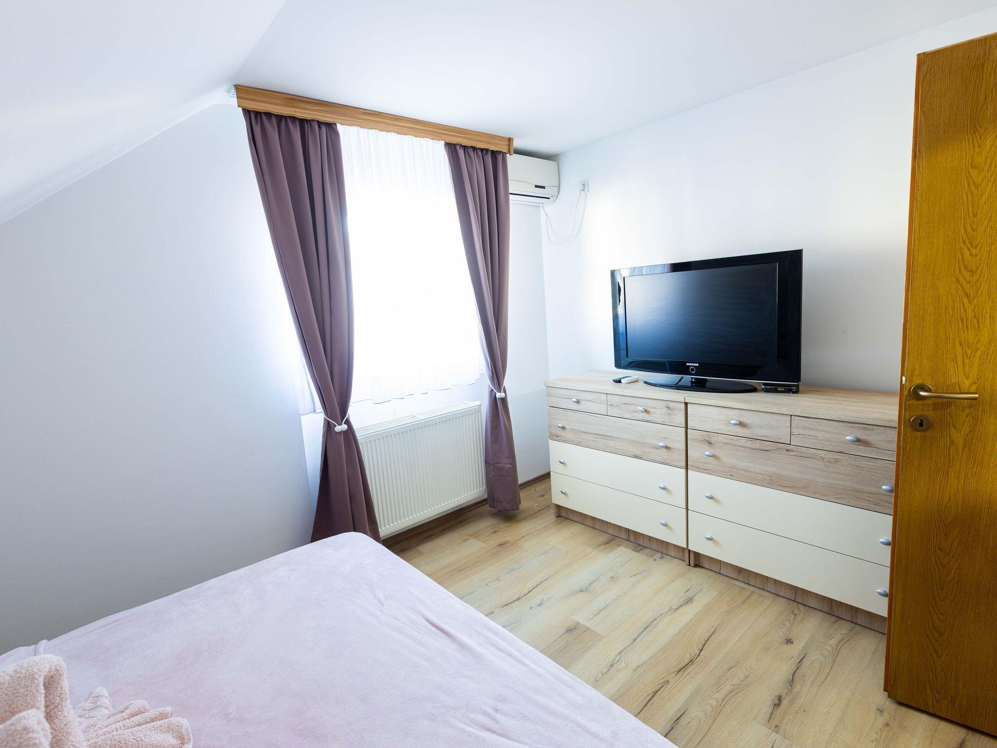 Ferienwohnung bietet Platz für 4 Gäste. Die Betten sind in Schlafzimmern, die es 1 gibt, und in Wohnzimmer, innerhalb einer Gesamtfläche von 51m2, angeordnet. Die Gäste haben eine eigene Terrasse zur Verfügung, auf der sie in warmen Sommernächten genießen können. Für vollen Genuss und Entspannung gibt es einen privaten Grill für Gäste dieser Unterkunft. IM PREIS INBEGRIFFEN: Kurtaxe, Endreinigung, Klimatisierung, Zentralheizung, Parkplatz, Internet, Bügeleisen, Föhn. VERBINDLICHE ZUSÄTZLICHE KOSTEN: Aufzahlung für Kurzaufenthalte (prozentualer Zuschlag pro Nächtigungsanzahl: 30% - 1, 20% - 2, 10% - 3). UNVERBINDLICHE ZUSÄTZLICHE KOSTEN: Frühstück (5,00 €, 50% Nachlass für Kinder zwischen 4 und 12 Jahren, Kinder bis 4 Jahre sind frei.), Zusatzbett (15,00 € pro Nacht). Die Verfügbarkeit zusätzlicher Dienstleistungen in Ihrem reservierten Termin und die Preise derselben (falls nicht aufgeführt) müssen im Voraus überprüft werden. Zusätzliche Dienstleistungen die in der Zahlungsaufforderung nicht aufgeführt sind werden direkt beim Vermieter bezahlt, angenommen der Gast nutzt auch diese.