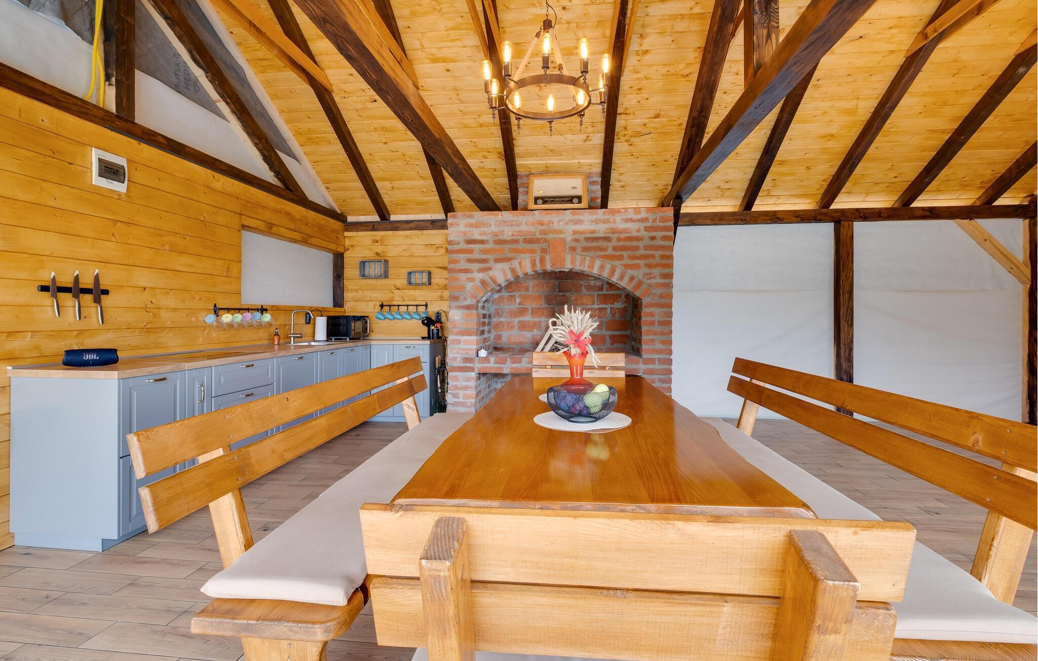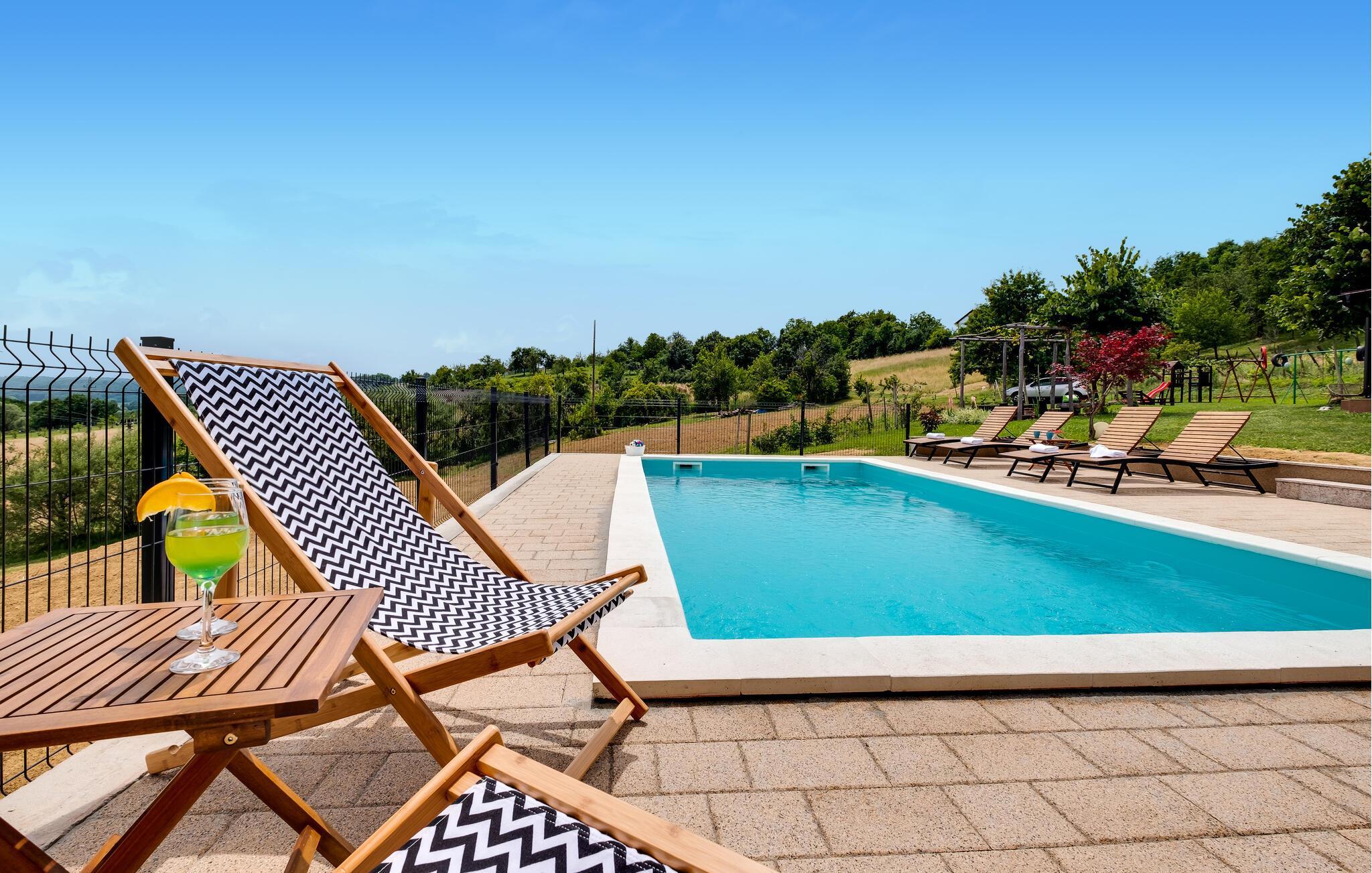I kan også nyde den store have, som ikke kun giver jer en fantastisk udsigt over landskabet, men også har mange underholdnings- og børnefaciliteter, ud over en privat pool. Ved siden af poolen er der et rum med et sommerkøkken og en spisestue, hvor I kan tilberede og indtage grillmåltider.