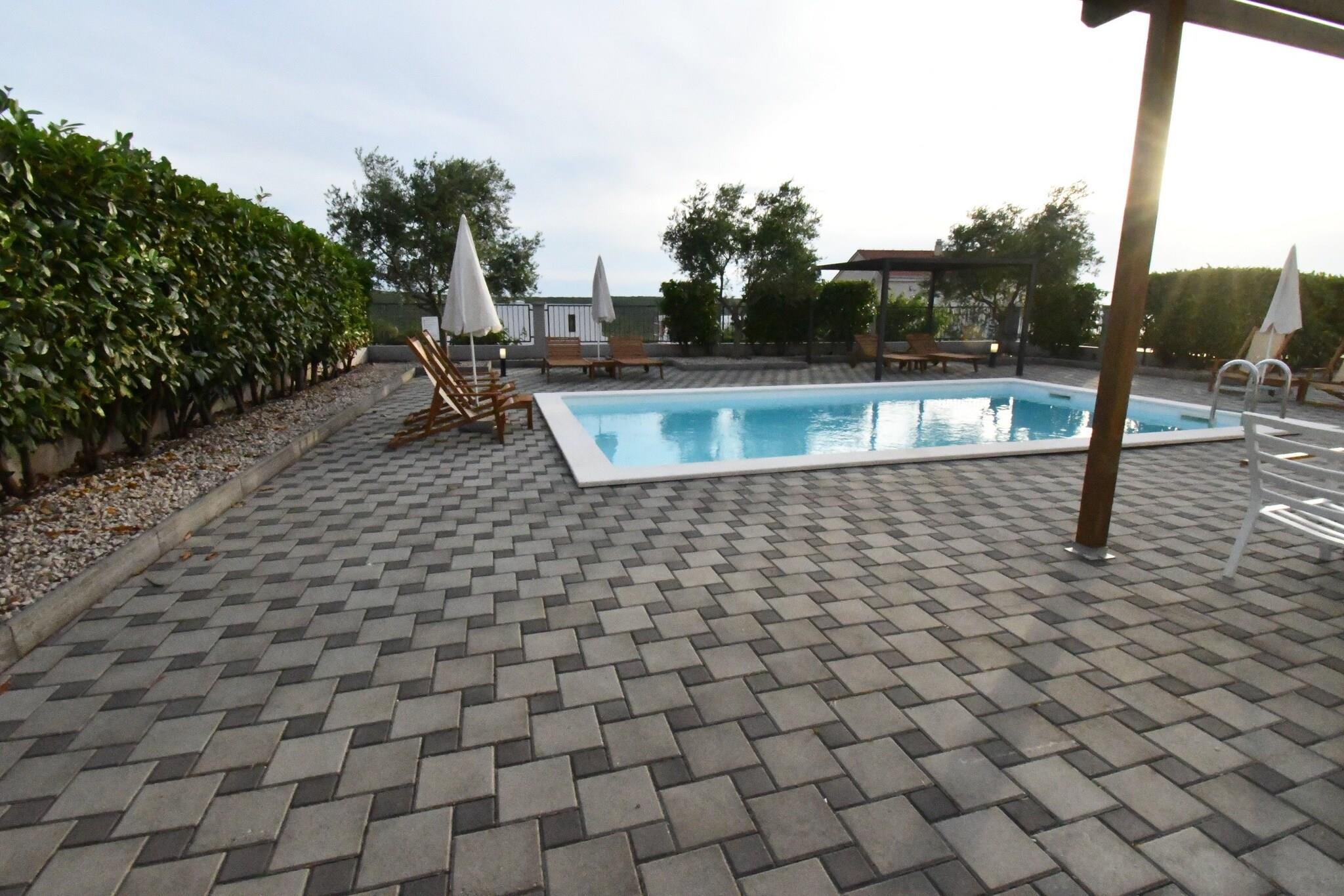 Luxury Escape with Swimming Pool & Modern Design is a high-end villa in Debeljak, near Zadar, Croatia. It features a private swimming pool, contemporary architecture, and stylish interiors. The villa is ideal for families or groups, offers spacious living areas, a fully equipped kitchen, multiple bedrooms with en-suites, and outdoor lounging areas. Situated in a peaceful setting, it provides easy access to Zadar’s historic sites and Adriatic beaches, combining relaxation and modern comfort. Note: Private parking is available, and a reservation is not required. A Baby cot is available on request. Wi-Fi is available throughout the property. Pets are not allowed. This four-bedroom can accommodate up to eight guests. It features an SAT/flat-screen TV and is combined with a living room seating area, sofa, and kitchen. The private bathroom is equipped with a shower and toilet. Free toiletries are available on request. Thanks to its excellent location, everything you'll need for your vacation is just a short walk from the property. Grocery stores, cafes, restaurants—everything is within a 5.00 km radius. The beach is 3.00 km away from the property. The airport is 11 km away from the property.