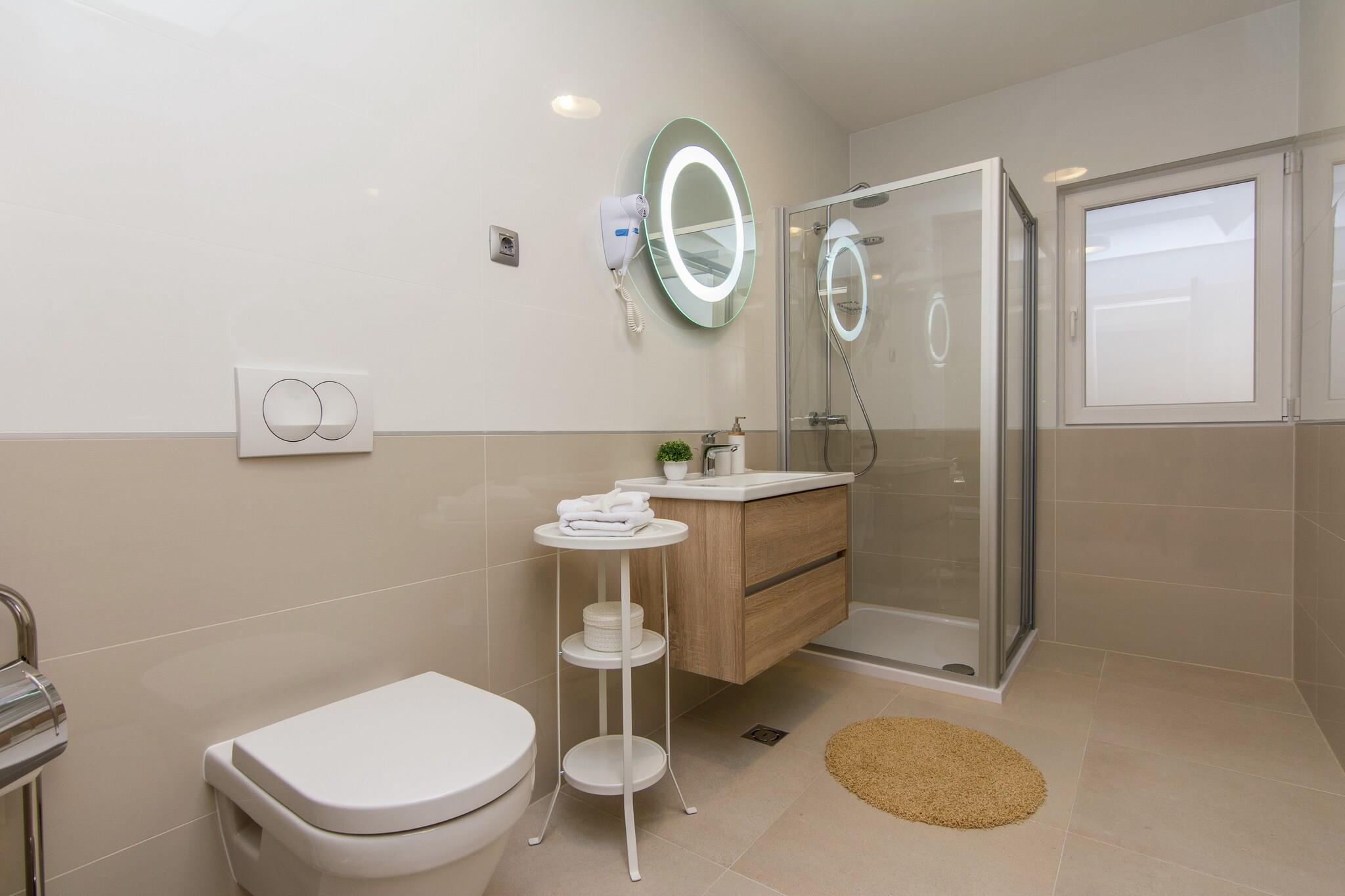 Rummelig komfort og førsteklasses beliggenhed Denne villa til otte gæster tilbyder et luksuriøst tilflugtssted i Debeljak, kun 4 km fra havet og 5 km fra den nærmeste strand. Med gratis WiFi, en privat indhegnet have og en opvarmet swimmingpool kan gæsterne nyde både afslapning og bekvemmelighed. Villaen ligger 4 km fra byens centrum med restauranter og almindelige forsyninger i nærheden, mens Zadar Lufthavn kun ligger 5 km væk, hvilket sikrer nem transportforbindelse. Moderne faciliteter og afslapning Indenfor har villaen en rummelig opholds- og spisestue med pejs og satellit-tv, et fuldt udstyret åbent køkken og fire elegante soveværelser, hver med eget badeværelse, balkon og aircondition. Gæsterne kan slappe af i legerummet med billard, nyde udendørs spisning med grill eller benytte sig af faciliteter som vaskemaskine, strygebræt og cykelopbevaring. Den private terrasse og haven tilbyder en rolig ramme for afslapning. Nærliggende attraktioner og spisesteder Udforsk Punta Rata-stranden, kendt for sit krystalklare vand, eller besøg Havorglet, et arkitektonisk vidunder, der forvandler bølger til musik. Til spisning tilbyder Konoba Anton middelhavsretter, mens Proto Food & More serverer frisk fisk og skaldyr i hyggelige omgivelser. Uanset om du søger eventyr eller ro, er denne villa det perfekte tilflugtssted.