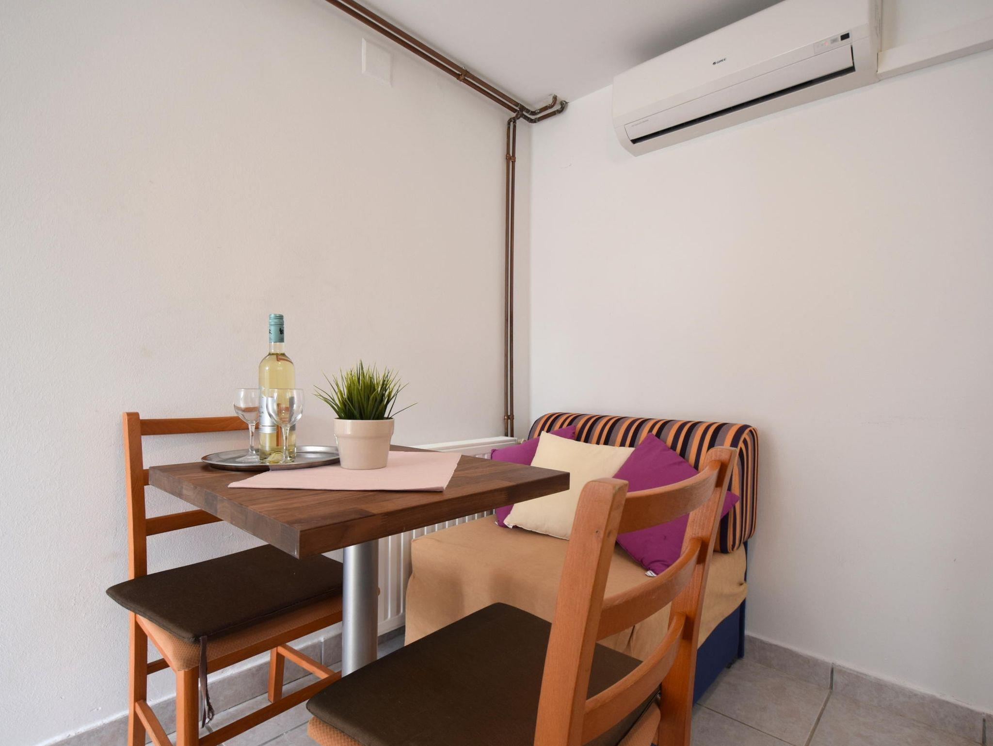 Ferienwohnung bietet Platz für 3 Gäste. Die Betten sind in Schlafzimmern, die es 1 gibt, und in Esszimmer, innerhalb einer Gesamtfläche von 19m2, angeordnet. Die Gäste haben eine eigene Terrasse zur Verfügung, auf der sie in warmen Sommernächten genießen können. Es ist erlaubt, Speisen auf dem Gemeinschafts-Grill vorzubereiten. In der Unterkunftseinheit besteht die Möglichkeit des Mitbringens von Haustieren gegen Aufpreis. IM PREIS INBEGRIFFEN: Kurtaxe, Endreinigung, Klimatisierung, Parkplatz, Internet, tragbarer Grill. VERBINDLICHE ZUSÄTZLICHE KOSTEN: Aufzahlung für Kurzaufenthalte (prozentualer Zuschlag pro Nächtigungsanzahl: 30% - 1, 20% - 2, 10% - 3). UNVERBINDLICHE ZUSÄTZLICHE KOSTEN: Haustiere (10,00 € pro Nacht). Die Verfügbarkeit zusätzlicher Dienstleistungen in Ihrem reservierten Termin und die Preise derselben (falls nicht aufgeführt) müssen im Voraus überprüft werden. Zusätzliche Dienstleistungen die in der Zahlungsaufforderung nicht aufgeführt sind werden direkt beim Vermieter bezahlt, angenommen der Gast nutzt auch diese.