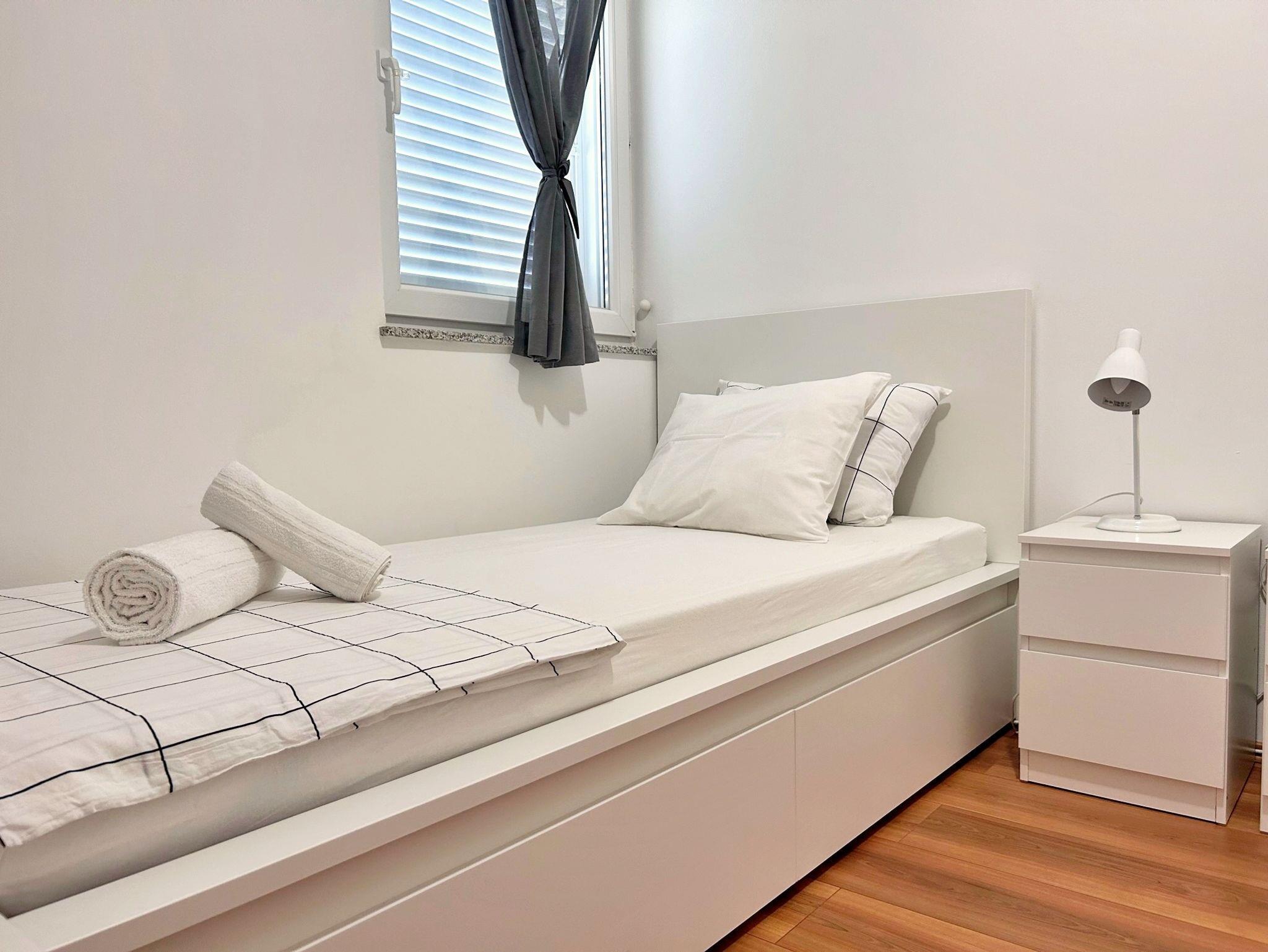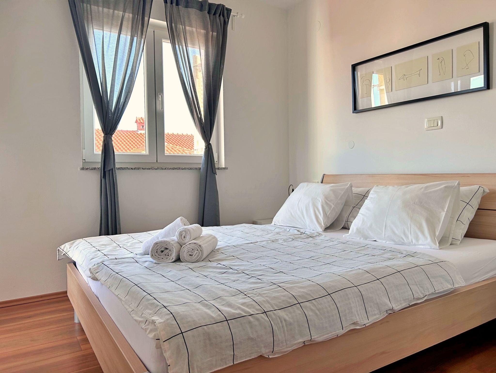 Ferienwohnung bietet Platz für 6 Gäste. Die Betten sind in Schlafzimmern, die es 2 gibt, und in Wohnzimmer, innerhalb einer Gesamtfläche von 50m2, angeordnet. Die Gäste haben einen eigenen Balkon zur Verfügung, auf der sie in warmen Sommernächten genießen können. Das Apartment bietet Meerblick. Es ist erlaubt, Speisen auf dem Gemeinschafts-Grill vorzubereiten. In der Unterkunftseinheit besteht die Möglichkeit des Mitbringens von Haustieren gegen Aufpreis. IM PREIS INBEGRIFFEN: Kurtaxe, Endreinigung, Klimatisierung, Parkplatz, Internet, Föhn. UNVERBINDLICHE ZUSÄTZLICHE KOSTEN: Haustiere (10,00 € pro Nacht). Die Verfügbarkeit zusätzlicher Dienstleistungen in Ihrem reservierten Termin und die Preise derselben (falls nicht aufgeführt) müssen im Voraus überprüft werden. Zusätzliche Dienstleistungen die in der Zahlungsaufforderung nicht aufgeführt sind werden direkt beim Vermieter bezahlt, angenommen der Gast nutzt auch diese.