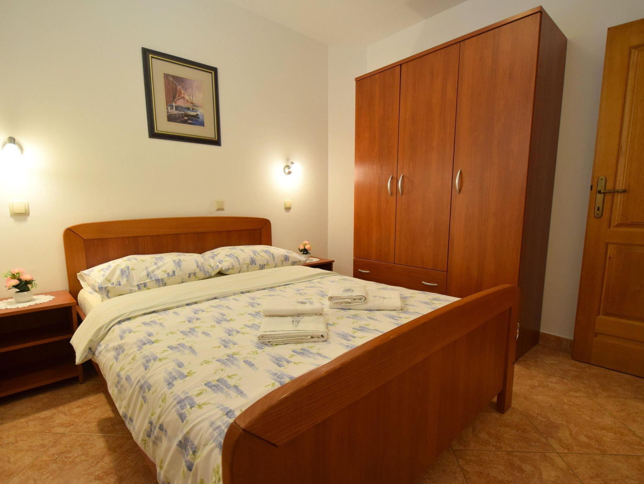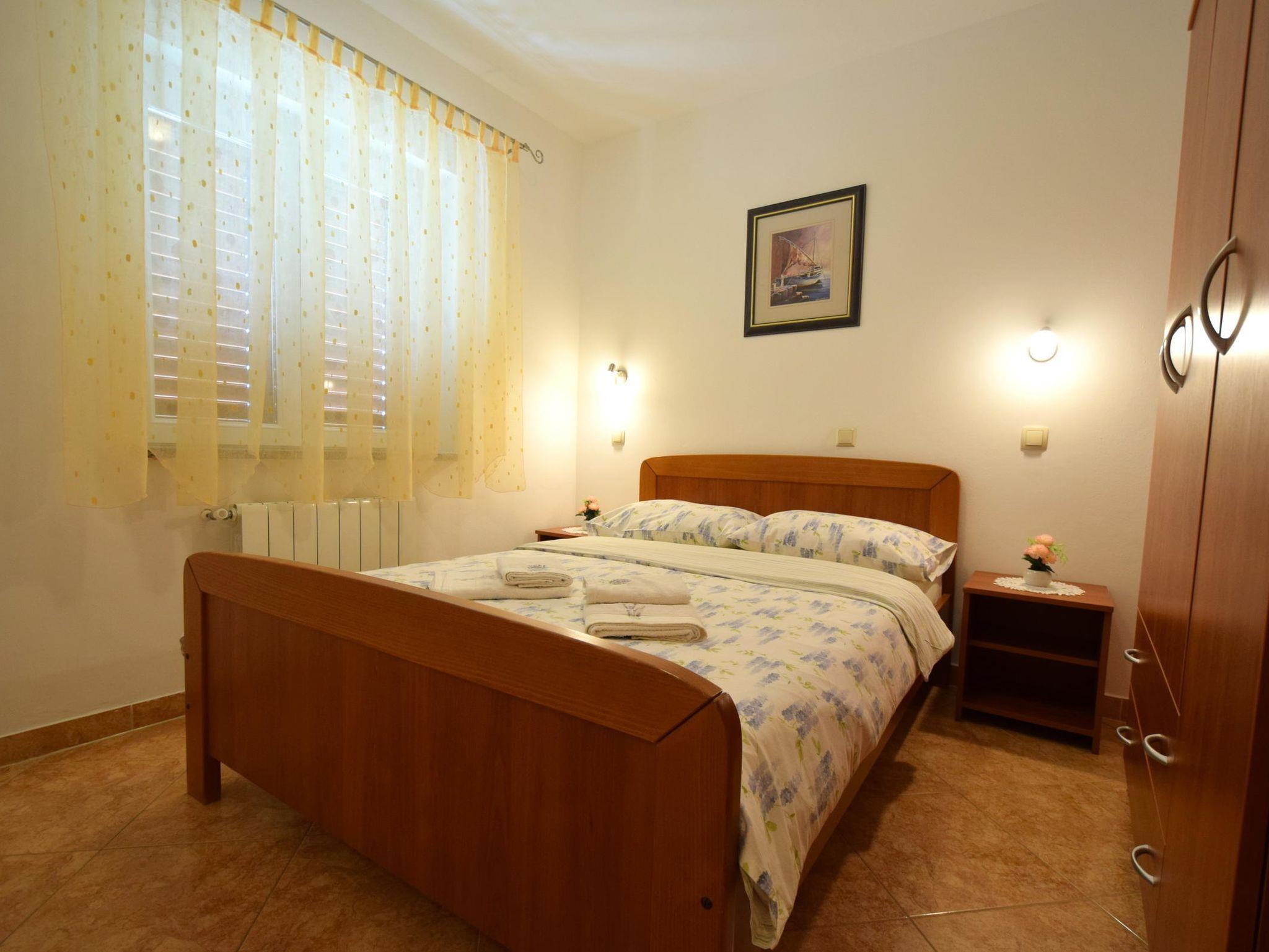 Ferienwohnung bietet Platz für 4 Gäste. Die Betten sind in Schlafzimmern, die es 2 gibt, innerhalb einer Gesamtfläche von 55m2, angeordnet. Die Gäste haben eine eigene Terrasse zur Verfügung, auf der sie in warmen Sommernächten genießen können. Das Apartment bietet Meerblick. Es ist erlaubt, Speisen auf dem Gemeinschafts-Grill vorzubereiten. In der Unterkunftseinheit besteht die Möglichkeit des Mitbringens von Haustieren gegen Aufpreis. IM PREIS INBEGRIFFEN: Kurtaxe, Endreinigung, Klimatisierung, Zentralheizung, Parkplatz, Internet, Bügeleisen, tragbarer Grill. VERBINDLICHE ZUSÄTZLICHE KOSTEN: Aufzahlung für Kurzaufenthalte (prozentualer Zuschlag pro Nächtigungsanzahl: 30% - 1, 20% - 2, 10% - 3). UNVERBINDLICHE ZUSÄTZLICHE KOSTEN: Haustiere (10,00 € pro Nacht). Die Verfügbarkeit zusätzlicher Dienstleistungen in Ihrem reservierten Termin und die Preise derselben (falls nicht aufgeführt) müssen im Voraus überprüft werden. Zusätzliche Dienstleistungen die in der Zahlungsaufforderung nicht aufgeführt sind werden direkt beim Vermieter bezahlt, angenommen der Gast nutzt auch diese.