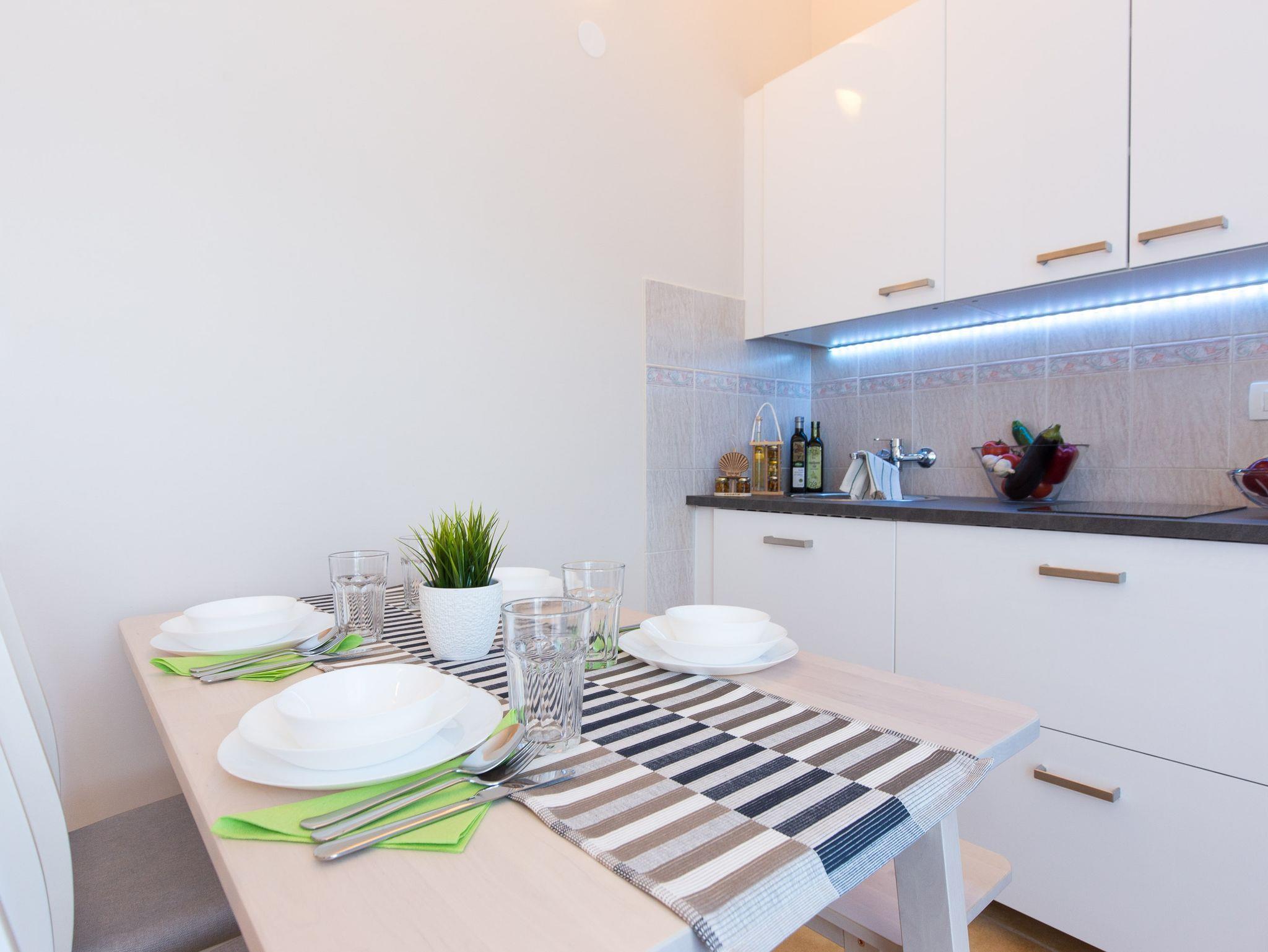 Ferienwohnung bietet Platz für 3 Gäste. Die Betten sind in Schlafzimmern, die es 1 gibt, und in Wohnzimmer, innerhalb einer Gesamtfläche von 31m2, angeordnet. Die Gäste haben einen eigenen Balkon zur Verfügung, auf der sie in warmen Sommernächten genießen können. Das Apartment bietet Meerblick. Es ist erlaubt, Speisen auf dem Gemeinschafts-Grill vorzubereiten. In der Unterkunftseinheit besteht die Möglichkeit des Mitbringens von Haustieren gegen Aufpreis. IM PREIS INBEGRIFFEN: Kurtaxe, Endreinigung, Klimatisierung, Parkplatz, Internet. VERBINDLICHE ZUSÄTZLICHE KOSTEN: Aufzahlung für Kurzaufenthalte (prozentualer Zuschlag pro Nächtigungsanzahl: 30% - 1, 20% - 2, 10% - 3). UNVERBINDLICHE ZUSÄTZLICHE KOSTEN: Haustiere (5,00 € pro Nacht). Die Verfügbarkeit zusätzlicher Dienstleistungen in Ihrem reservierten Termin und die Preise derselben (falls nicht aufgeführt) müssen im Voraus überprüft werden. Zusätzliche Dienstleistungen die in der Zahlungsaufforderung nicht aufgeführt sind werden direkt beim Vermieter bezahlt, angenommen der Gast nutzt auch diese.