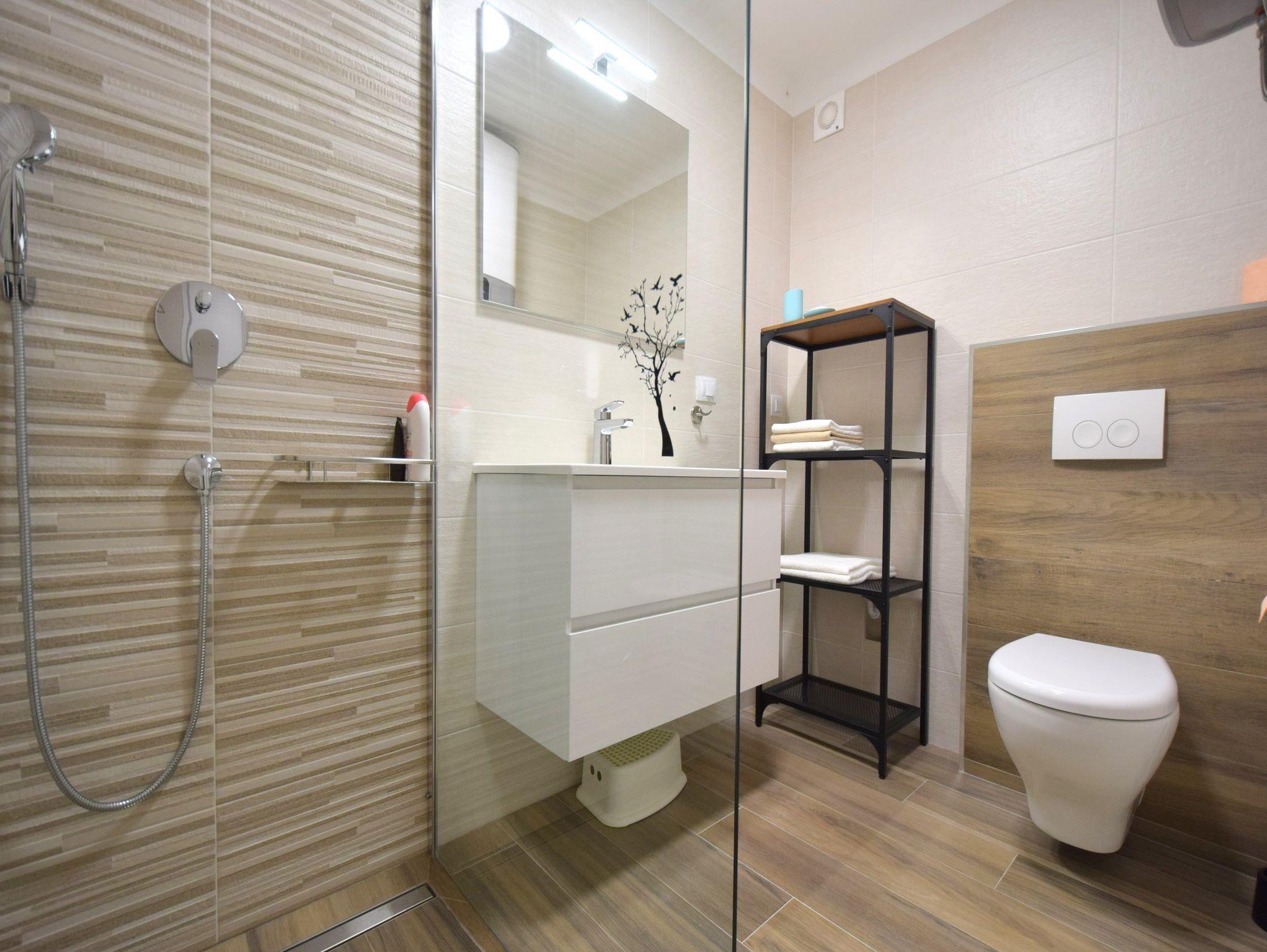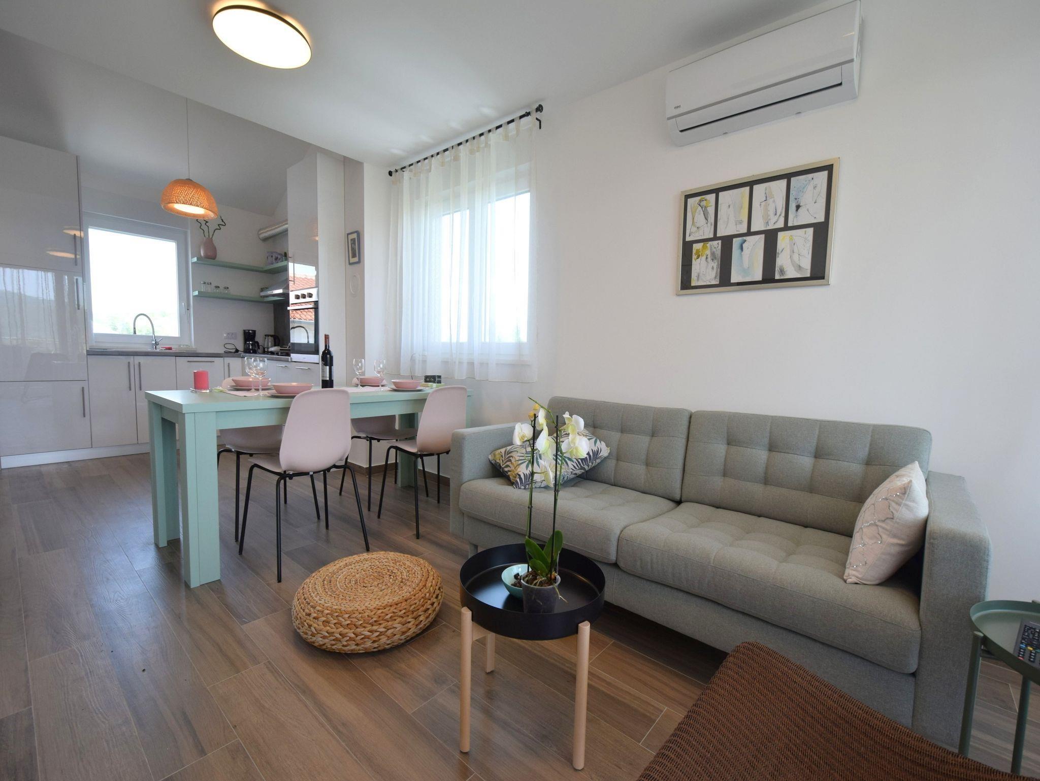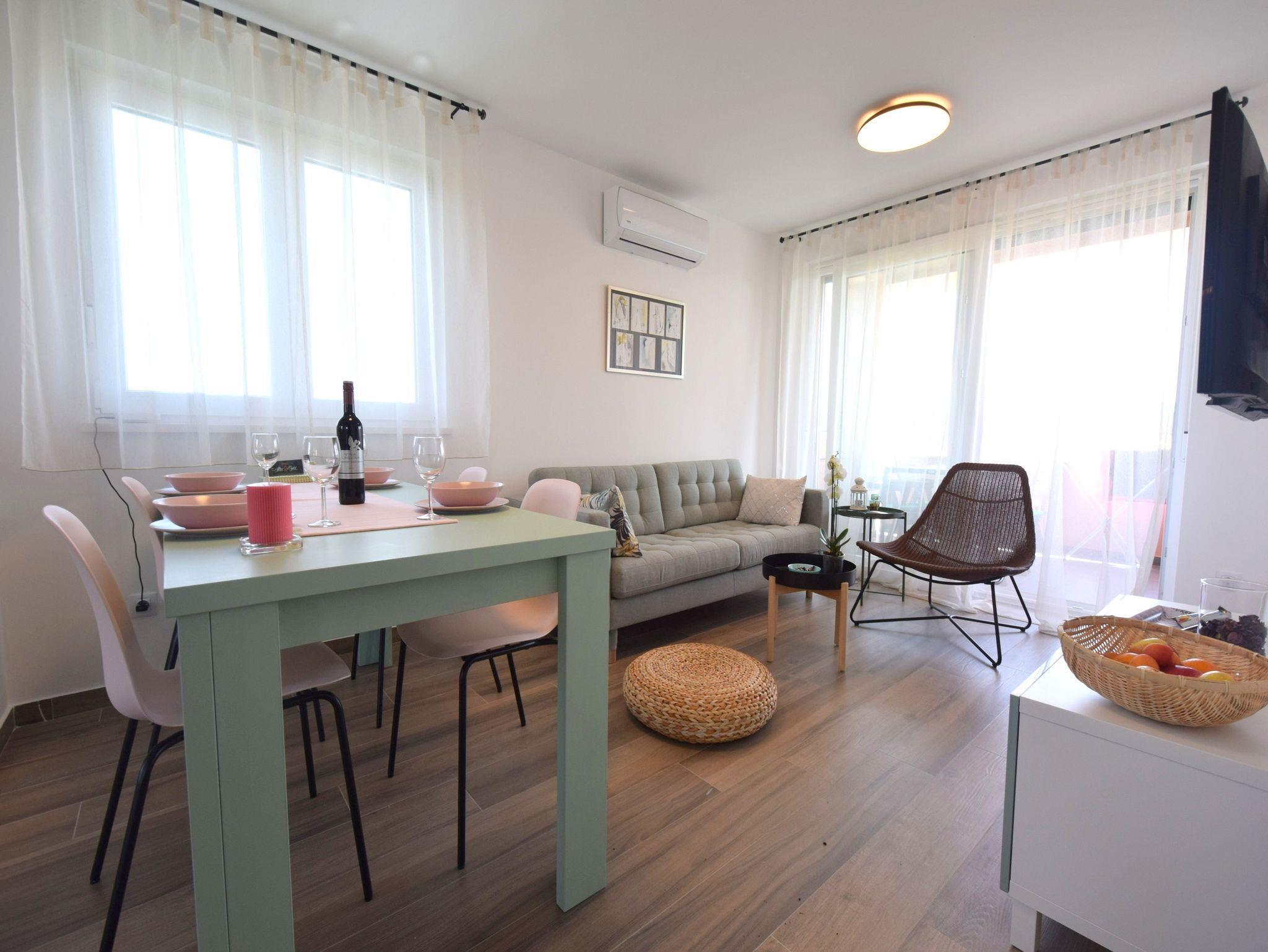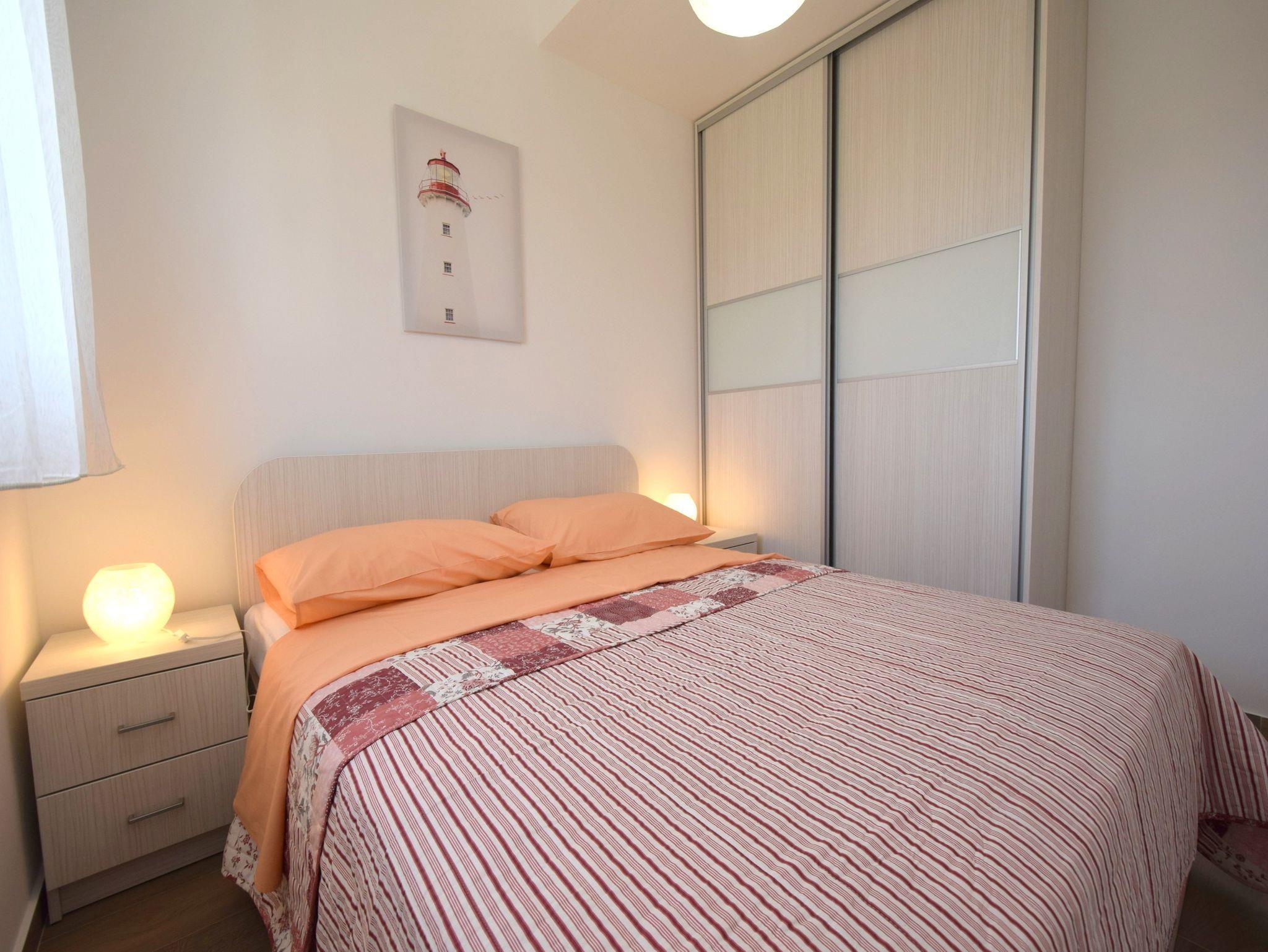 Ferienwohnung bietet Platz für 4 Gäste. Die Betten sind in Schlafzimmern, die es 2 gibt, innerhalb einer Gesamtfläche von 55m2, angeordnet. Die Gäste haben eine eigene Terrasse zur Verfügung, auf der sie in warmen Sommernächten genießen können. Das Apartment bietet Meerblick. Es ist erlaubt, Speisen auf dem Gemeinschafts-Grill vorzubereiten. IM PREIS INBEGRIFFEN: Kurtaxe, Endreinigung, Klimatisierung, Parkplatz, Internet. VERBINDLICHE ZUSÄTZLICHE KOSTEN: Aufzahlung für Kurzaufenthalte (prozentualer Zuschlag pro Nächtigungsanzahl: 30% - 1, 20% - 2, 10% - 3). Die Verfügbarkeit zusätzlicher Dienstleistungen in Ihrem reservierten Termin und die Preise derselben (falls nicht aufgeführt) müssen im Voraus überprüft werden. Zusätzliche Dienstleistungen die in der Zahlungsaufforderung nicht aufgeführt sind werden direkt beim Vermieter bezahlt, angenommen der Gast nutzt auch diese.