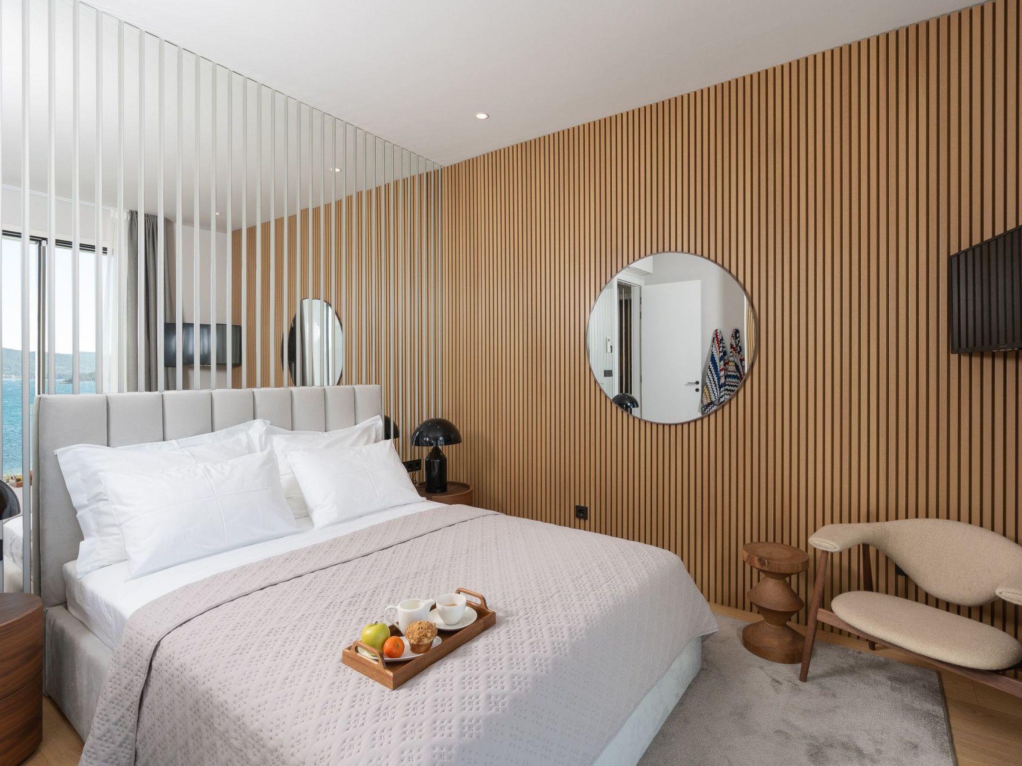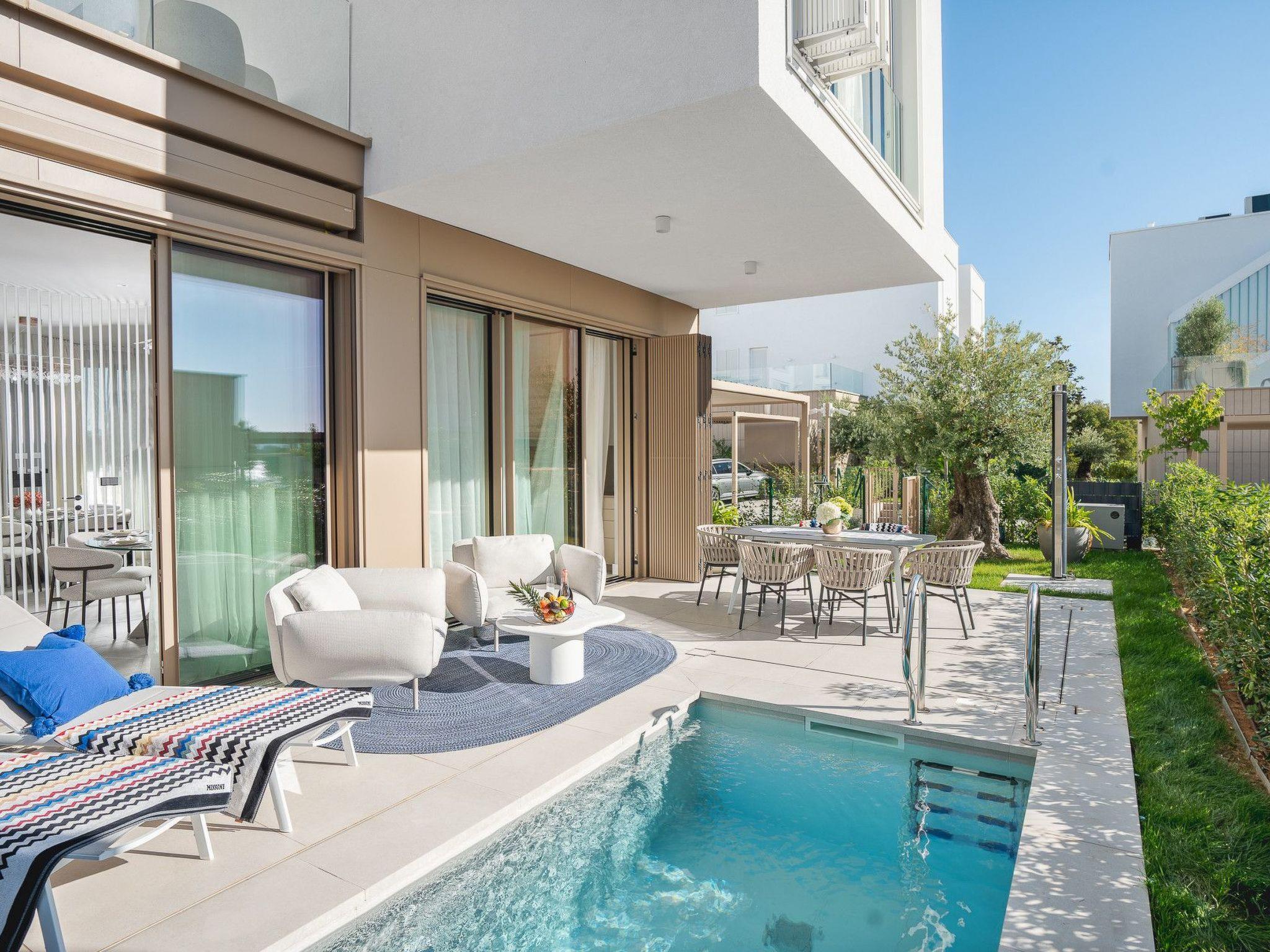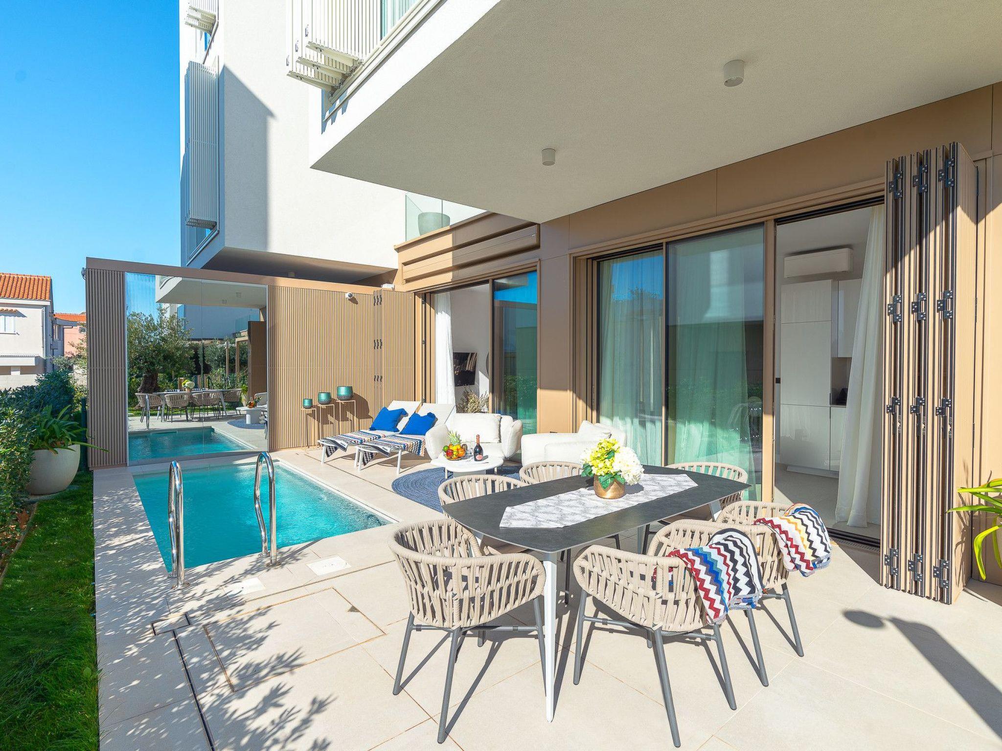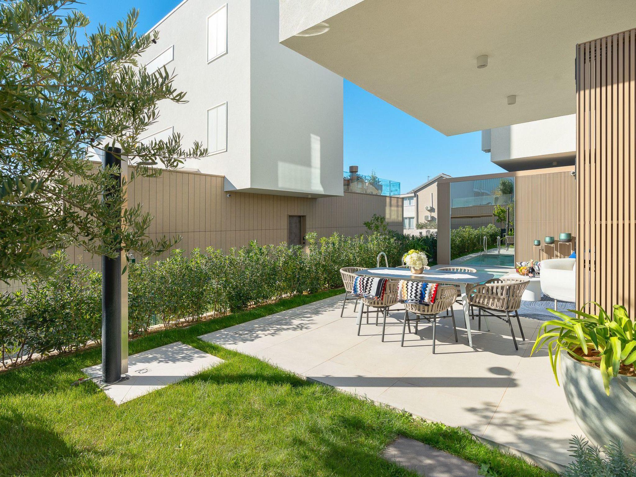 The modern villa Valea stands out with its unique interior designed by award-winning Croatian architect Ante Vrban. It is located within a fully fenced, beautiful residential complex, just a few steps from the beach.