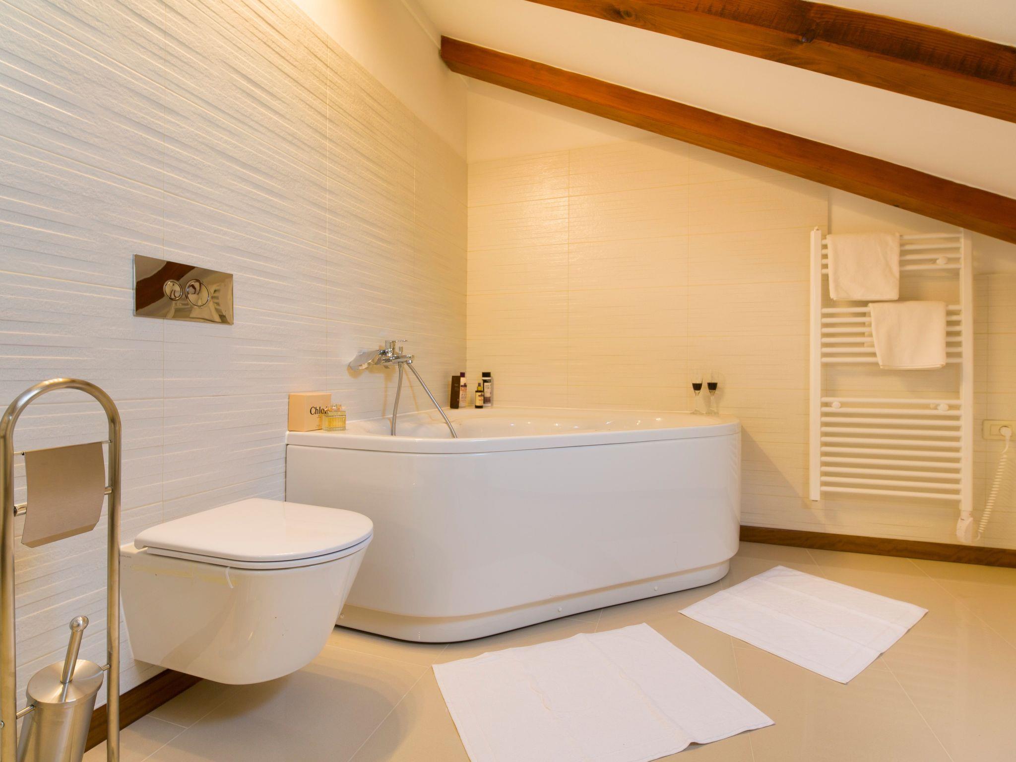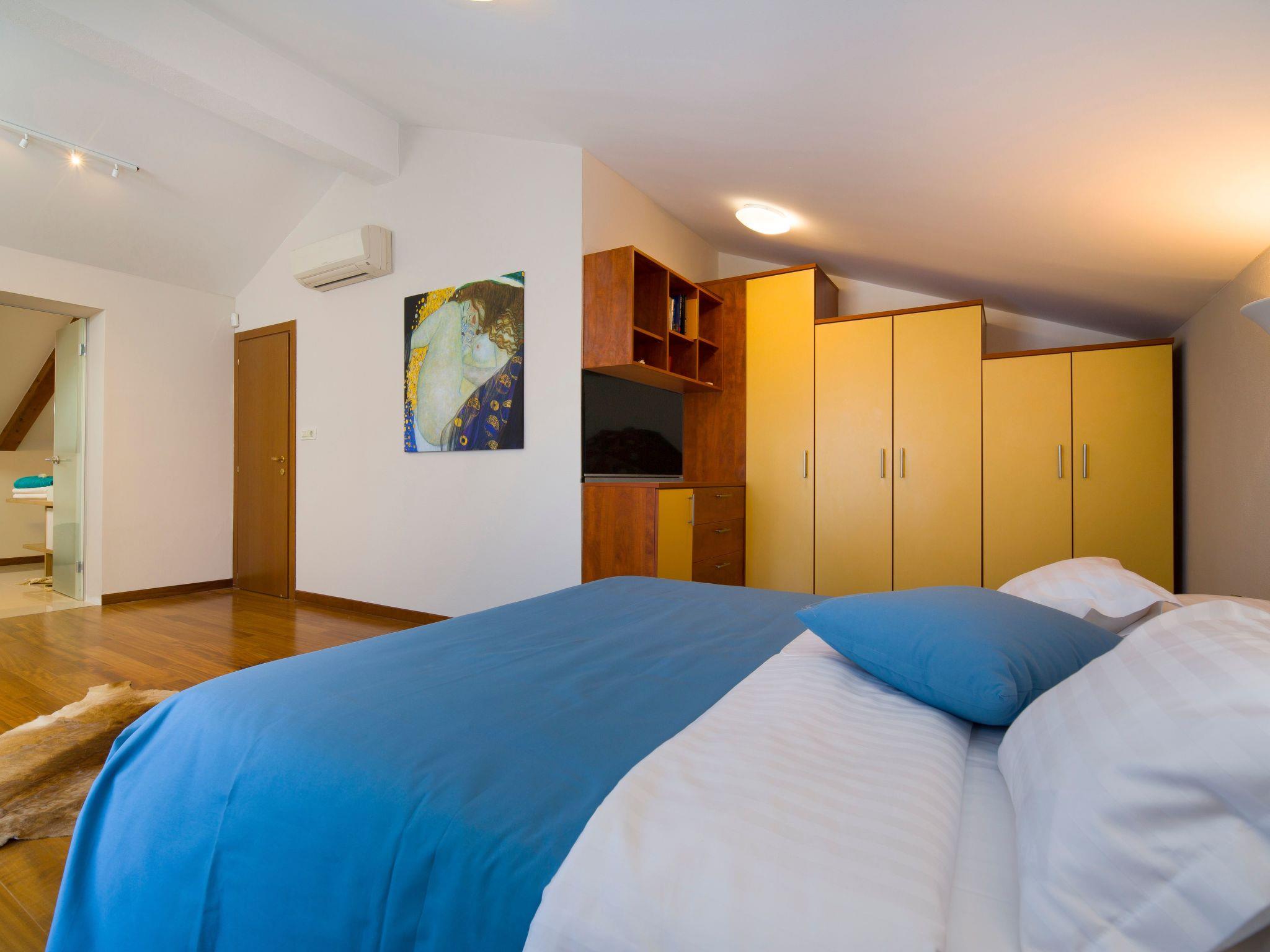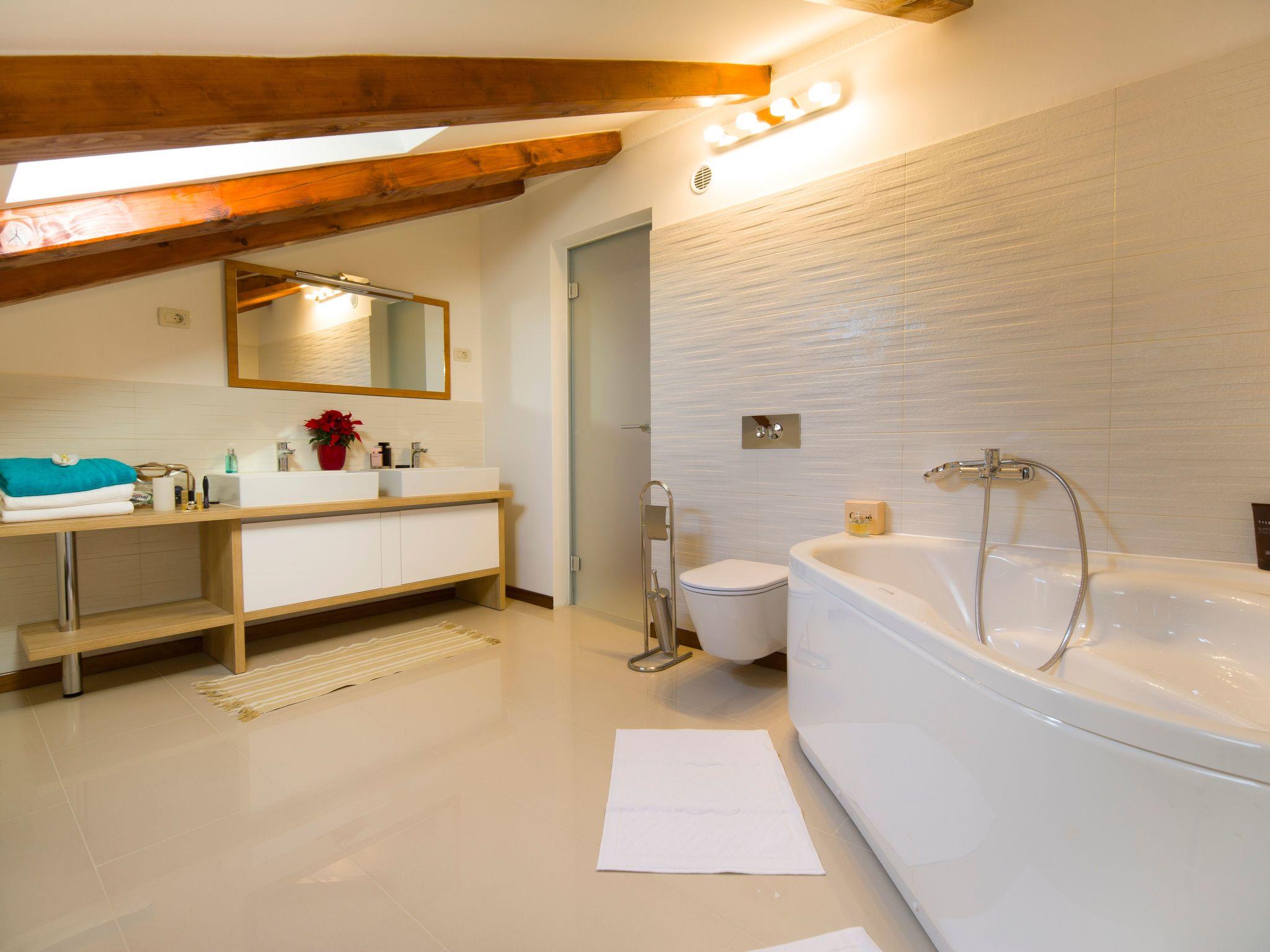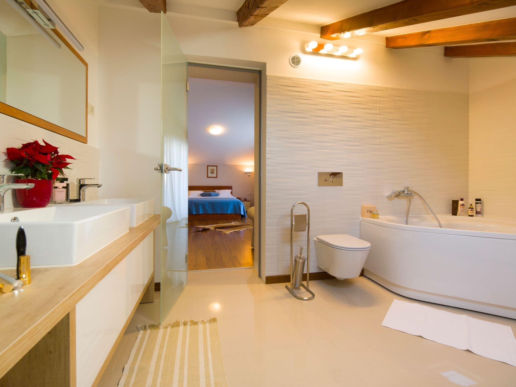 Layout: Ground floor 200m2: Fully equipped kitchen 19,4m2 (electric kettle, toaster, cooker (4 ring stoves, induction), coffee machine, oven, microwave, dishwasher, fridge-freezer, icemaker), - Dining room 20,4m2, dining table, heating, air conditioning - Living room 58,14m2 (2x single sofa with chairs, TV (flatscreen), dining table, fireplace, air conditioning, heating), - With open gallery above, the perfect place for chilling, reading the book or listening some music. - Hallway which takes you to wardrobe, one of 2 bedrooms (17m2 and 27m2) or bathroom 10m2 and takes you on the upper floor/gallery 33m2 Attic is 175m2: - Gallery 33m2 - 1. bedroom 75m2 with bathroom 11m2 - 2. bedroom 44m2 with bathroom 12m2 Terrace: (private, roofed, fenced, m2), lounge set) Outdoor area features a private swimming pool 6x8- 48m2, a sun deck with loungers, BBQ facilities, and garage.