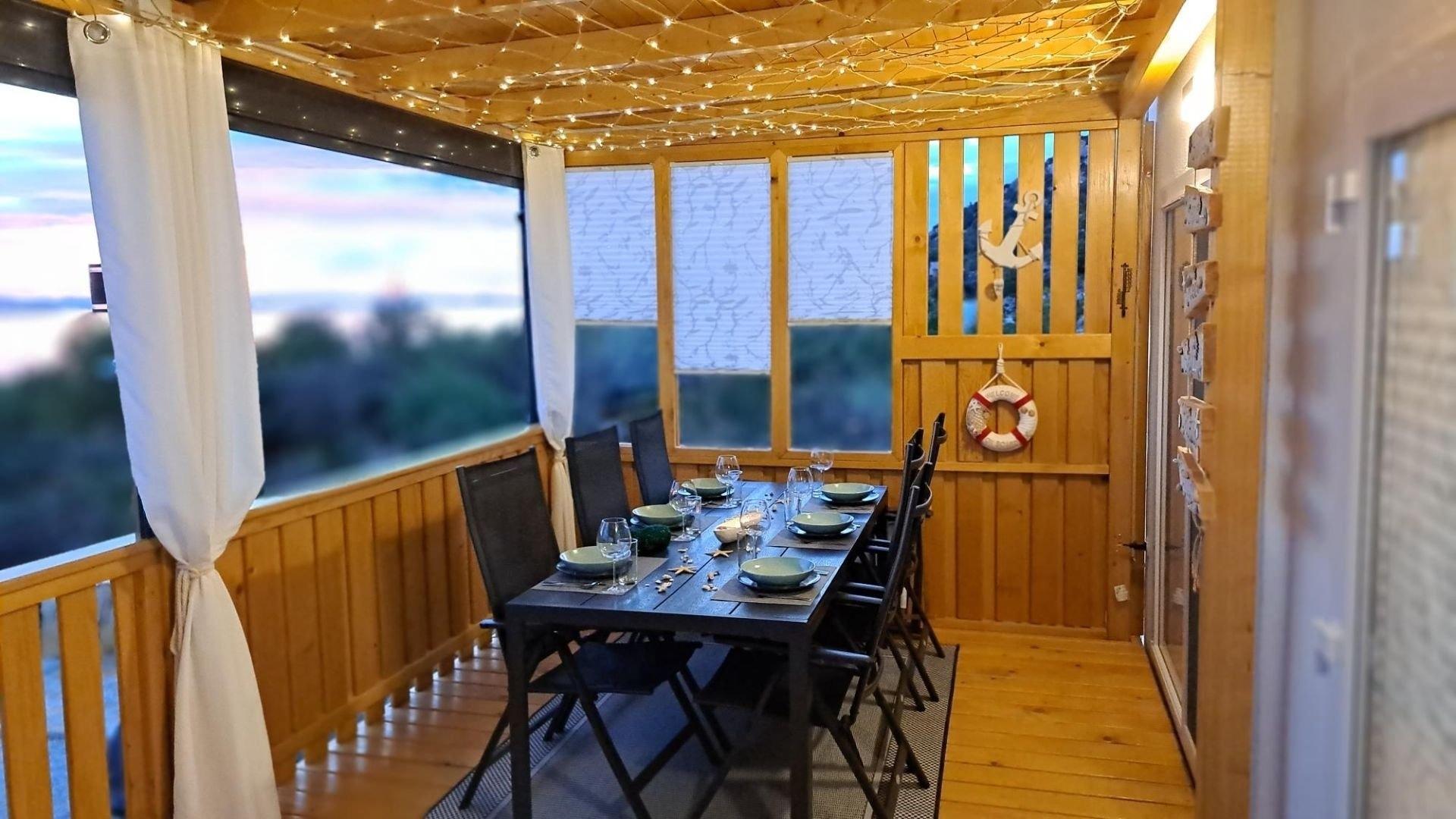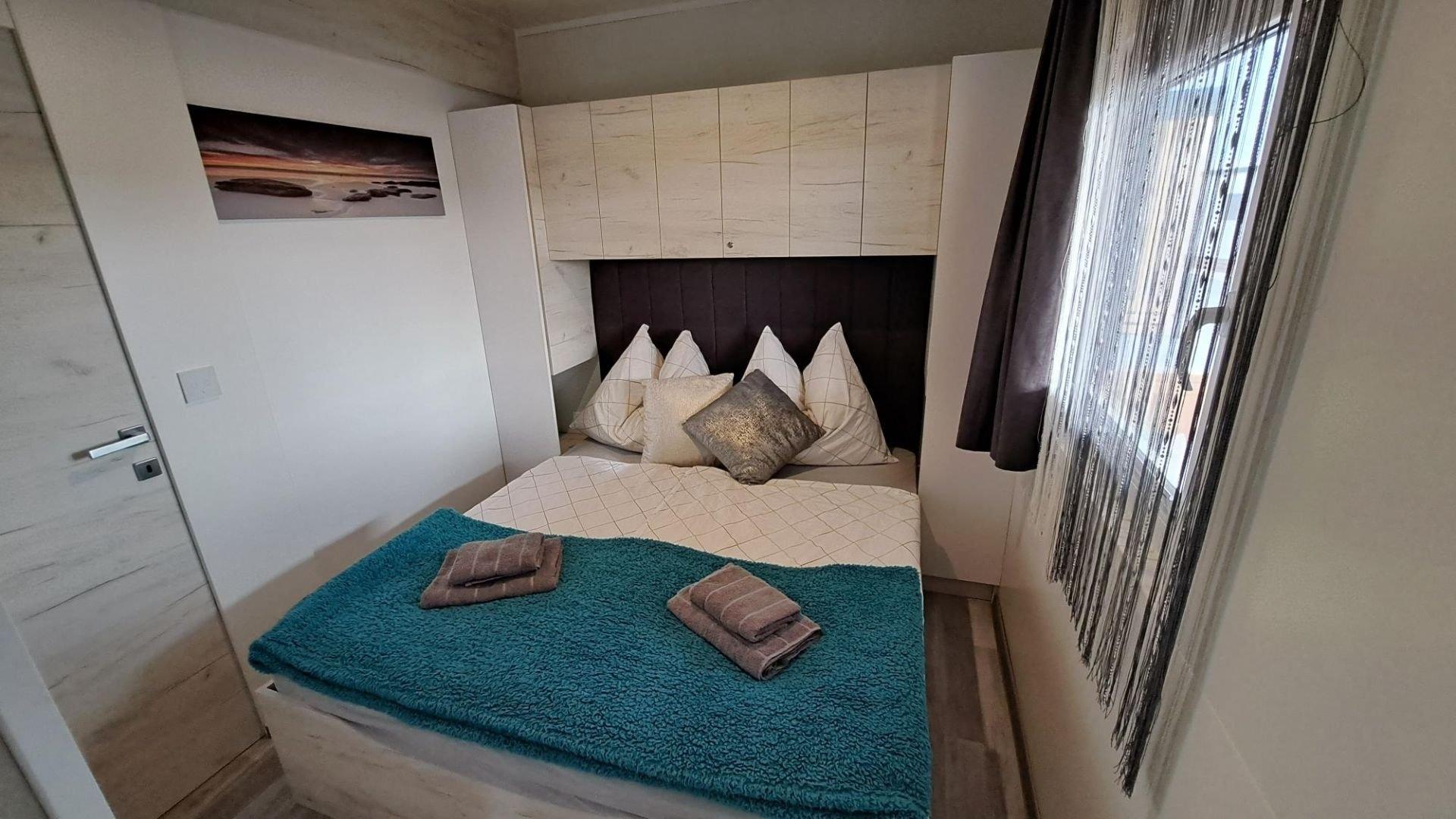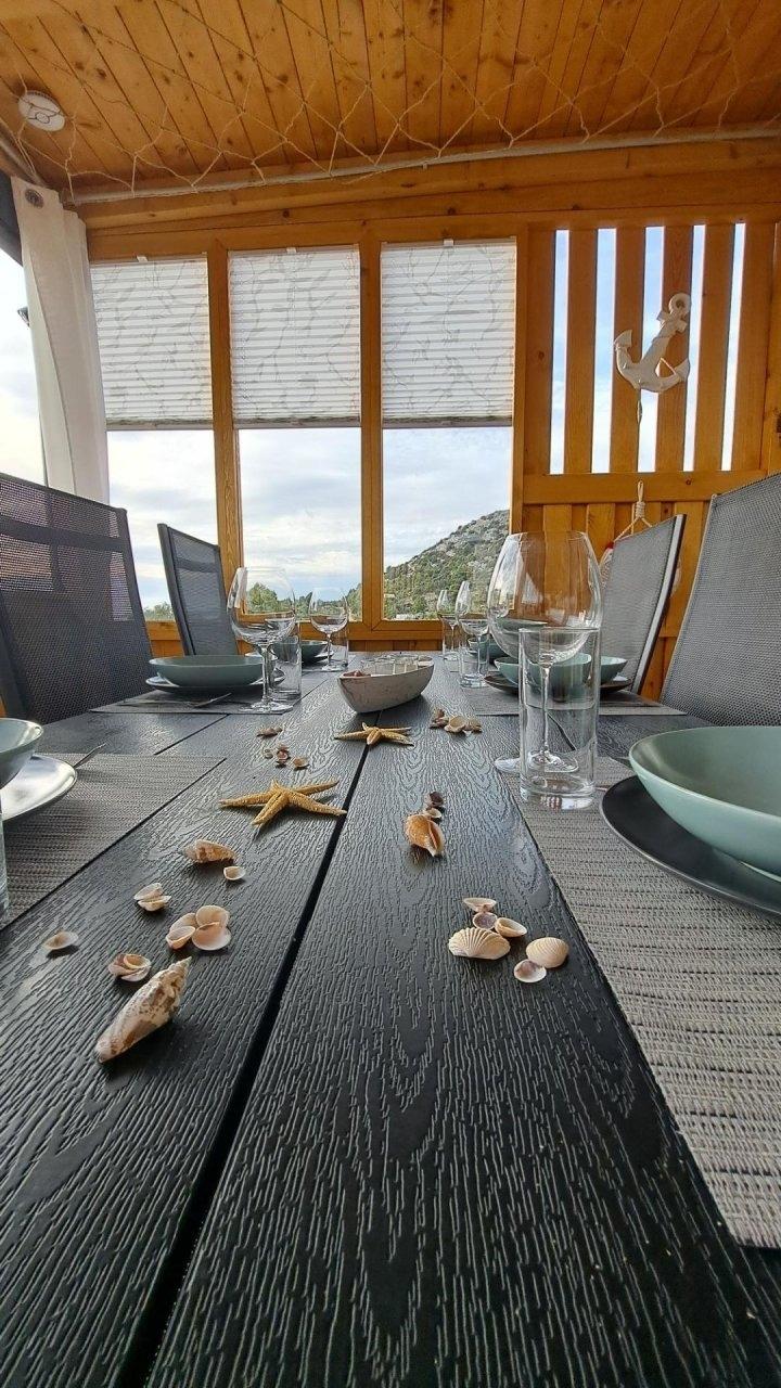 Ein Ferienhaus mit wunderschönem Meerblick finden Sie in nur ca. 8 Autominuten von Biograd entfernt, in der kleinen Ortschaft Drage. Das Mobile Home Tom 12 bietet Ihnen 2 getrennte Schlafzimmer sowie 2 getrennte Badezimmer samt WC. Eine voll ausgestattete Küche steht Ihnen ebenfalls zur Verfügung. Diese beinhaltet E-Herd, Backrohr, Geschirrspüler, Kühlschrank, Gefrierschrank, Kaffeemaschine, Mikrowelle, Toaster, Eierkocher usw. Das gesamte Haus ist klimatisiert. In den Badezimmern ist jeweils eine Regendusche vorhanden und auch ein Haarfön. Im Master-Schlafzimmer haben sie, so wie im Wohnraum auch, einen Flachbildfernseher zur Verfügung. Die Terrasse bietet mit ihrer überdachten 28qm großen Fläche genügend Platz zum Entspannen und um den traumhaften Blick auf das Meer zu genießen. Für die Beschattung auf der Terrasse haben Sie elektrische Rollos, welche tagsüber Schatten spenden. Weiters steht Ihnen ein kostenloser Parkplatz direkt vor dem Haus zur Verfügung. Eine Solardusche für eine schnelle Abkühlung können Sie ebenfalls verwenden. 3 Fahrräder vor dem Haus können Sie kostenlos verwenden um schnelle Einkäufe zu erledigen. Auf der Terrasse steht ein Gasgrill, der nur darauf wartet Ihnen ein besonders leckeres Essen zu zaubern. Der Strand selbst ist nur ca. 100m vom Haus entfernt und bietet Ihnen Ruhe und Entspannung, da Sie hier von Trubel und Massentourismus weit entfernt sind.