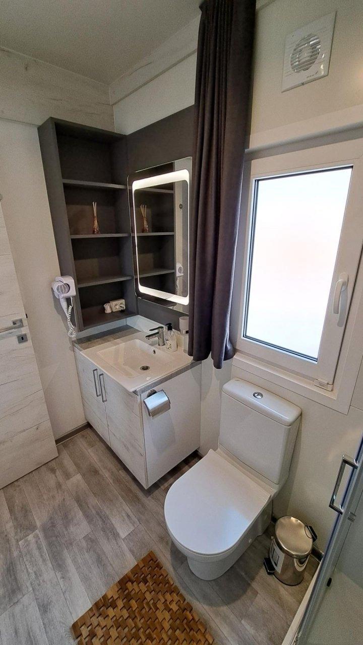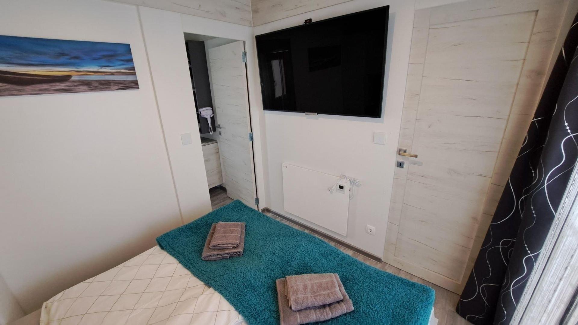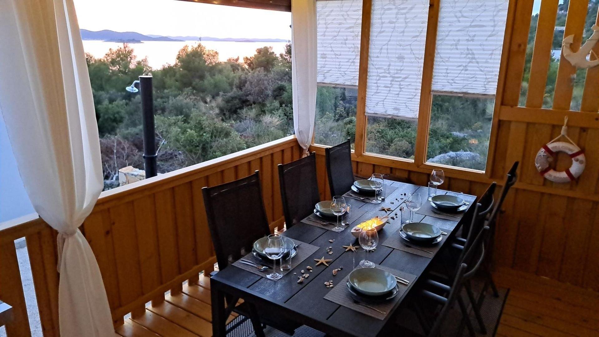 Ein Ferienhaus mit wunderschönem Meerblick finden Sie in nur ca. 8 Autominuten von Biograd entfernt, in der kleinen Ortschaft Drage. Das Mobile Home Tom 12 bietet Ihnen 2 getrennte Schlafzimmer sowie 2 getrennte Badezimmer samt WC. Eine voll ausgestattete Küche steht Ihnen ebenfalls zur Verfügung. Diese beinhaltet E-Herd, Backrohr, Geschirrspüler, Kühlschrank, Gefrierschrank, Kaffeemaschine, Mikrowelle, Toaster, Eierkocher usw. Das gesamte Haus ist klimatisiert. In den Badezimmern ist jeweils eine Regendusche vorhanden und auch ein Haarfön. Im Master-Schlafzimmer haben sie, so wie im Wohnraum auch, einen Flachbildfernseher zur Verfügung. Die Terrasse bietet mit ihrer überdachten 28qm großen Fläche genügend Platz zum Entspannen und um den traumhaften Blick auf das Meer zu genießen. Für die Beschattung auf der Terrasse haben Sie elektrische Rollos, welche tagsüber Schatten spenden. Weiters steht Ihnen ein kostenloser Parkplatz direkt vor dem Haus zur Verfügung. Eine Solardusche für eine schnelle Abkühlung können Sie ebenfalls verwenden. 3 Fahrräder vor dem Haus können Sie kostenlos verwenden um schnelle Einkäufe zu erledigen. Auf der Terrasse steht ein Gasgrill, der nur darauf wartet Ihnen ein besonders leckeres Essen zu zaubern. Der Strand selbst ist nur ca. 100m vom Haus entfernt und bietet Ihnen Ruhe und Entspannung, da Sie hier von Trubel und Massentourismus weit entfernt sind.