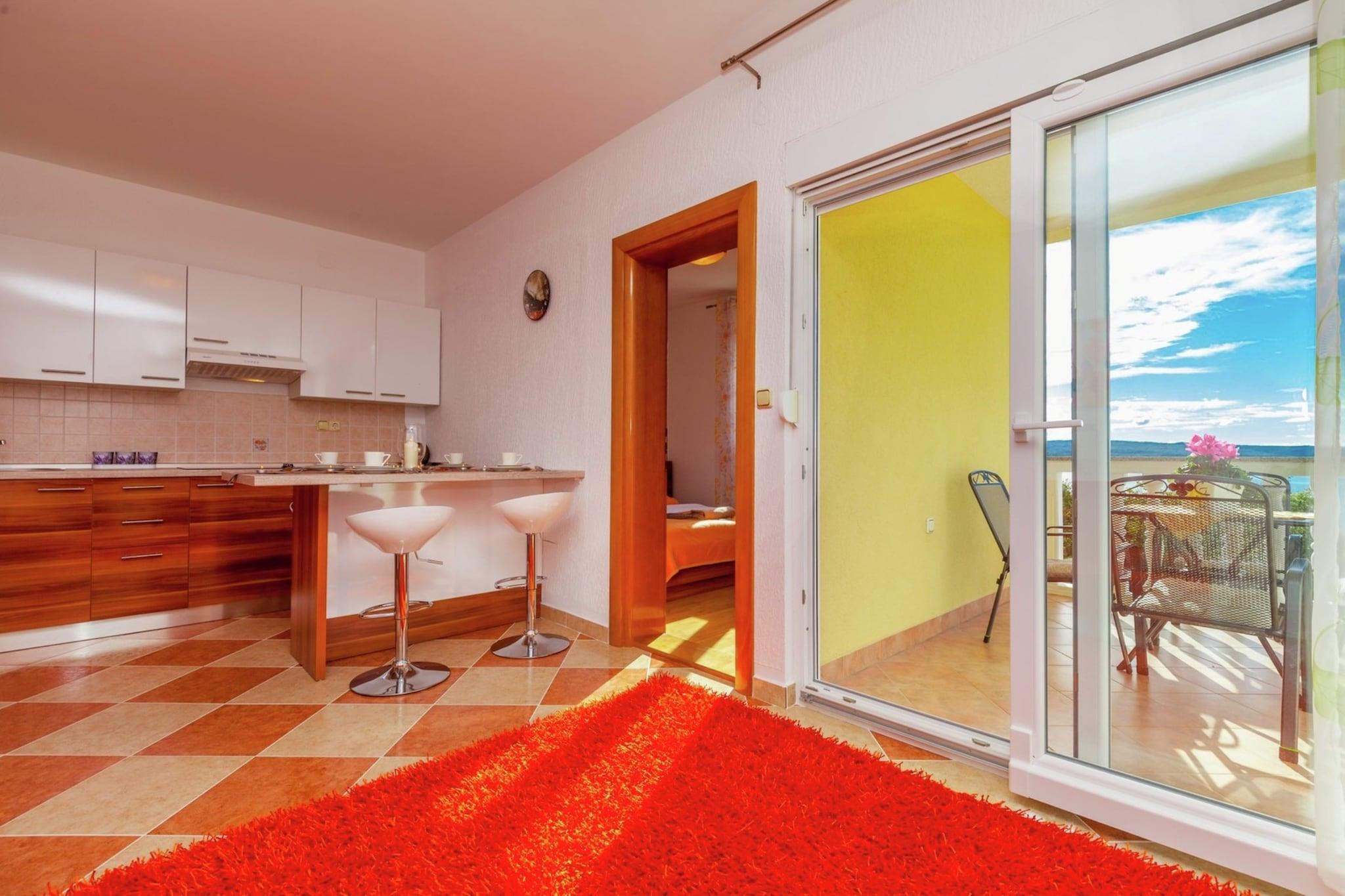 Charmerende villa lejlighed med overdækket terrasse og fantastisk havudsigt er beliggende i stedet Dramalj. Det er en lille turistby forbundet med Crikvenica med lang sti omgivet af middelhavs vegetation kaldet Lungo mare. Indkvartering er beliggende i et roligt område, 1 km fra centrum. På grund af denne placering er det et behageligt ophold for alle, der elsker naturen. Med afstanden på 600 meter kan du finde strande og restauranter. Den mest attraktive strand for familier med børn i regionen hedder Kacjak, og det er kun 0,9 km væk. Dramalj og Crikvenica med deres lange tradition for turisme er perler af Crikvenica Riviera på grund af mildt middelhavsklima, smukke sandstrande, småsten og stenstrande og rige historiske og kulturelle arv. Udover vandsport for dem, der søger en aktiv ferie, er der forskellige aktiviteter: cykling, bjergbestigning, fiskeri, dykning, tennis og golf. Nationalpark Risnjak med sine naturlige skønheder samt Gorski Kotar, regionen med bjerge og søer kan nås inden for en times kørsel.