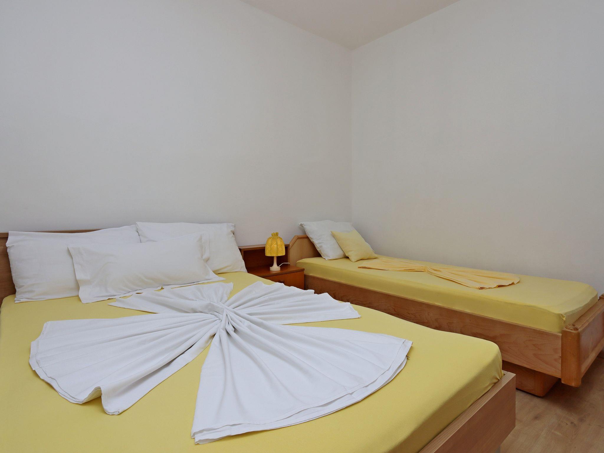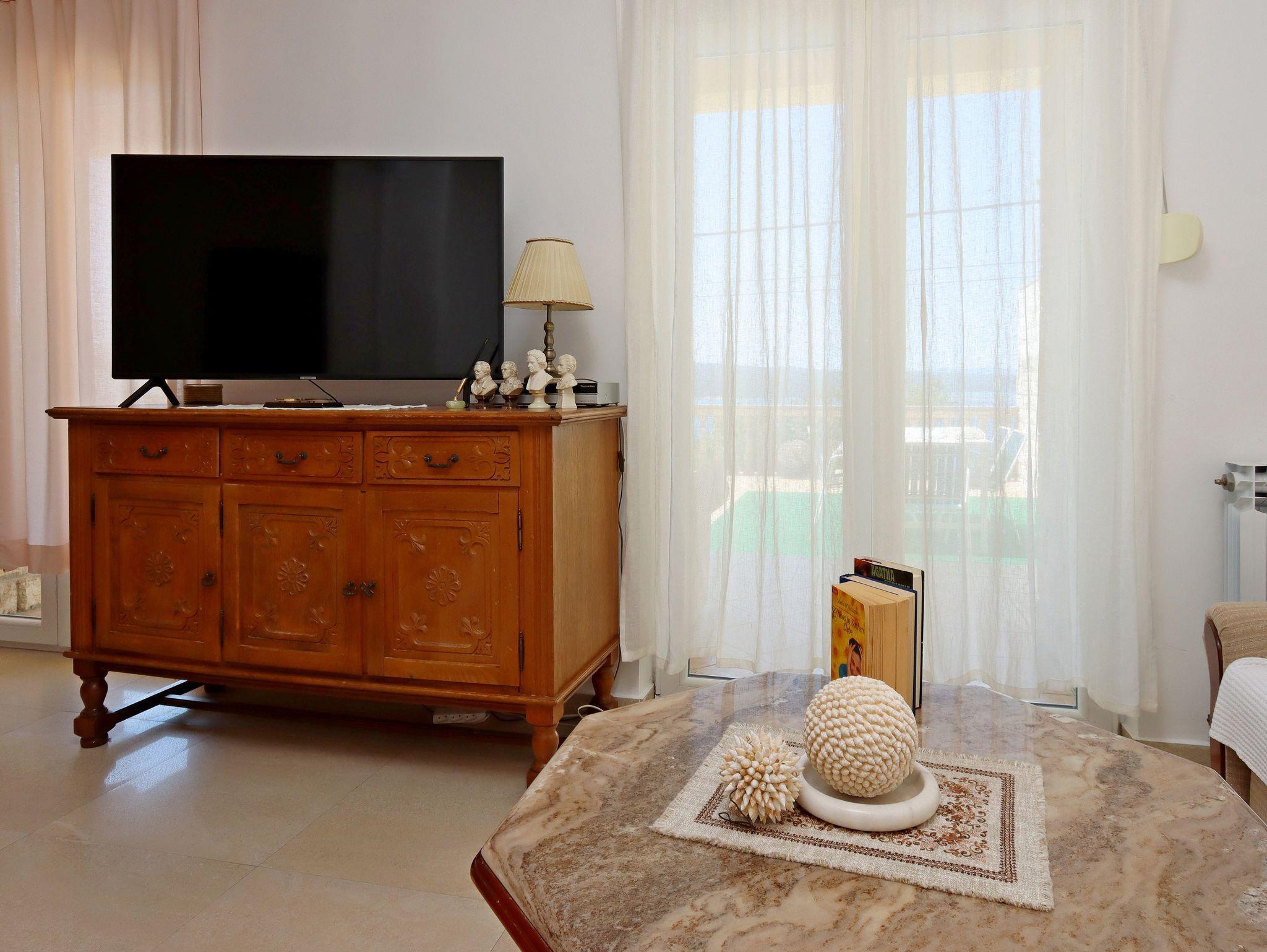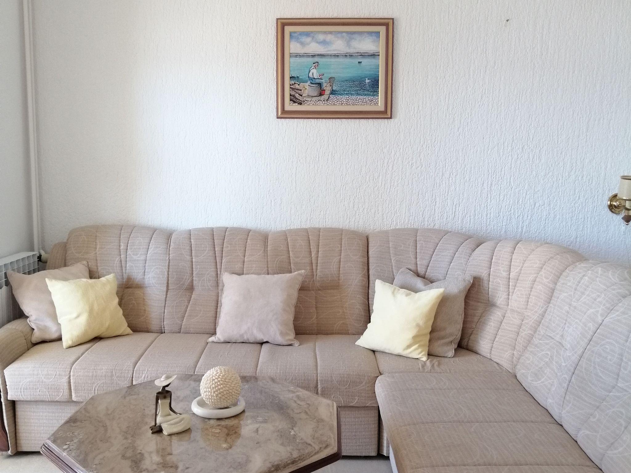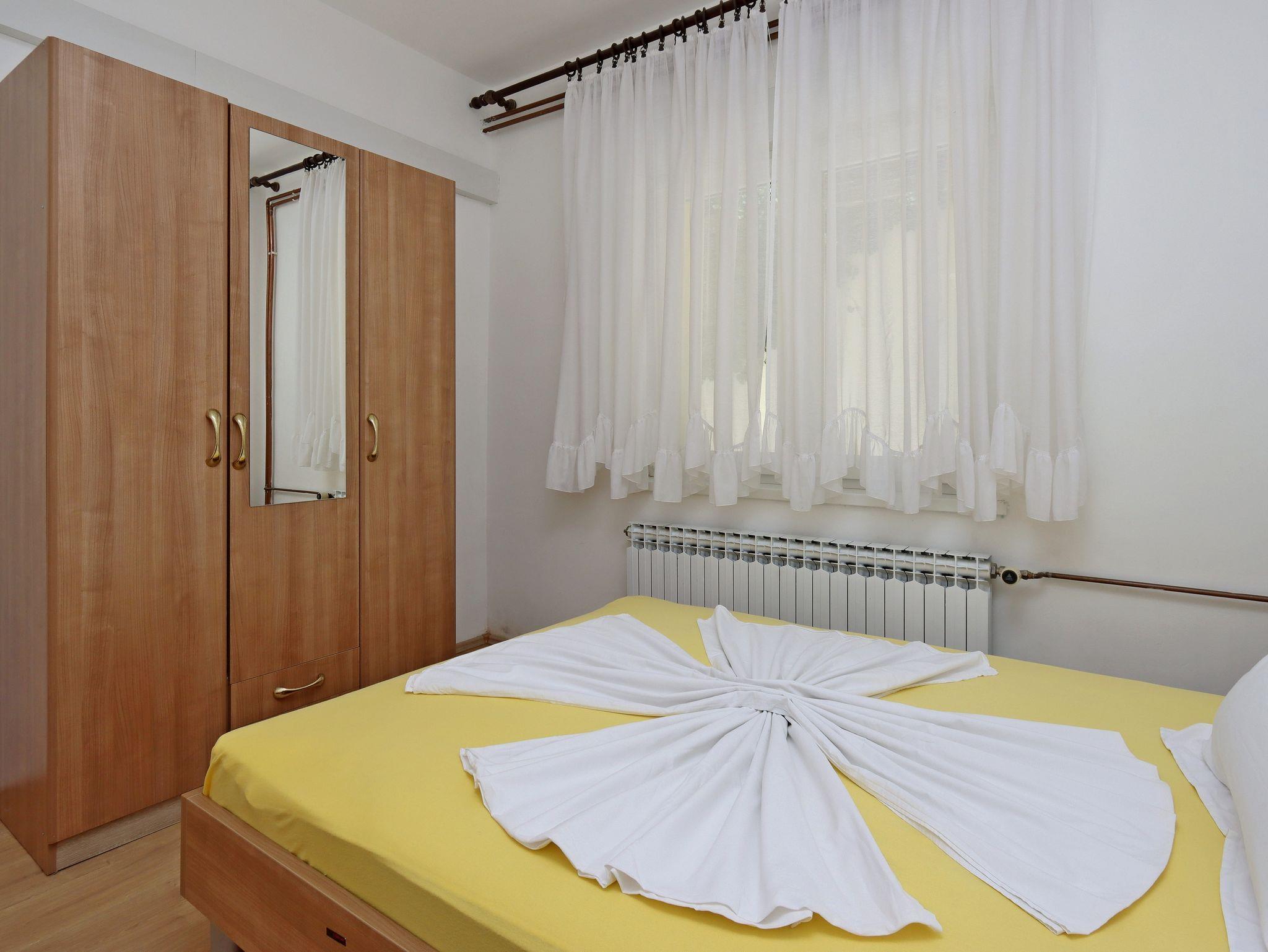 Ferienwohnung bietet Platz für 7 Gäste. Die Betten sind in Schlafzimmern, die es 2 gibt, und in Wohnzimmer, innerhalb einer Gesamtfläche von 74m2, angeordnet. Die Gäste haben eine eigene Terrasse zur Verfügung, auf der sie in warmen Sommernächten genießen können. Das Apartment bietet Meerblick. Es ist erlaubt, Speisen auf dem Gemeinschafts-Grill vorzubereiten. IM PREIS INBEGRIFFEN: Kurtaxe, Endreinigung, Klimatisierung, Parkplatz, Internet, Kinderbett, Bügeleisen, Bügelbrett, Föhn. VERBINDLICHE ZUSÄTZLICHE KOSTEN: Aufzahlung für Kurzaufenthalte (prozentualer Zuschlag pro Nächtigungsanzahl: 30% - 1, 20% - 2, 10% - 3). UNVERBINDLICHE ZUSÄTZLICHE KOSTEN: Wäschewaschen (5,00 € Waschen), Zusatzbett (10,00 € pro Nacht). Die Verfügbarkeit zusätzlicher Dienstleistungen in Ihrem reservierten Termin und die Preise derselben (falls nicht aufgeführt) müssen im Voraus überprüft werden. Zusätzliche Dienstleistungen die in der Zahlungsaufforderung nicht aufgeführt sind werden direkt beim Vermieter bezahlt, angenommen der Gast nutzt auch diese. Ermäßigung auf den Grundpreis: Gratistag 14=13 (bei einem Aufenthalt von 14 Tagen oder mehr erhalten Sie einen Gratistag für den Aufenthalt bis 31.12.26).