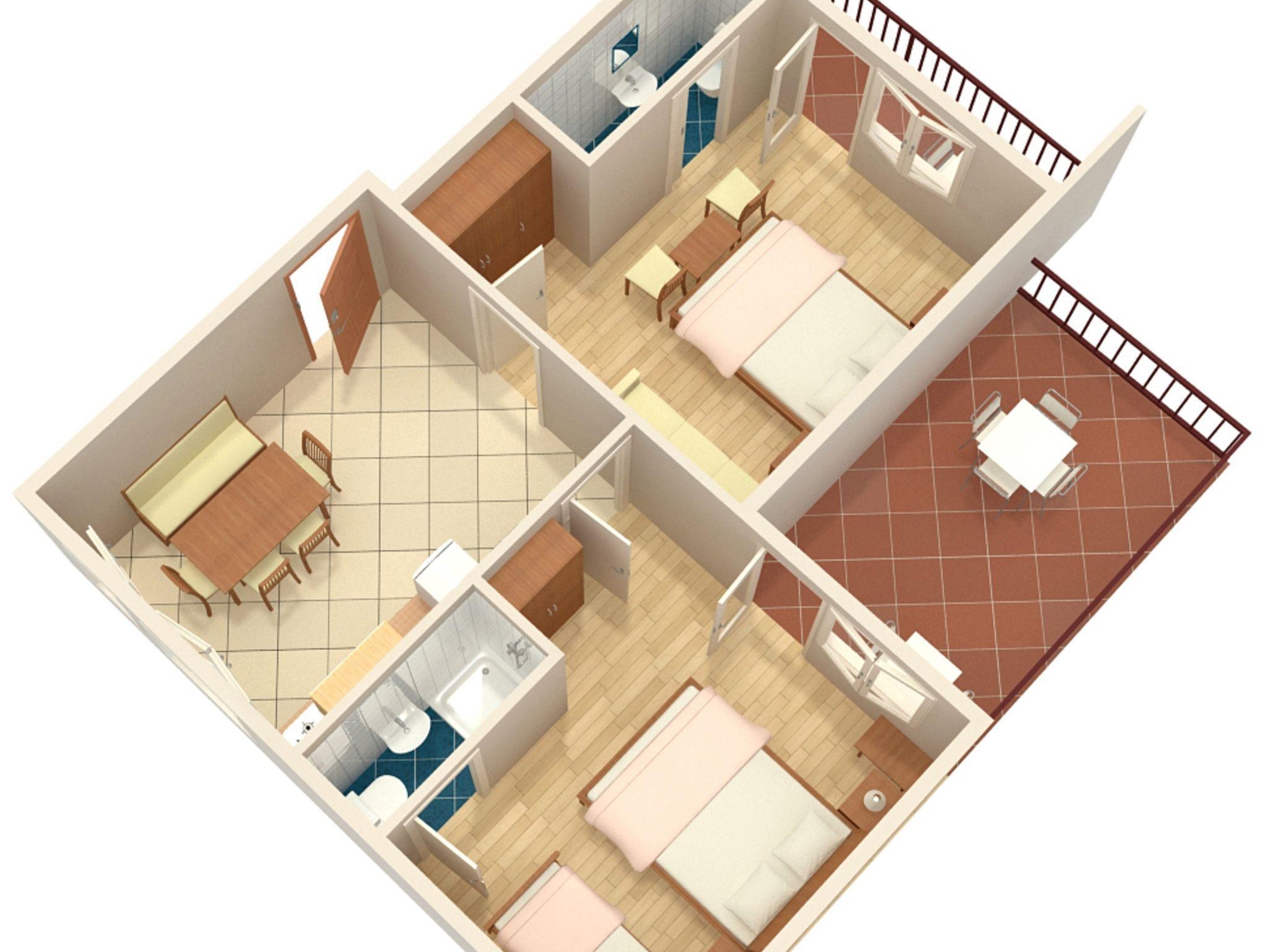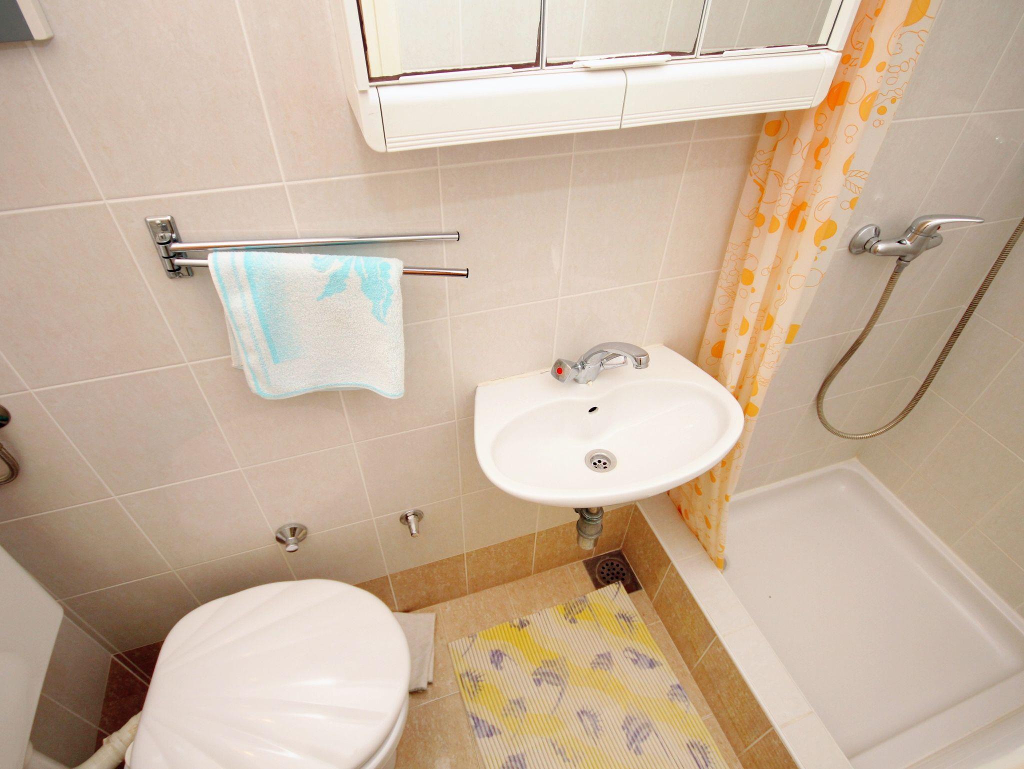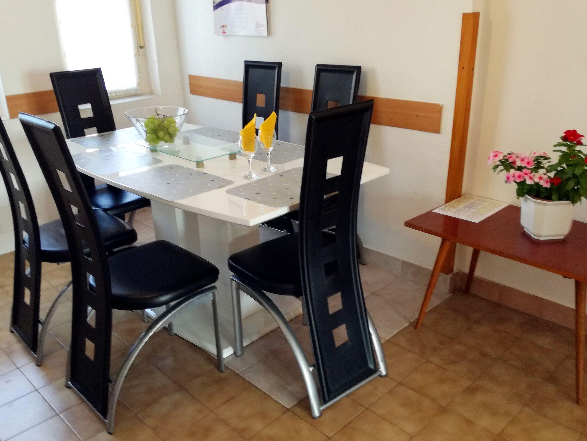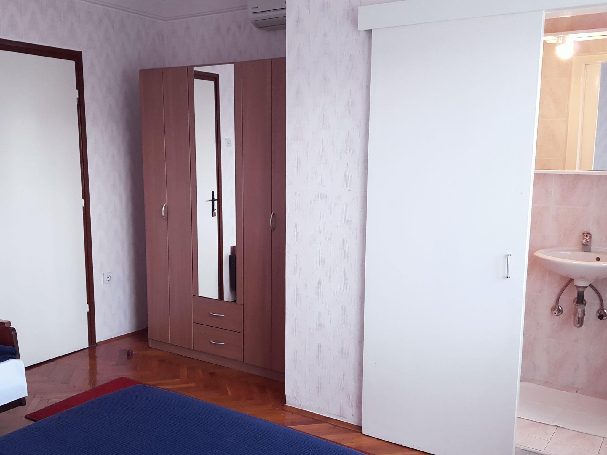 Ferienwohnung bietet Platz für 5 Gäste. Die Betten sind in Schlafzimmern, die es 1 gibt, und in Wohnzimmer, innerhalb einer Gesamtfläche von 46m2, angeordnet. Die Gäste haben eine eigene Terrasse zur Verfügung, auf der sie in warmen Sommernächten genießen können. Das Apartment bietet Meerblick. Es ist erlaubt, Speisen auf dem Gemeinschafts-Grill vorzubereiten. In der Unterkunftseinheit besteht die Möglichkeit des Mitbringens von Haustieren gegen Aufpreis. IM PREIS INBEGRIFFEN: Kurtaxe, Endreinigung, Klimatisierung, Parkplatz, Internet, Bügeleisen, Bügelbrett, Föhn, tragbarer Grill. VERBINDLICHE ZUSÄTZLICHE KOSTEN: Aufzahlung für Kurzaufenthalte (prozentualer Zuschlag pro Nächtigungsanzahl: 30% - 1, 20% - 2, 10% - 3). UNVERBINDLICHE ZUSÄTZLICHE KOSTEN: Wäschewaschen (5,00 € Waschen), Haustiere (12,00 € pro Nacht). Die Verfügbarkeit zusätzlicher Dienstleistungen in Ihrem reservierten Termin und die Preise derselben (falls nicht aufgeführt) müssen im Voraus überprüft werden. Zusätzliche Dienstleistungen die in der Zahlungsaufforderung nicht aufgeführt sind werden direkt beim Vermieter bezahlt, angenommen der Gast nutzt auch diese.