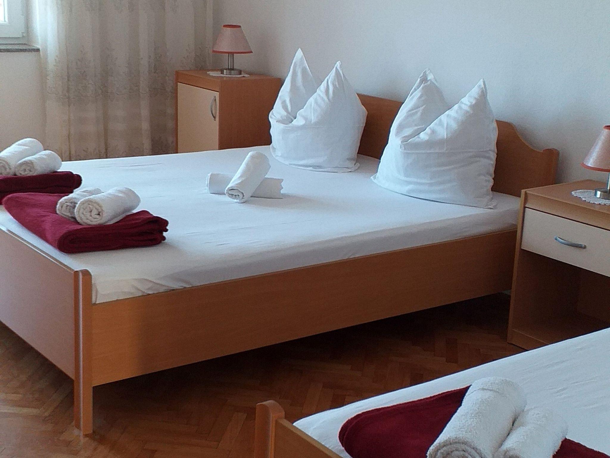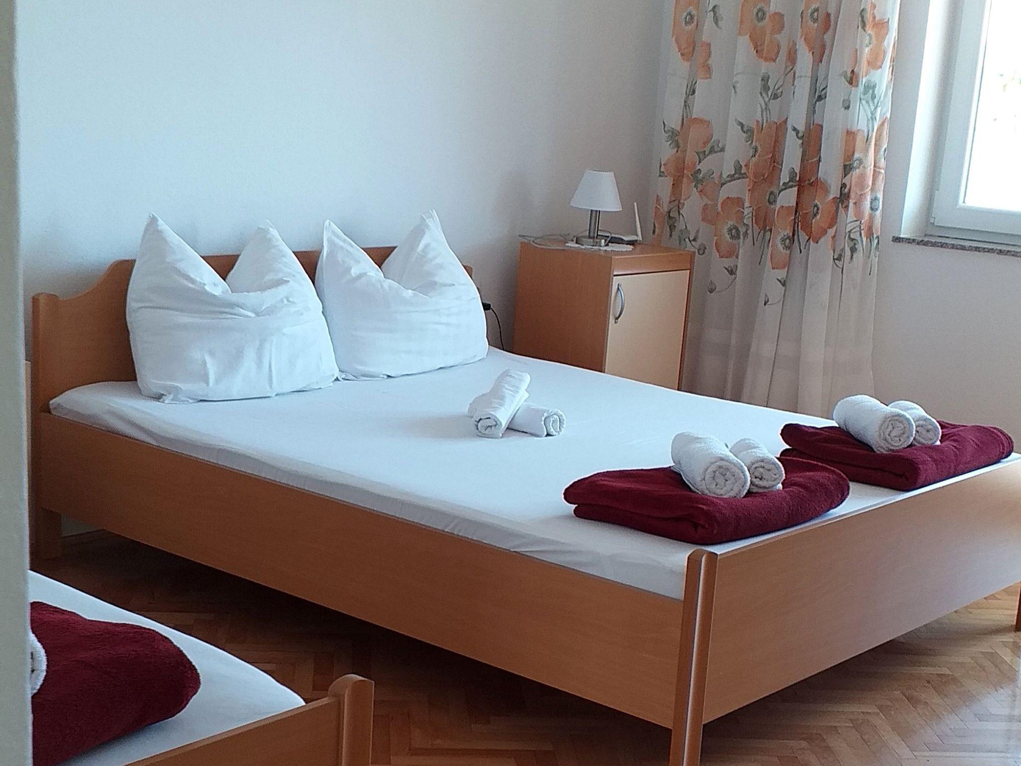 Ferienwohnung bietet Platz für 6 Gäste. Die Betten sind in Schlafzimmern, die es 2 gibt, innerhalb einer Gesamtfläche von 57m2, angeordnet. Die Gäste haben einen eigenen Balkon zur Verfügung, auf der sie in warmen Sommernächten genießen können. Das Apartment bietet Meerblick. Es ist erlaubt, Speisen auf dem Gemeinschafts-Grill vorzubereiten. In der Unterkunftseinheit besteht die Möglichkeit des Mitbringens von Haustieren gegen Aufpreis. IM PREIS INBEGRIFFEN: Kurtaxe, Endreinigung, Parkplatz, Internet. VERBINDLICHE ZUSÄTZLICHE KOSTEN: Aufzahlung für Kurzaufenthalte (prozentualer Zuschlag pro Nächtigungsanzahl: 30% - 1, 20% - 2, 10% - 3). UNVERBINDLICHE ZUSÄTZLICHE KOSTEN: Klimatisierung (6,00 € pro Nacht), Haustiere (6,00 € pro Nacht). Die Verfügbarkeit zusätzlicher Dienstleistungen in Ihrem reservierten Termin und die Preise derselben (falls nicht aufgeführt) müssen im Voraus überprüft werden. Zusätzliche Dienstleistungen die in der Zahlungsaufforderung nicht aufgeführt sind werden direkt beim Vermieter bezahlt, angenommen der Gast nutzt auch diese.