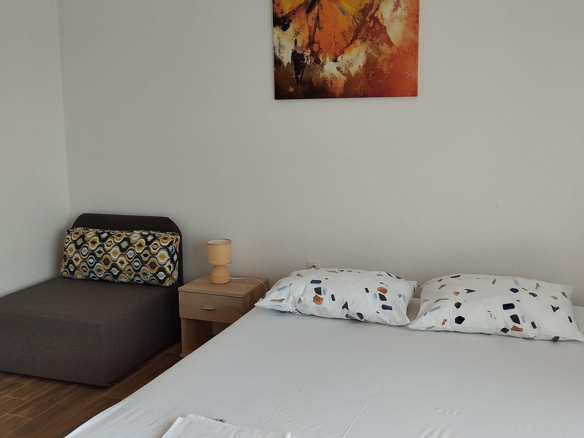 Ferienwohnung bietet Platz für 2 Gäste. Die Betten sind in Schlafzimmern, die es 1 gibt, innerhalb einer Gesamtfläche von 32m2, angeordnet. Die Gäste haben einen eigenen Balkon zur Verfügung, auf der sie in warmen Sommernächten genießen können. Das Apartment bietet Meerblick. Für vollen Genuss und Entspannung gibt es einen privaten Grill für Gäste dieser Unterkunft. In der Unterkunftseinheit besteht die Möglichkeit des Mitbringens von Haustieren gegen Aufpreis. IM PREIS INBEGRIFFEN: Kurtaxe, Endreinigung, Klimatisierung, Parkplatz, Internet, Zusatzbett, Bügeleisen, Bügelbrett, Föhn. UNVERBINDLICHE ZUSÄTZLICHE KOSTEN: Haustiere (10,00 € pro Nacht). Die Verfügbarkeit zusätzlicher Dienstleistungen in Ihrem reservierten Termin und die Preise derselben (falls nicht aufgeführt) müssen im Voraus überprüft werden. Zusätzliche Dienstleistungen die in der Zahlungsaufforderung nicht aufgeführt sind werden direkt beim Vermieter bezahlt, angenommen der Gast nutzt auch diese.