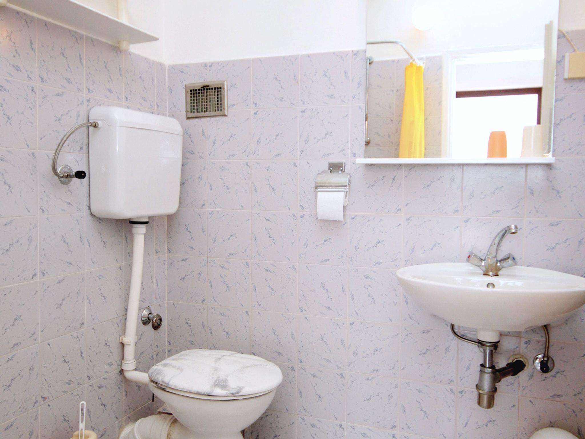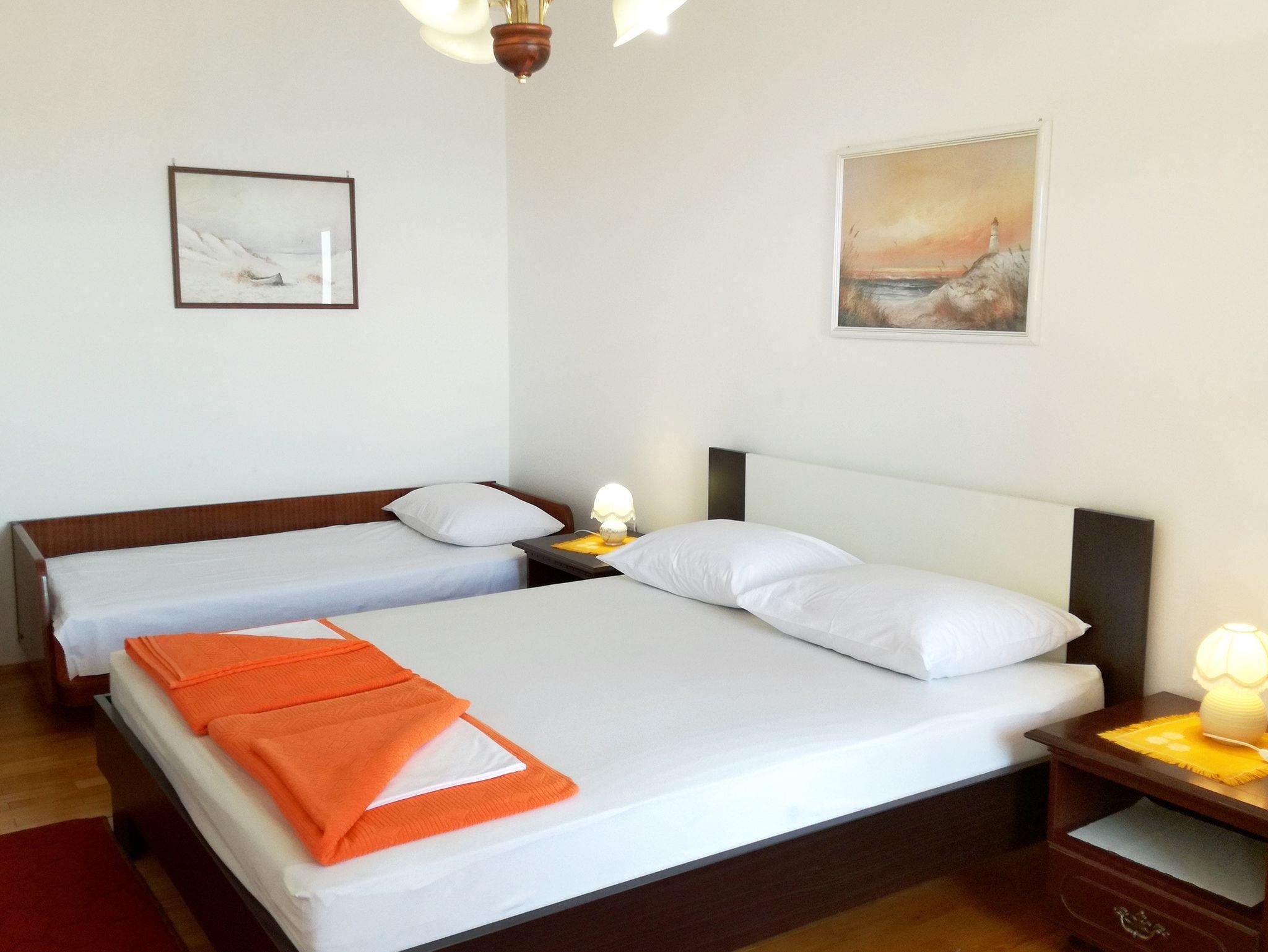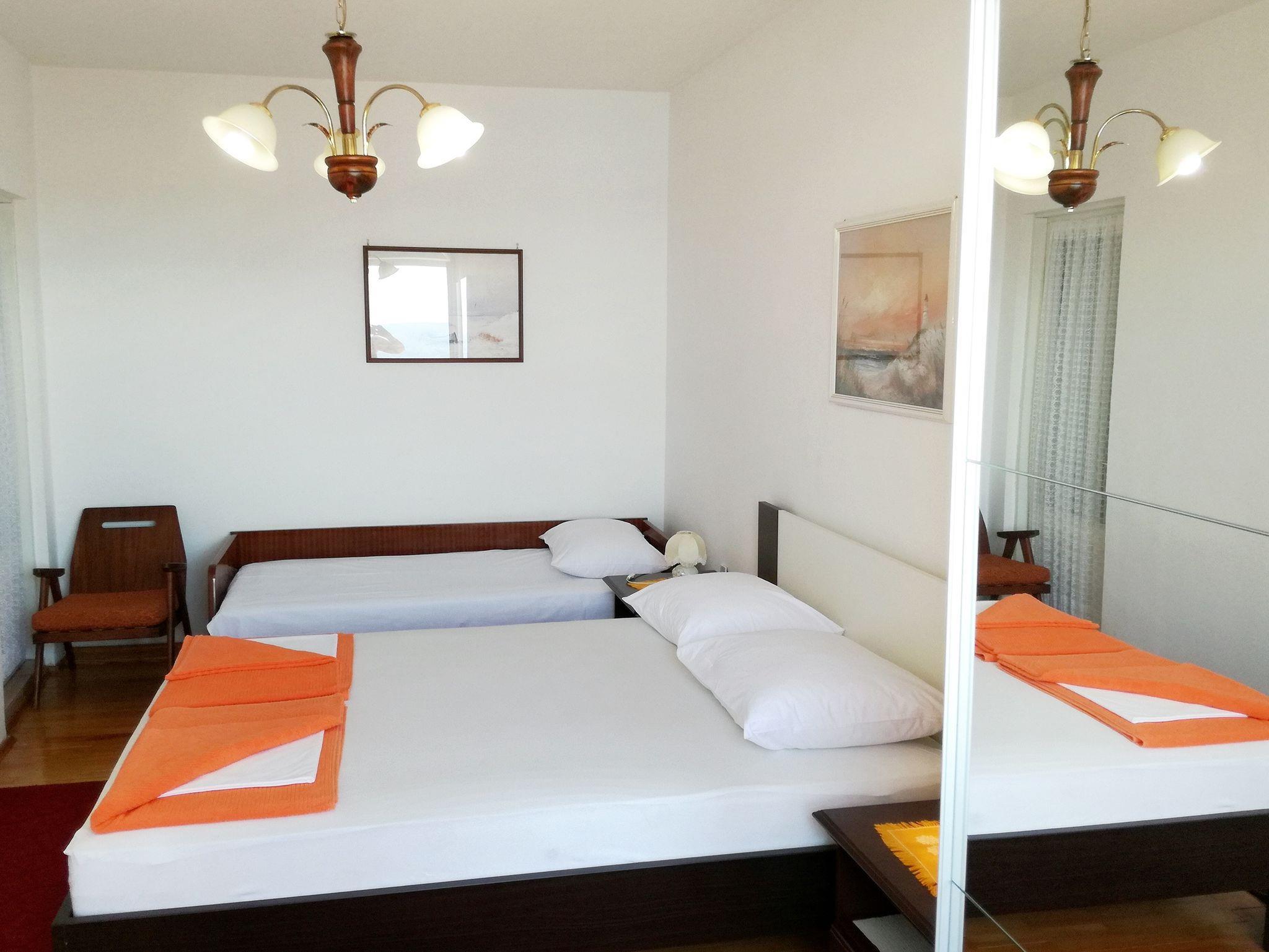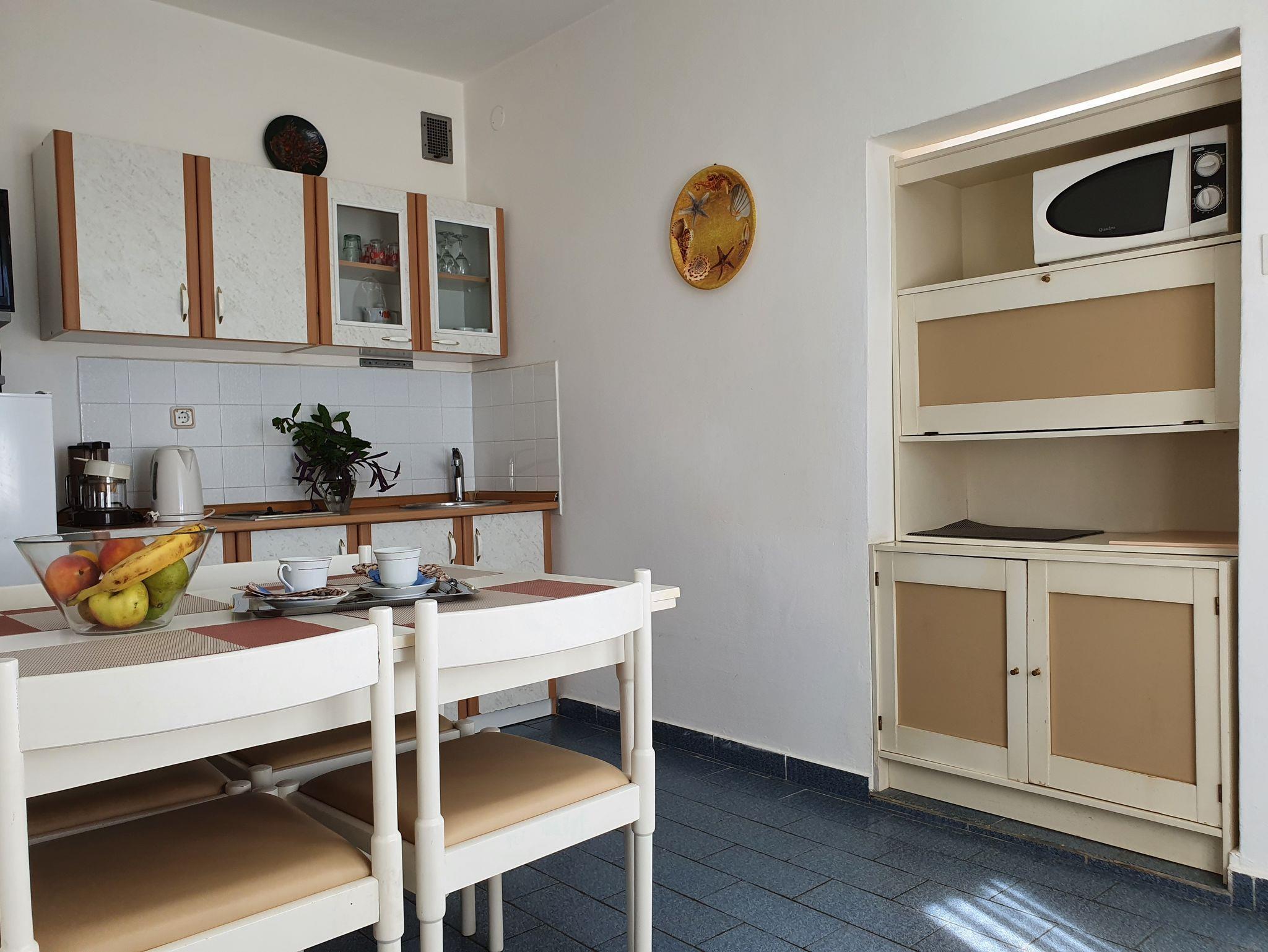 Ferienwohnung bietet Platz für 5 Gäste. Die Betten sind in Schlafzimmern, die es 1 gibt, und in Wohnzimmer, innerhalb einer Gesamtfläche von 51m2, angeordnet. Die Gäste haben eine eigene Terrasse zur Verfügung, auf der sie in warmen Sommernächten genießen können. Das Apartment bietet Meerblick. Es ist erlaubt, Speisen auf dem Gemeinschafts-Grill vorzubereiten. In der Unterkunftseinheit besteht die Möglichkeit des Mitbringens von Haustieren gegen Aufpreis. IM PREIS INBEGRIFFEN: Kurtaxe, Endreinigung, Klimatisierung, Parkplatz, Internet, Bügeleisen, Bügelbrett, Föhn, tragbarer Grill. VERBINDLICHE ZUSÄTZLICHE KOSTEN: Aufzahlung für Kurzaufenthalte (prozentualer Zuschlag pro Nächtigungsanzahl: 30% - 1, 20% - 2, 10% - 3). UNVERBINDLICHE ZUSÄTZLICHE KOSTEN: Wäschewaschen (5,00 € Waschen), Haustiere (12,00 € pro Nacht). Die Verfügbarkeit zusätzlicher Dienstleistungen in Ihrem reservierten Termin und die Preise derselben (falls nicht aufgeführt) müssen im Voraus überprüft werden. Zusätzliche Dienstleistungen die in der Zahlungsaufforderung nicht aufgeführt sind werden direkt beim Vermieter bezahlt, angenommen der Gast nutzt auch diese.