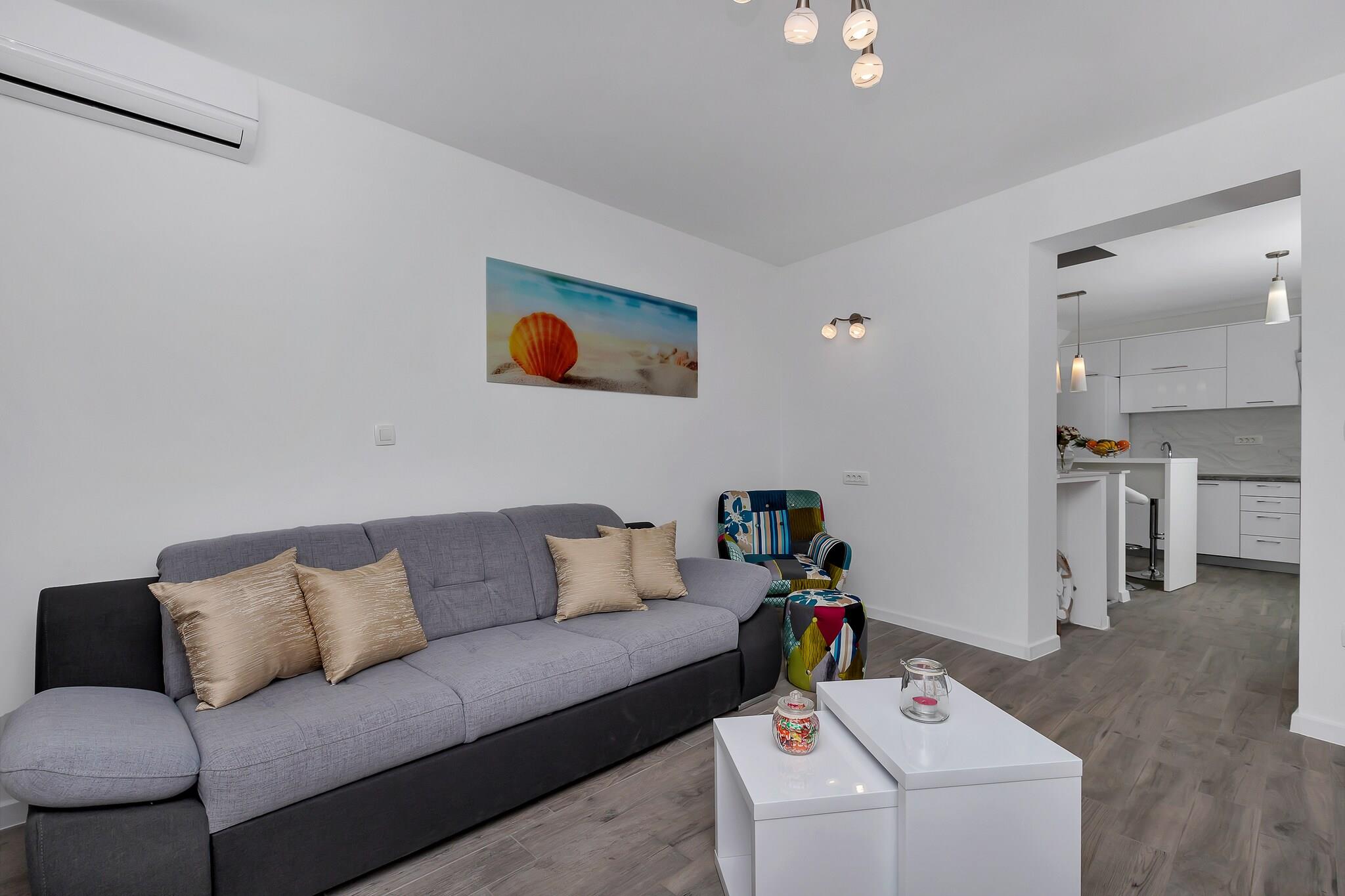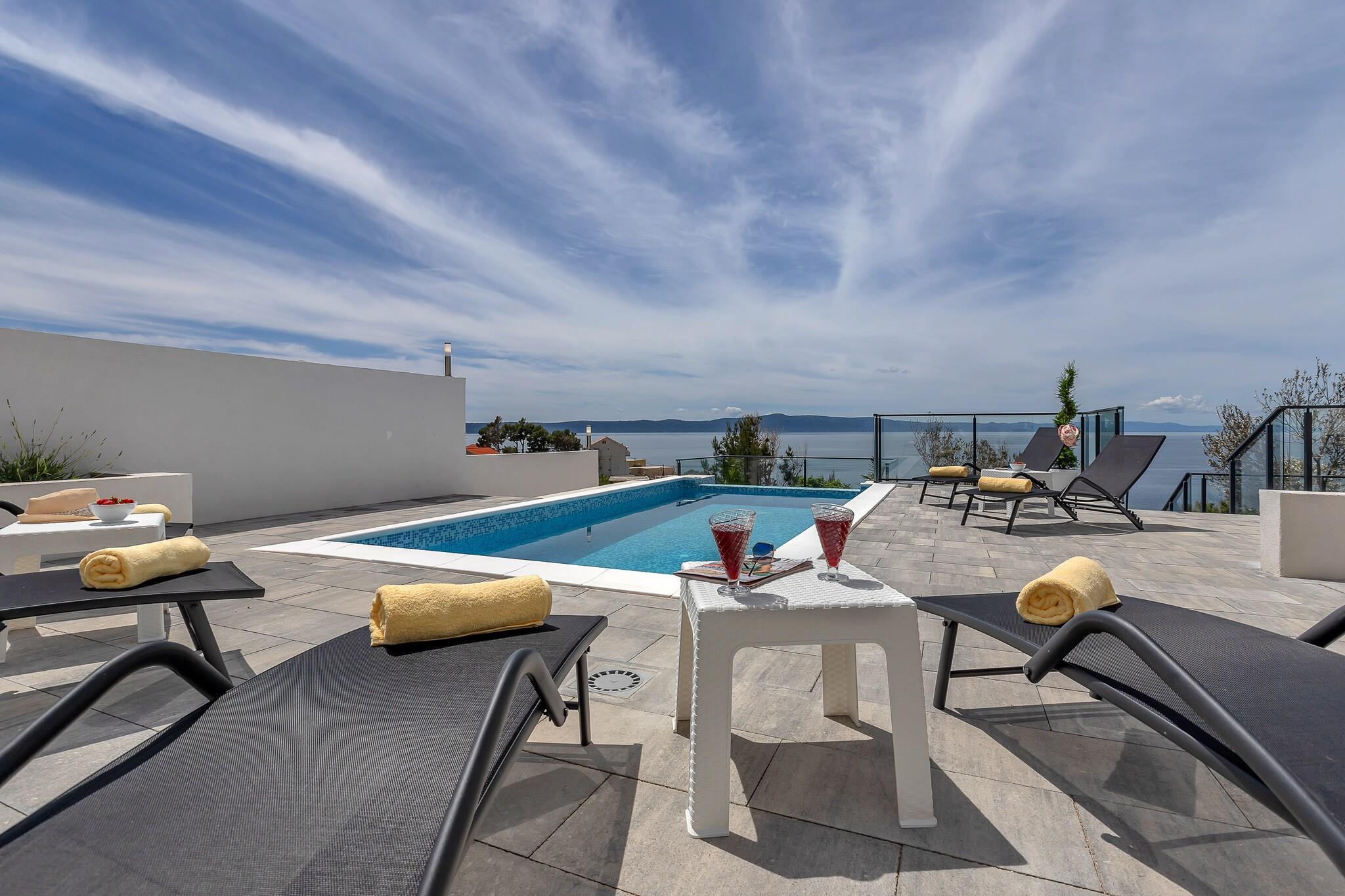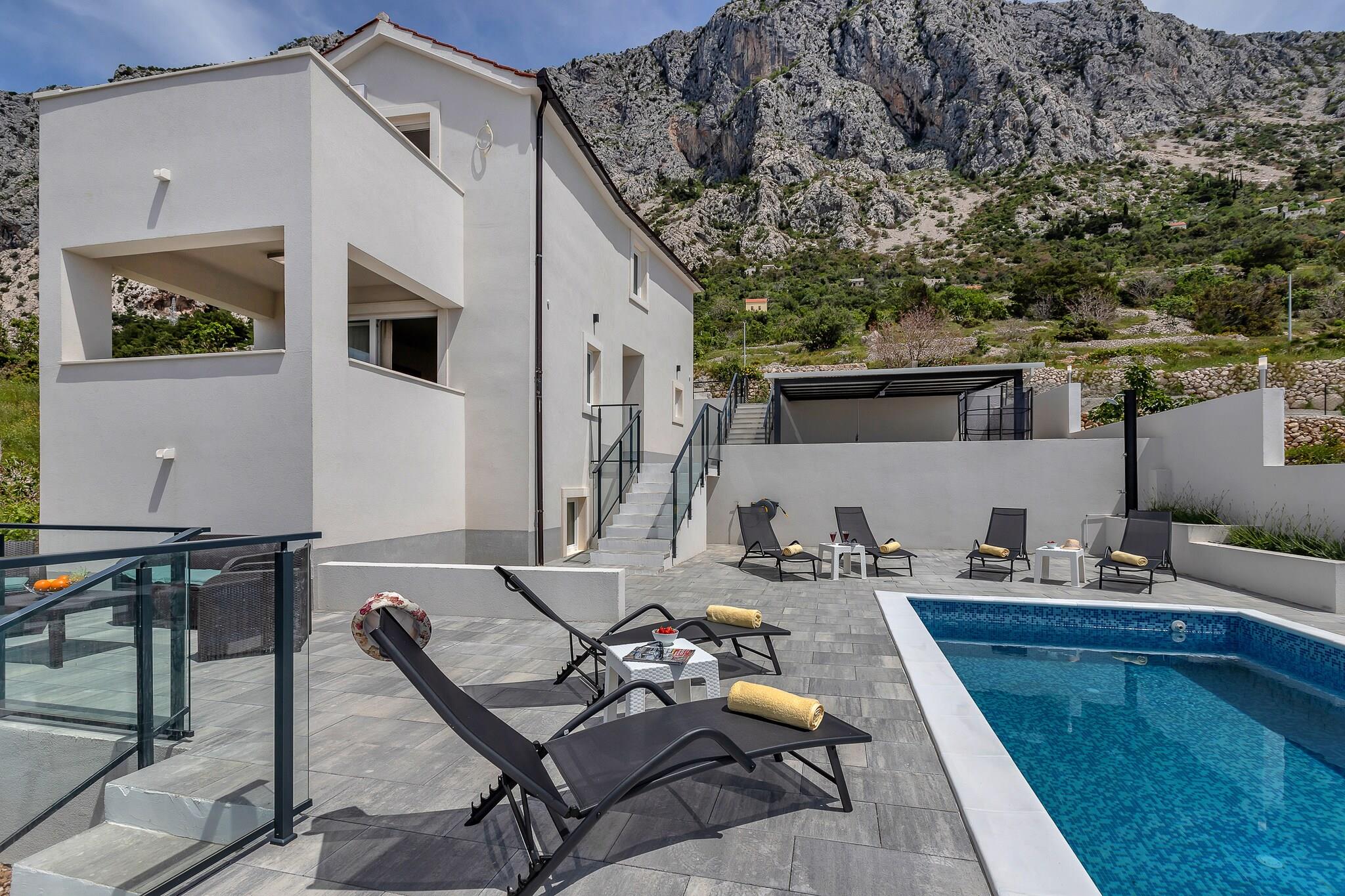 Denne smukke fritliggende villa i Drašnice, beliggende i Kroatiens Dalmatien-region, tilbyder et perfekt tilflugtssted for familier, par eller venner, med plads til op til 6 gæster i 2 rummelige soveværelser. Beliggende ved foden af det majestætiske Biokovo-bjerg og kun 150 meter fra stranden, kan villaen prale af en betagende havudsigt og rolige naturlige omgivelser. Nyd en privat infinity-pool beliggende i en smuk kaskadehave, og slap af på den overdækkede terrasse, mens du nyder de fantastiske omgivelser. Indvendigt har stueetagen et moderne åbent køkken og spiseplads, mens øverste etage rummer to komfortable soveværelser og et lækkert badeværelse. Kælderen indeholder et sjovt legerum, ideelt for gæster i alle aldre. Bekvemt beliggende kun 3 km fra Podgoras centrum og dens turistinformation, tilbyder denne villa nem adgang til lokale faciliteter. Nærliggende lufthavne omfatter Split, Zadar og Dubrovnik. Bemærk, at korte ophold ikke er tilgængelige, og op til 3 kæledyr er velkomne gratis, hvilket gør dette til et ideelt feriehus for kæledyrsejere.