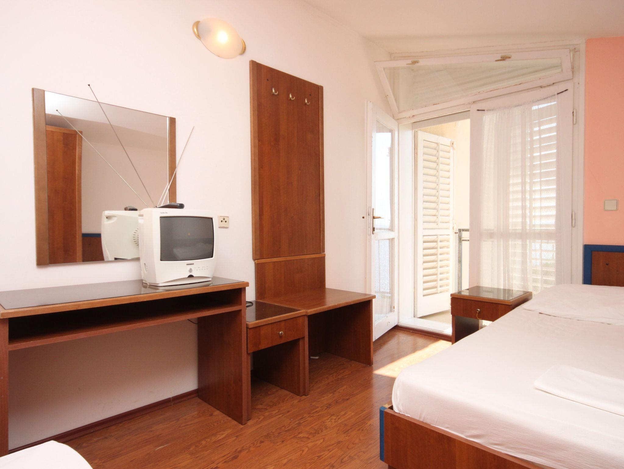 Studio bietet Platz für 3 Gäste. Die Betten sind in Schlafzimmern, die es 1 gibt, innerhalb einer Gesamtfläche von 18m2, angeordnet. Die Gäste haben einen eigenen Balkon zur Verfügung, auf der sie in warmen Sommernächten genießen können. Das Studio-Apartment bietet Meerblick. IM PREIS INBEGRIFFEN: Frühstück, Endreinigung, Klimatisierung, Parkplatz, Internet, Wäschewaschen, Bügelbrett, Föhn. VERBINDLICHE ZUSÄTZLICHE KOSTEN: Kurtaxe (Erwachsene 0,93 € - 1,78 € Nacht/Person, Kinderermäßigung 12 - 17 Jahre), Aufzahlung für Kurzaufenthalte (prozentualer Zuschlag pro Nächtigungsanzahl: 30% - 1, 20% - 2, 10% - 3). UNVERBINDLICHE ZUSÄTZLICHE KOSTEN: Halbpension (12,00 €, 50% Nachlass für Kinder zwischen 4 und 12 Jahren, Kinder bis 4 Jahre sind frei.), Vollpension (24,00 €, 50% Nachlass für Kinder zwischen 4 und 12 Jahren, Kinder bis 4 Jahre sind frei.). Die Verfügbarkeit zusätzlicher Dienstleistungen in Ihrem reservierten Termin und die Preise derselben (falls nicht aufgeführt) müssen im Voraus überprüft werden. Zusätzliche Dienstleistungen die in der Zahlungsaufforderung nicht aufgeführt sind werden direkt beim Vermieter bezahlt, angenommen der Gast nutzt auch diese.