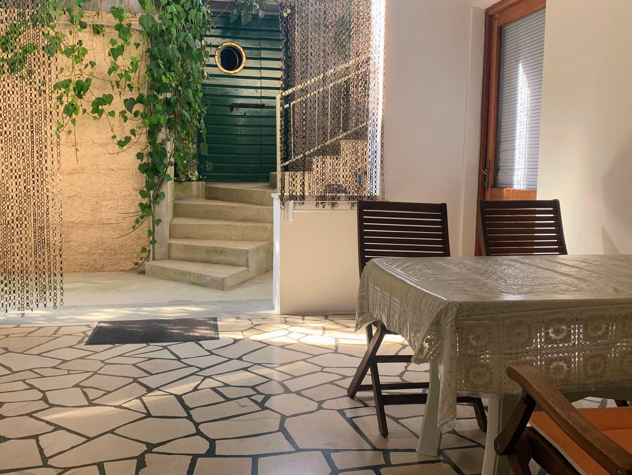 Ferienwohnung bietet Platz für 4 Gäste. Die Betten sind in Schlafzimmern, die es 2 gibt, innerhalb einer Gesamtfläche von 52m2, angeordnet. Die Gäste haben eine eigene Terrasse zur Verfügung, auf der sie in warmen Sommernächten genießen können. Räume der gebuchten Unterkunftseinheit werden nicht in eine Ganze verbunden. IM PREIS INBEGRIFFEN: Kurtaxe, Endreinigung, Klimatisierung, Parkplatz, Garage, Internet, Bügeleisen, Bügelbrett, Föhn. UNVERBINDLICHE ZUSÄTZLICHE KOSTEN: Wäschewaschen (3,00 € Waschen), Boot (200,00 € pro Nacht), Bootsanlegeplatz (1,00 € pro Nacht), Fahrrad (1,00 € täglich (pro Stück)). Die Verfügbarkeit zusätzlicher Dienstleistungen in Ihrem reservierten Termin und die Preise derselben (falls nicht aufgeführt) müssen im Voraus überprüft werden. Zusätzliche Dienstleistungen die in der Zahlungsaufforderung nicht aufgeführt sind werden direkt beim Vermieter bezahlt, angenommen der Gast nutzt auch diese.