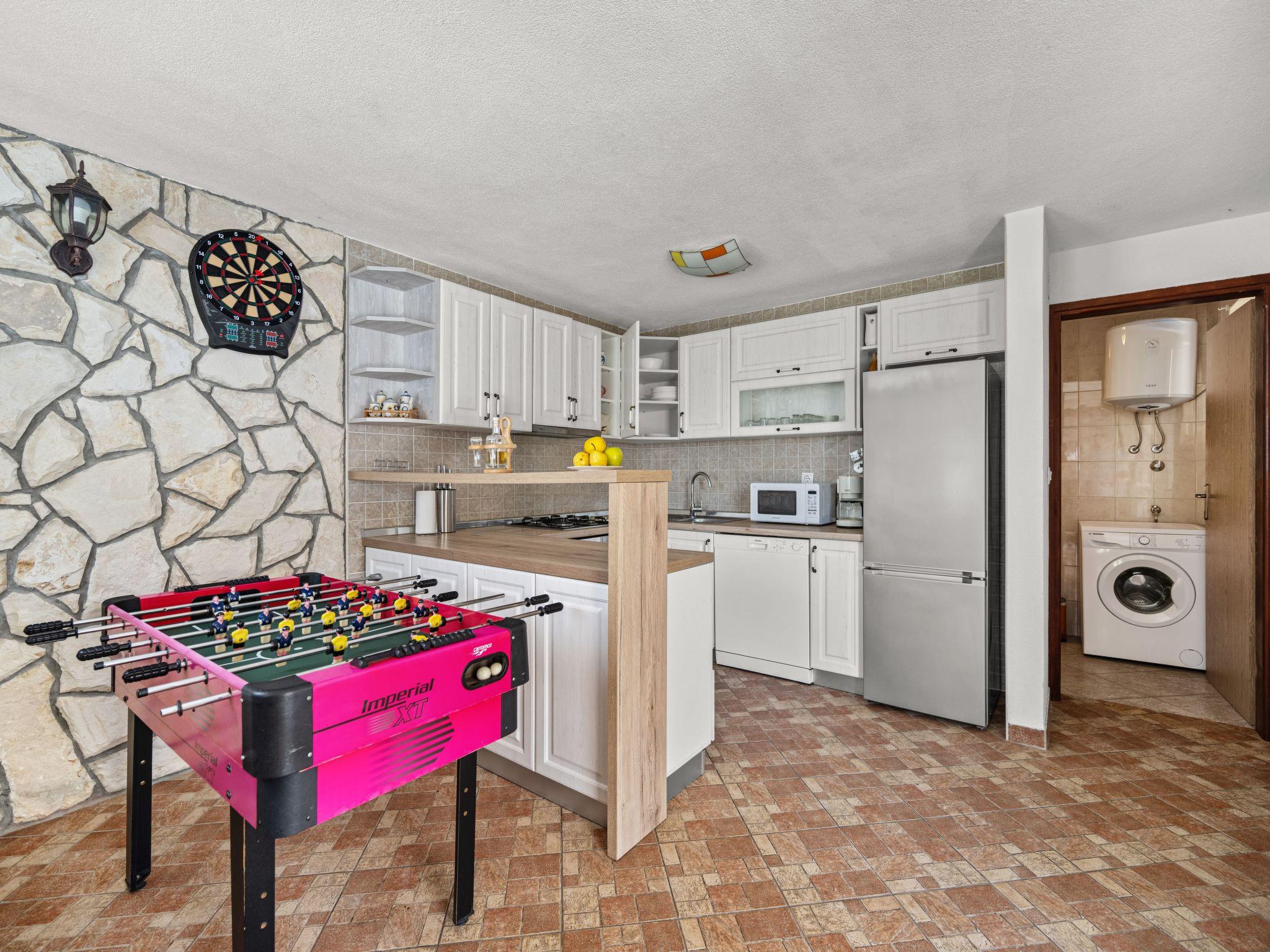 Villa Fortuna was renovated in 2013 so it offers many details that are famous in house designing filed in the last decade. This vacation home is made for up to 10 guests and it is 130 m2 large. The house has a total of 4 bedrooms and 3 bathrooms across 3 floors. On the second floor, you can find 2 bedrooms, small kitchen, and a living room. Both bedrooms have a double bed (160*200). The first floor also has 2 bedrooms, one with double bed (180*200) and one with a bunk bed. The kitchen on each floor is equipped with appliances that you need for everyday use. Living room/dining room on each floor has a table for 4 to5 persons, a sofa, and a TV.