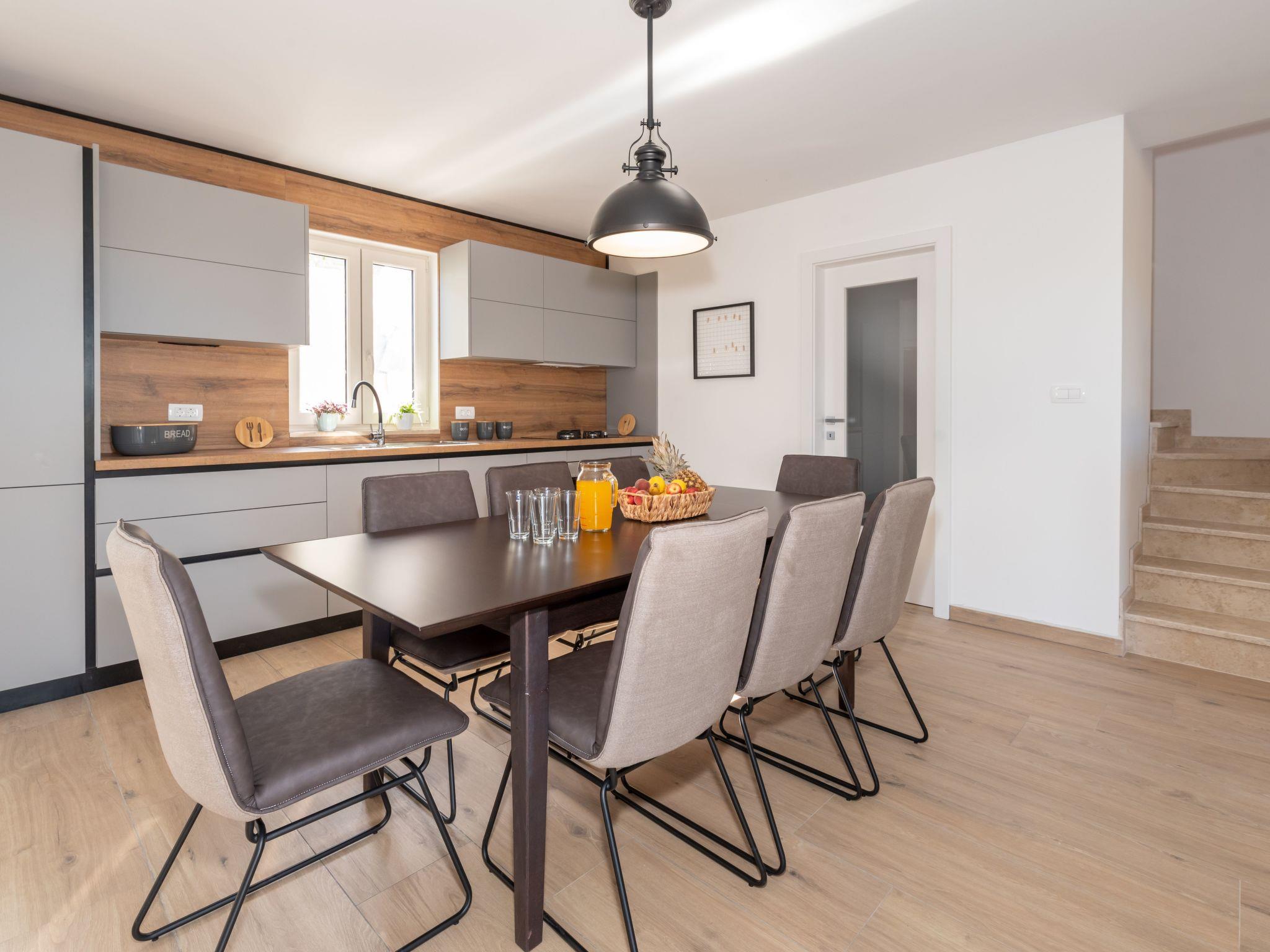 The house has a large living and dining area on the ground floor. A modern and beautiful fully equipped kitchen that is just waiting for you to prepare the Michelin star menu. Well, what if you prefer to barbecue? Enjoy the outdoor dining area. Don't forget to relax in the infinity pool and have a good time. The house has a bathroom and an air-conditioned bedroom on the ground floor. The air-conditioned living room has a pull-out couch in case someone wants to sleep separately. You have two master bedrooms upstairs, each with its own bathroom. The upper floor has air conditioning. And yes... last but not least. Internet, a washing machine and a dishwasher are also available. Make your next holiday the best one yet!