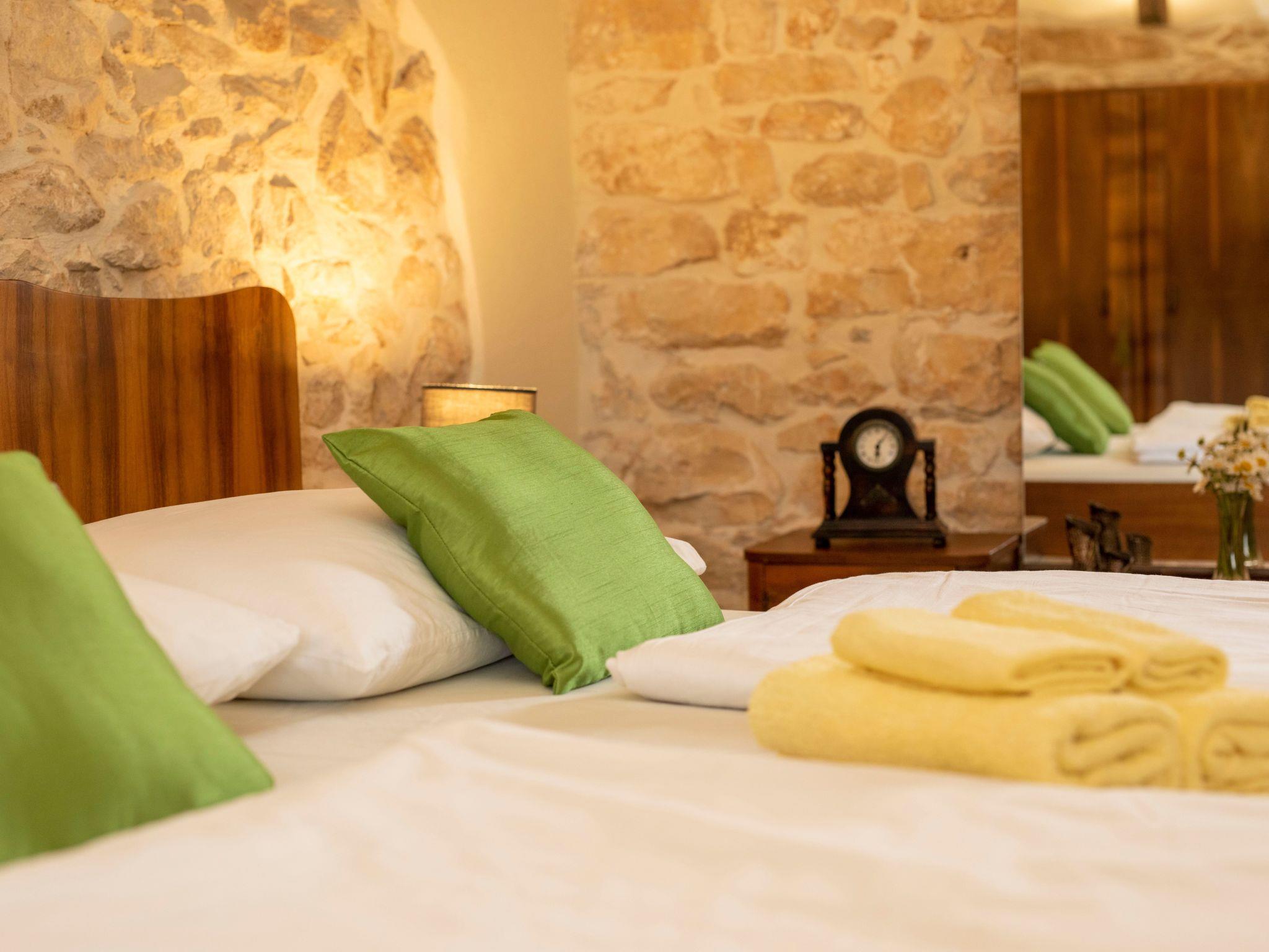 Step inside Villa Milka to find a lovingly restored century-old stone house that exudes traditional Istrian charm. With 134 square meters of space spread over two floors, the villa comfortably accommodates 4 + 2 guests. The interior boasts two cozy double bedrooms and a sizable sofa bed in the living room for additional guests. The ground floor is home to a traditional, fully equipped kitchen, a dining room, and a living room, as well as a bathroom, while the first floor houses the bedrooms and a balcony. The villa's dedication to preserving its historical integrity is evident in its faithful reconstruction, including the original roof and thick stone walls dating back to the 19th century, complemented by numerous original and traditional details.