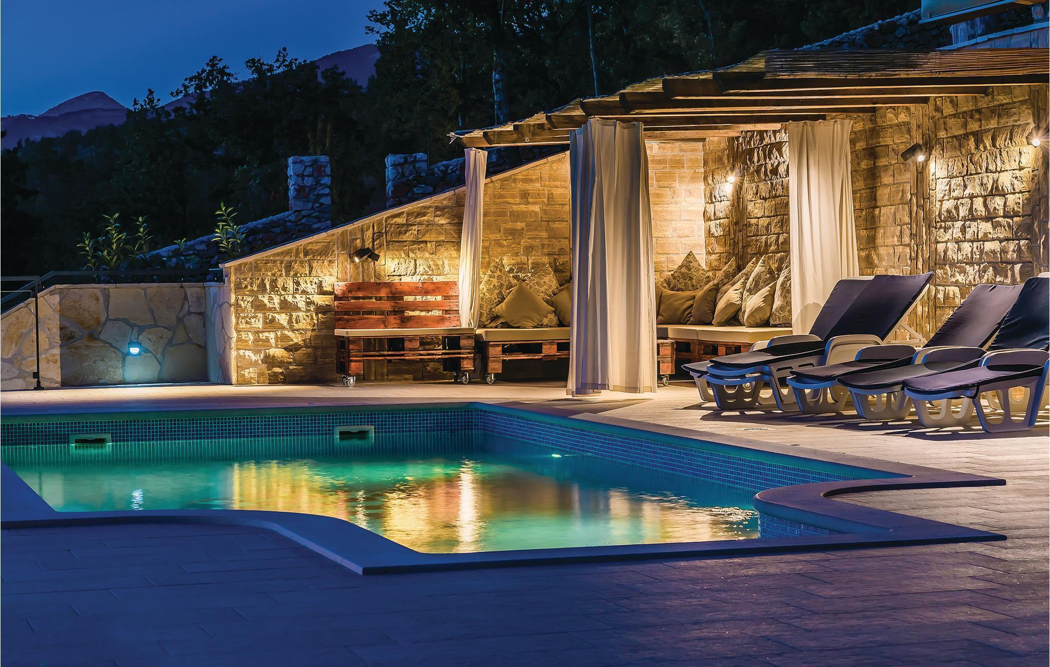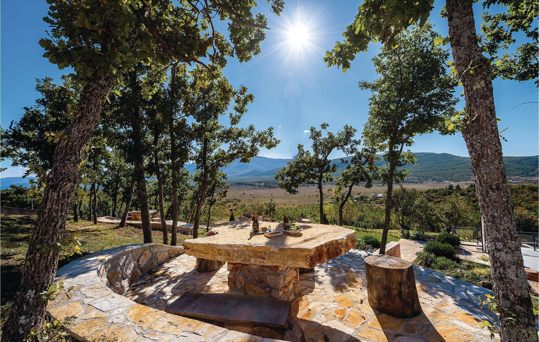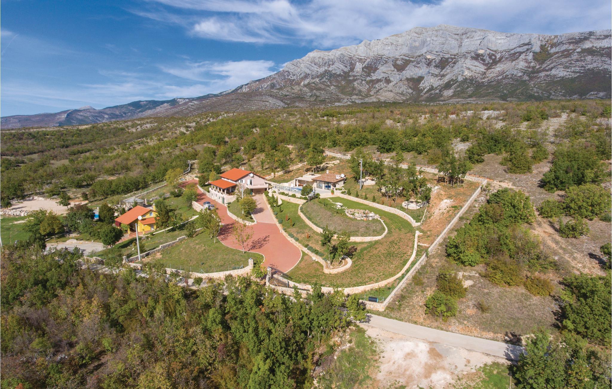 I den lille landsby Kijevo, ved foden af to bjerge og tæt på byen Drniš ligger dette komfortable og smagfuldt indrettede feriehus. Her kan I tilbringe en uforglemmelig ferie. På varme sommerdage kan I finde forfriskning i poolen eller nyde lækker mad fra den murede grill sammen med venner og familie på den store grund, med både sol og skygge. 3 km fra huset er der en restaurant, hvor I kan smage lokale retter og lære Kroatiens kulinariske specialiteter at kende. Der er skøn natur omkring Kiew og i det dalmatinske bagland, ligesom I kan besøge byen Vrlika.