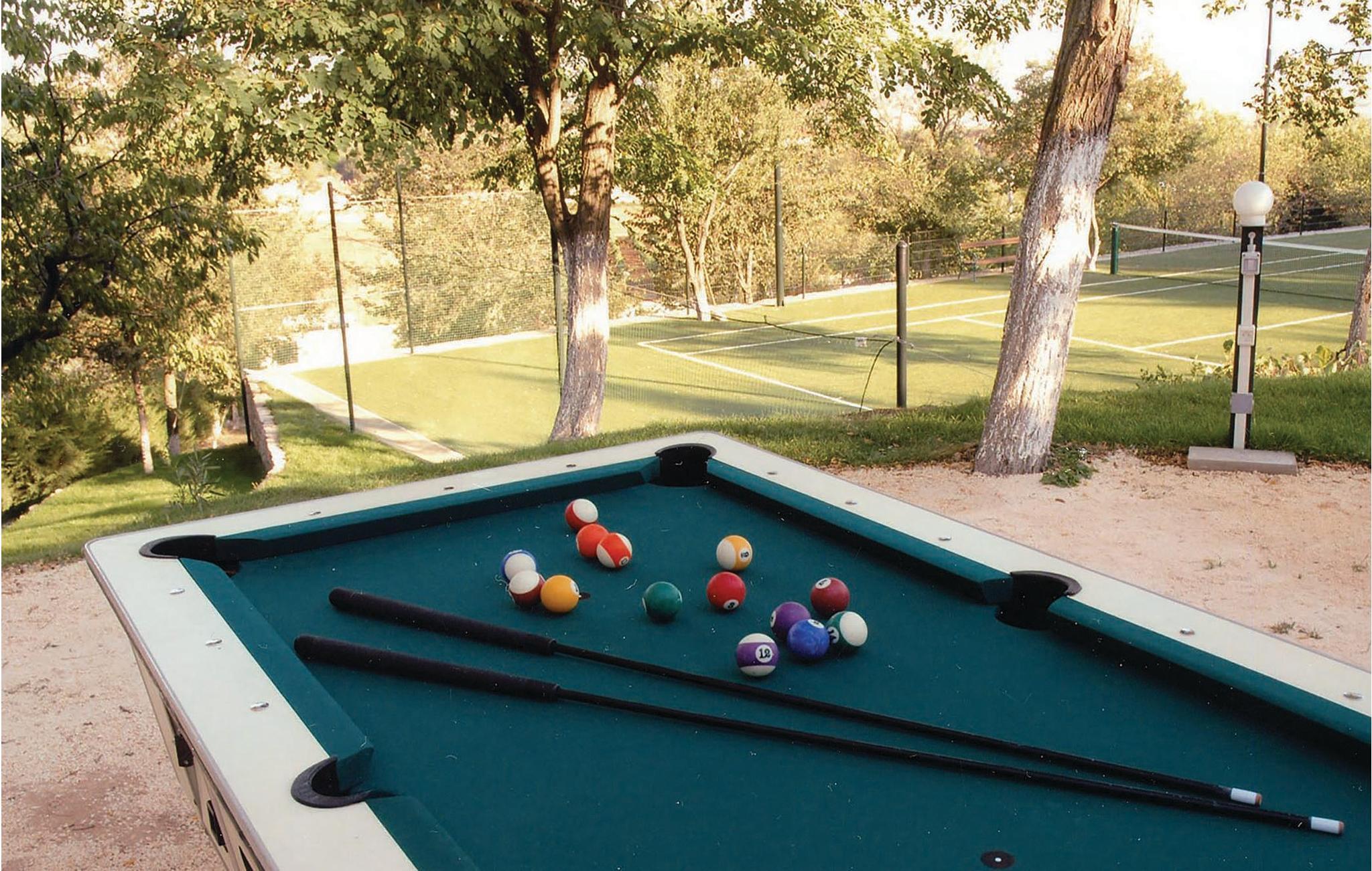 To separate ferieboliger er tilgængelige med en fælles gårdsplads. I det ene hus ligger soveværelserne, mens i det andet hus indeholder den hyggelige og indbydende stue og opholdsrum. Ud over swimmingpoolen (fra 1.6.2009) og en tennisbane, som vil passe perfekt ind i naturen, skal også billard, bordtennis, cykler og forskellige brætspil hjælpe med til at gøre det til en perfekt ferie. I en udendørs pejs kan man tilberede traditionelle og lækre måltider. Gæsterne kan også gøre brug af den lille økologiske have. Denne rolige og uforstyrrede ejendom ligger på det rigtige sted, så det er muligt at nyde privatlivet fred og idyl. I de tidlige morgen timer, kommer der en alt-mulig-mand forbi, hvis man ønsker det.