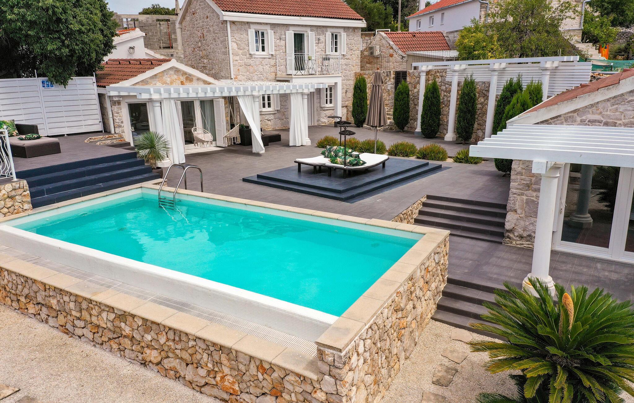 Smuk stenvilla med panoramaudsigt over havet og privat pool på den dejlige ø Drvenik Mali.