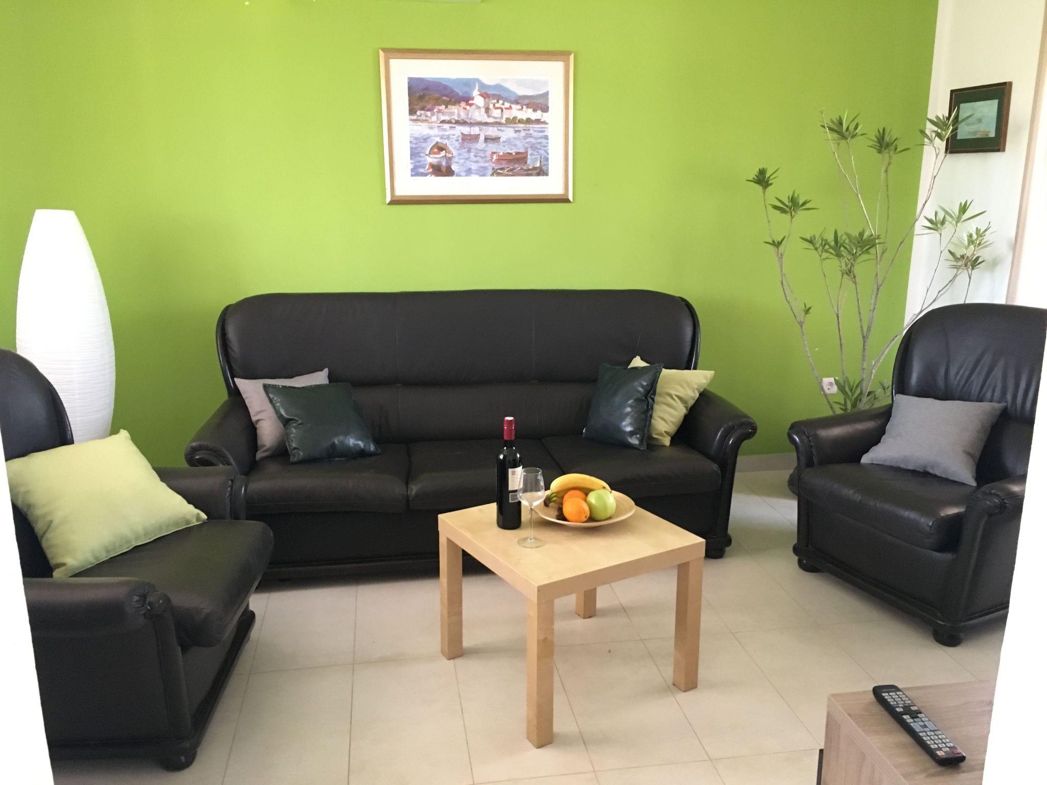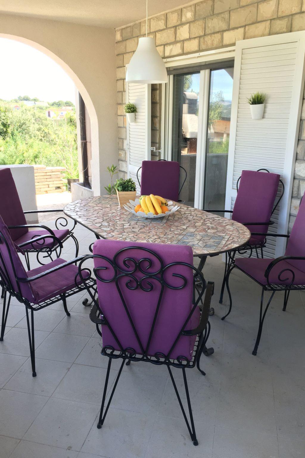 The covered, extensive terrace affords a sea view and provides garden furniture, two deckchairs and a grill. Six people can sit together at the large table or grill in the evening. The bedroom balconies are furnished with deckchairs and have a beautiful view of the Adriatic. The site with two parking spaces is fenced and therefore suitable for children, as well as dogs.
