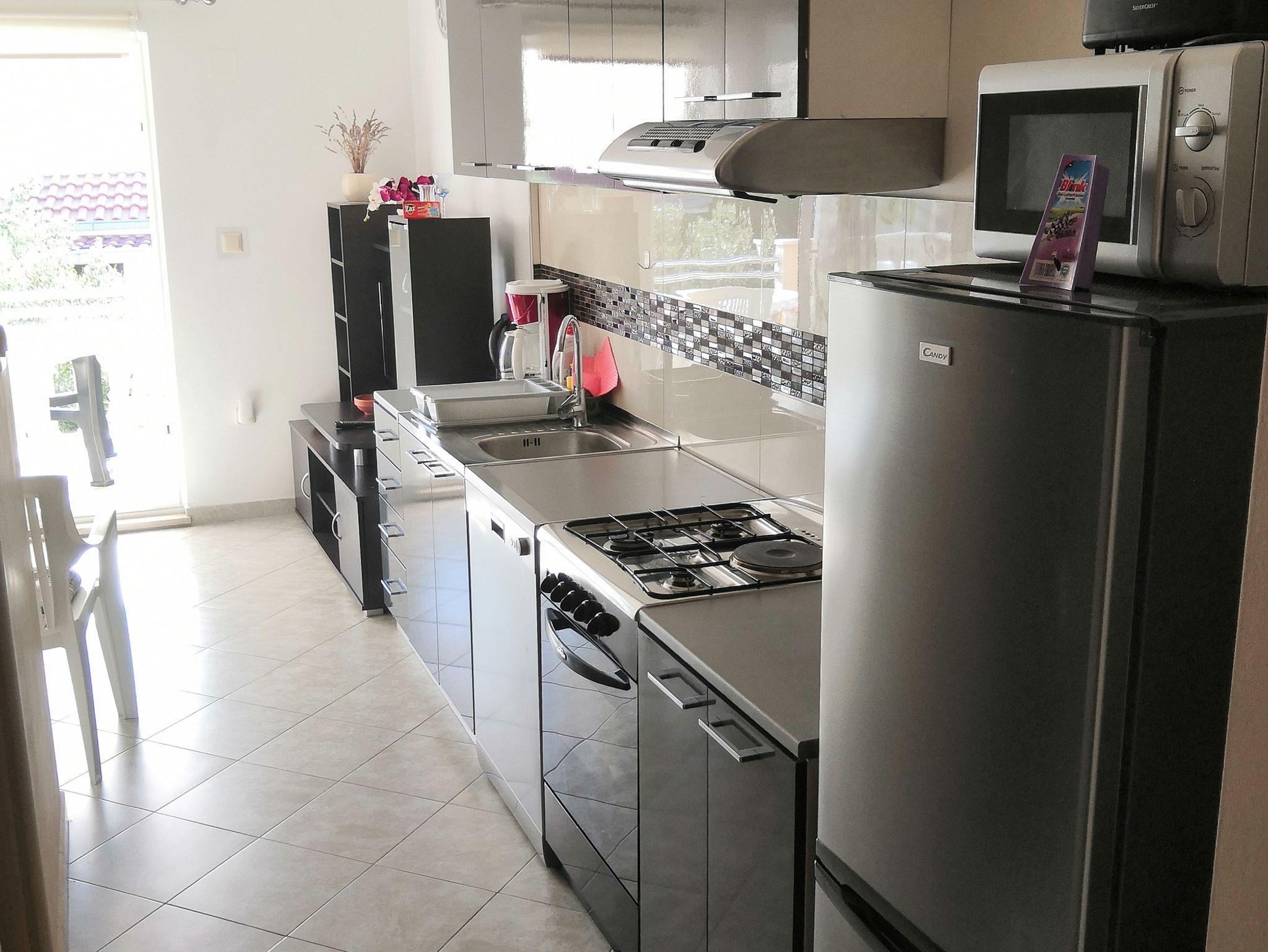 Ferienwohnung bietet Platz für 6 Gäste. Die Betten sind in Schlafzimmern, die es 2 gibt, und in Wohnzimmer, innerhalb einer Gesamtfläche von 37m2, angeordnet. Die Gäste haben eine eigene Terrasse zur Verfügung, auf der sie in warmen Sommernächten genießen können. Das Apartment bietet Meerblick. Es ist erlaubt, Speisen auf dem Gemeinschafts-Grill vorzubereiten. IM PREIS INBEGRIFFEN: Kurtaxe, Endreinigung, Klimatisierung, Parkplatz, Internet, Wäschewaschen, Kinderbett, Bügeleisen, Bügelbrett, Föhn, Sonnenschirm, Liegestühle. VERBINDLICHE ZUSÄTZLICHE KOSTEN: Aufzahlung für Kurzaufenthalte (prozentualer Zuschlag pro Nächtigungsanzahl: 30% - 1, 20% - 2, 10% - 3). Die Verfügbarkeit zusätzlicher Dienstleistungen in Ihrem reservierten Termin und die Preise derselben (falls nicht aufgeführt) müssen im Voraus überprüft werden. Zusätzliche Dienstleistungen die in der Zahlungsaufforderung nicht aufgeführt sind werden direkt beim Vermieter bezahlt, angenommen der Gast nutzt auch diese.
