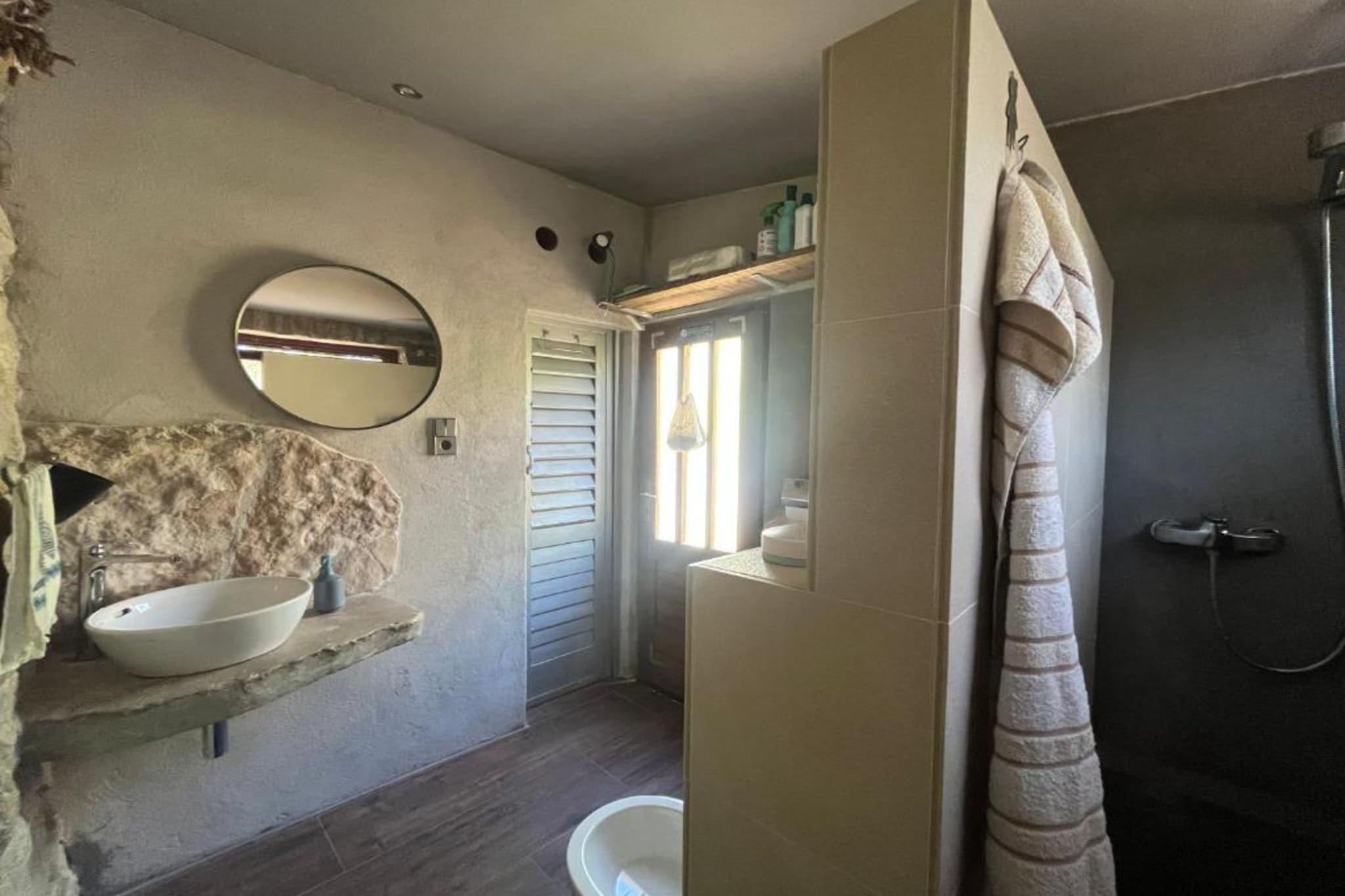 Near the beach, first row to the sea, the owners offer a plot that is suitable for an all-day picnic in the shade. The property is the only one adapted within the Eco Ethno Village Kacine. "Eco-Ethno" villages are, above all,l ideal places for relaxation in peace, disturbed only by the sounds of nature, which meet the needs of modern travelers who are looking for something new and special. In other words, small Dalmatian villages offer something different and natural, a return to nature enriched with cultural tradition. The exact location is the ethno-eco village of Kacine on Veli Drvenik, and it consists of three houses of a total of 120 m2 that form a functional unit, and communication is through the outdoor space. Due to the thick stone walls, the surface of the interior spaces is only 60 square meters in total. Note: Private parking is available, and a reservation is not required. A baby cot is available on request. Wi-Fi is available throughout the property. Pets are not allowed. There is outdoor shower as well. This two-bedroom can accommodate up to four guests. It is combined with a living room seating area and a kitchen. The private bathroom is equipped with a shower and toilet. Thanks to its excellent location, everything you'll need for your vacation is just a short walk from the property. Grocery stores, cafes, restaurants—everything is within a 2.00 km radius. The beach is 600 m away from the property. The airport is 65 km away from the property.