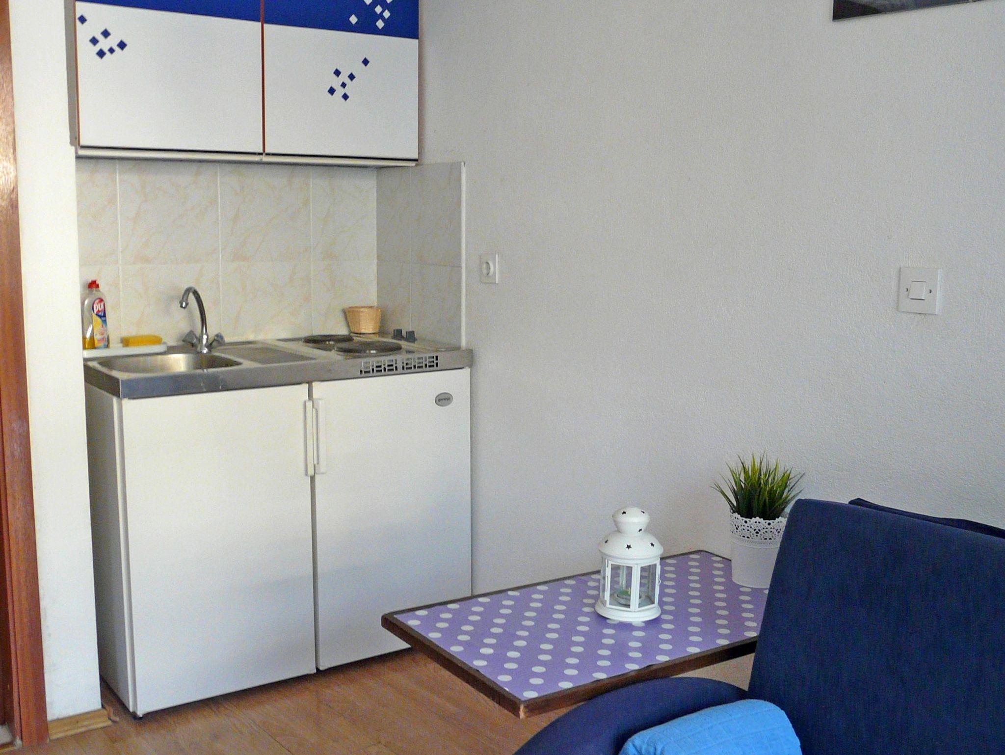 Studio bietet Platz für 3 Gäste. Die Betten sind in Schlafzimmern, die es 1 gibt, und in Wohnzimmer, innerhalb einer Gesamtfläche von 22m2, angeordnet. Die Gäste haben einen eigenen Balkon zur Verfügung, auf der sie in warmen Sommernächten genießen können. Das Studio-Apartment bietet Meerblick. IM PREIS INBEGRIFFEN: Kurtaxe, Endreinigung, Klimatisierung, Parkplatz, Internet, Wäschewaschen, Bügeleisen, Bügelbrett, Föhn. VERBINDLICHE ZUSÄTZLICHE KOSTEN: Aufzahlung für Kurzaufenthalte (prozentualer Zuschlag pro Nächtigungsanzahl: 30% - 1, 20% - 2, 10% - 3). Die Verfügbarkeit zusätzlicher Dienstleistungen in Ihrem reservierten Termin und die Preise derselben (falls nicht aufgeführt) müssen im Voraus überprüft werden. Zusätzliche Dienstleistungen die in der Zahlungsaufforderung nicht aufgeführt sind werden direkt beim Vermieter bezahlt, angenommen der Gast nutzt auch diese. Ermäßigung auf den Grundpreis: Gratistag 14=13 (bei einem Aufenthalt von 14 Tagen oder mehr erhalten Sie einen Gratistag für den Aufenthalt bis 31.12.26).