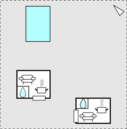 Opholdsstue/køkken 30m2 - 2 Sovepladser. (Dobbeltseng(e)). 1 Soveplads. (Sofa, madras eller lignende).