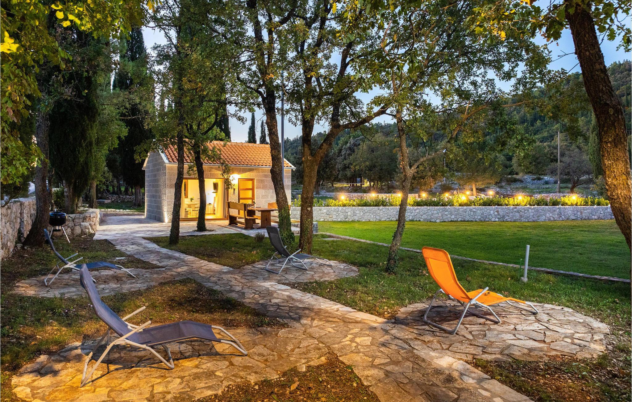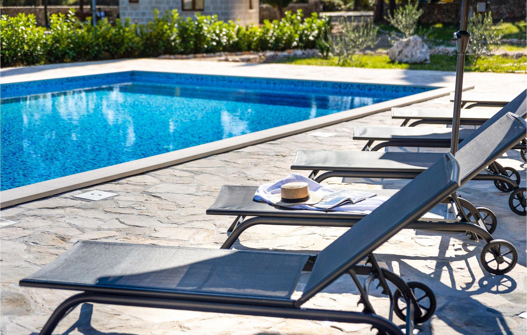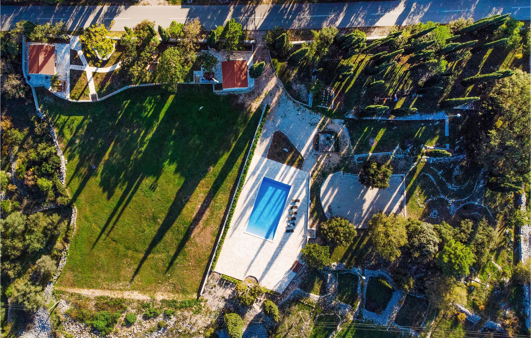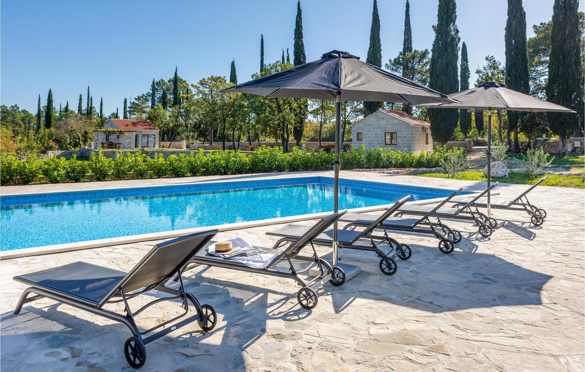 Her venter jer en skøn ferie i det sydlige Kroatien. Indkvarteringen består af to fuldt udstyrede, velindrettede huse i smagfuld, gennemført stil og med åben planløsning, der tillader et smart rum med alt-i-ét. Sammensmeltningen af alle husets funktioner formidler et fokus på samvær, og der er således lagt op til en par- eller familieferie med nærvær. Haven med sine talrige træer tilbyder jer ikke kun terrasserne, men også en stor swimmingpool med solterrasse, hvor I kan komme helt ned i gear og nyde roen omkring jer. Gå i gang med den bog, som I endnu ikke har haft tid til at læse, eller lyt til jeres yndlingspodcast i den frodige have.