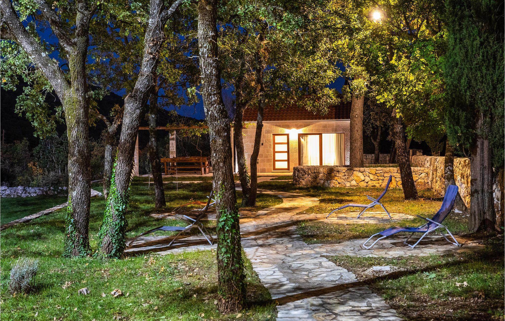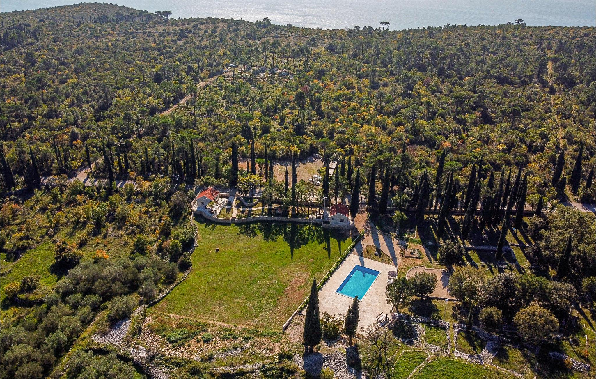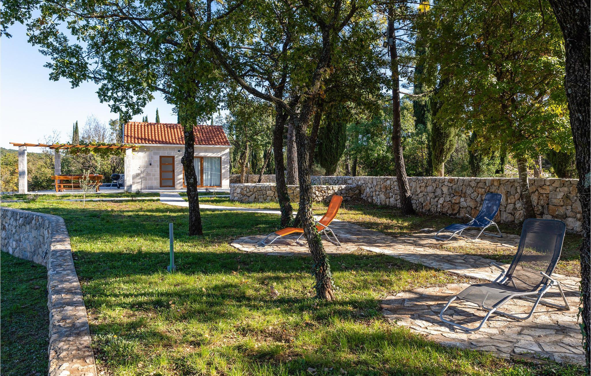 Her venter jer en skøn ferie i det sydlige Kroatien. Indkvarteringen består af to fuldt udstyrede, velindrettede huse i smagfuld, gennemført stil og med åben planløsning, der tillader et smart rum med alt-i-ét. Sammensmeltningen af alle husets funktioner formidler et fokus på samvær, og der er således lagt op til en par- eller familieferie med nærvær. Haven med sine talrige træer tilbyder jer ikke kun terrasserne, men også en stor swimmingpool med solterrasse, hvor I kan komme helt ned i gear og nyde roen omkring jer. Gå i gang med den bog, som I endnu ikke har haft tid til at læse, eller lyt til jeres yndlingspodcast i den frodige have.