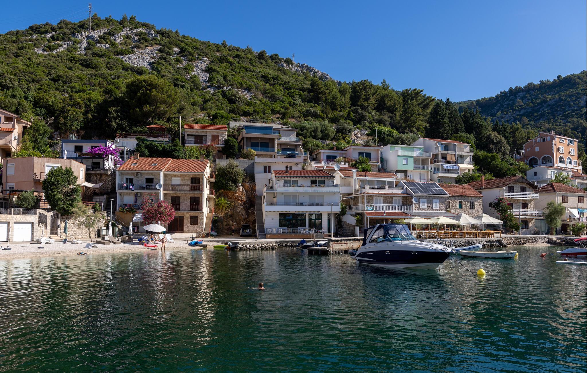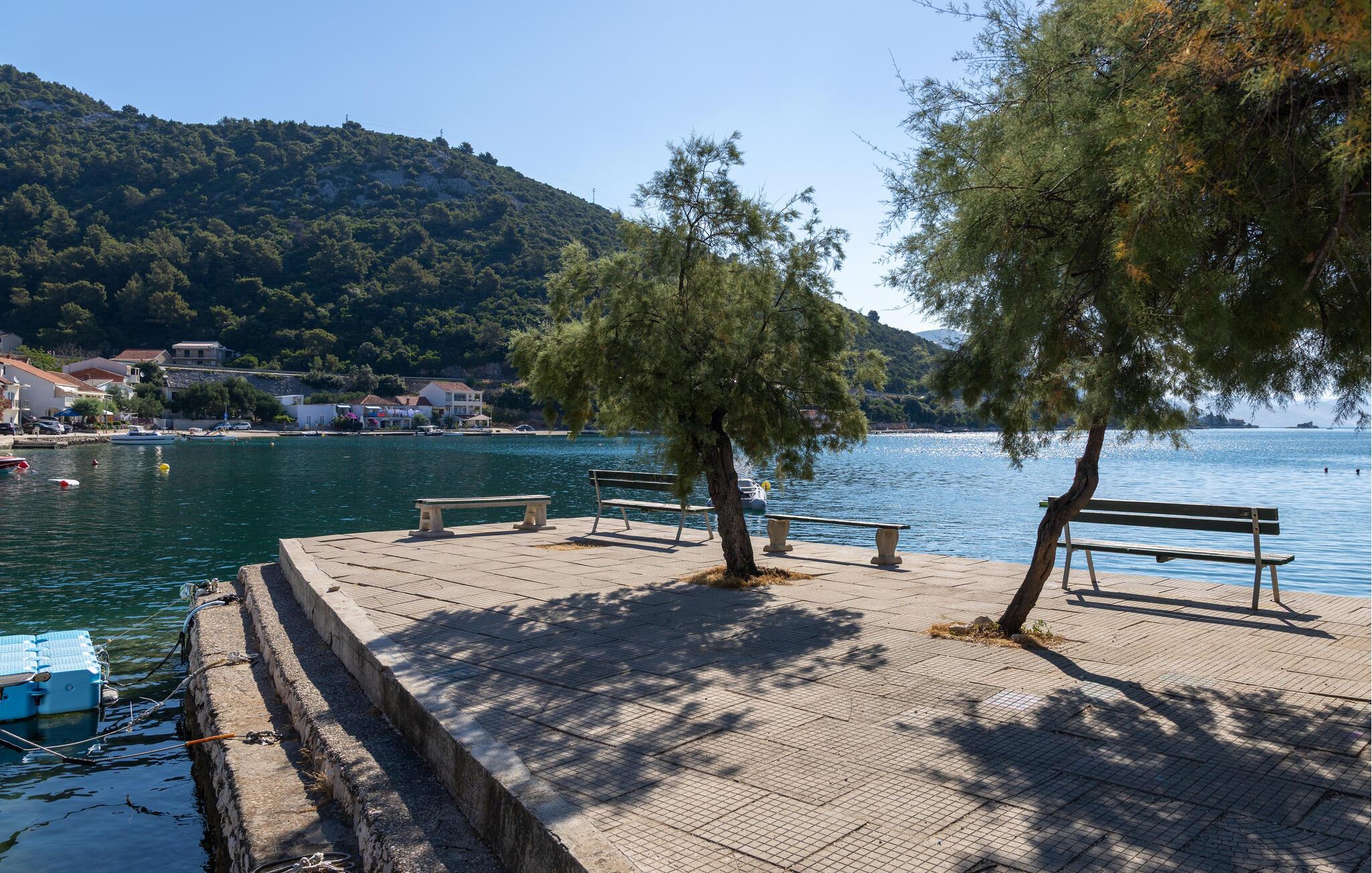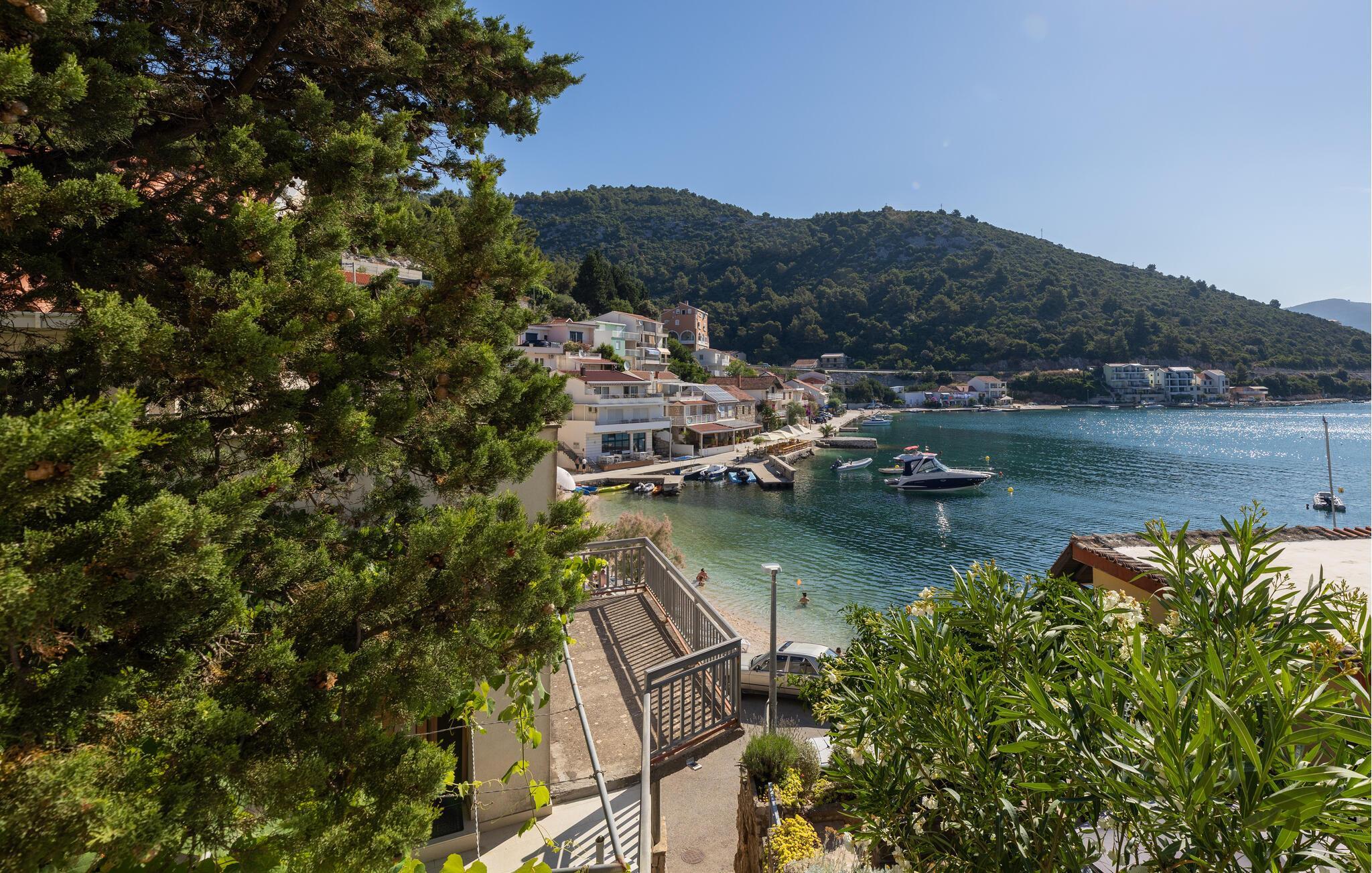 Slap af i denne praktiske ferielejlighed med en fantastisk havudsigt. Denne hyggelige lejlighed tilbyder alt, hvad I behøver for et afslappet og ukompliceret ophold: en lys stue med spisebord, en komfortabel sofa og et praktisk køkken. Slap af her, mens I tilbereder jeres yndlingsmåltid og nyder et godt glas vin. Gå ud på terrassen om morgenen med en dejlig kop kaffe og nyd den smukke udsigt over det blå hav og bugtens bølgende bakker. Læn jer tilbage og fordyb jer i middelhavsstemningen. Kun få meter væk ligger stranden, hvor I kan svømme i Adriaterhavets krystalklare vand og nyde solen. Udforsk de historiske gader i Dubrovniks gamle bydel, der er på UNESCOs verdensarvsliste. Tag en bådtur til de omkringliggende øer, eller oplev skjulte bugter, mens I ror kajak langs kysten. Vandreentusiaster vil nyde den betagende udsigt på ture gennem de grønne bakker omkring Klek.