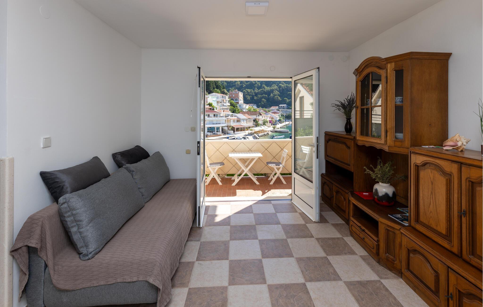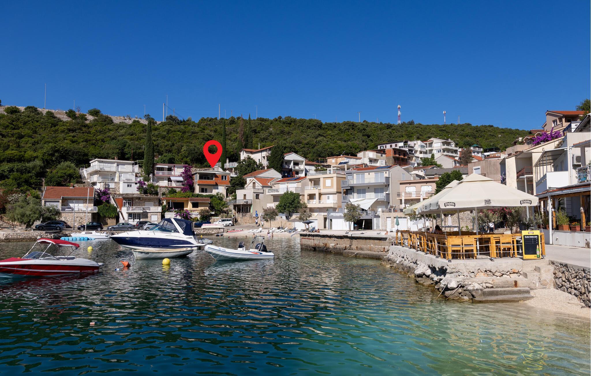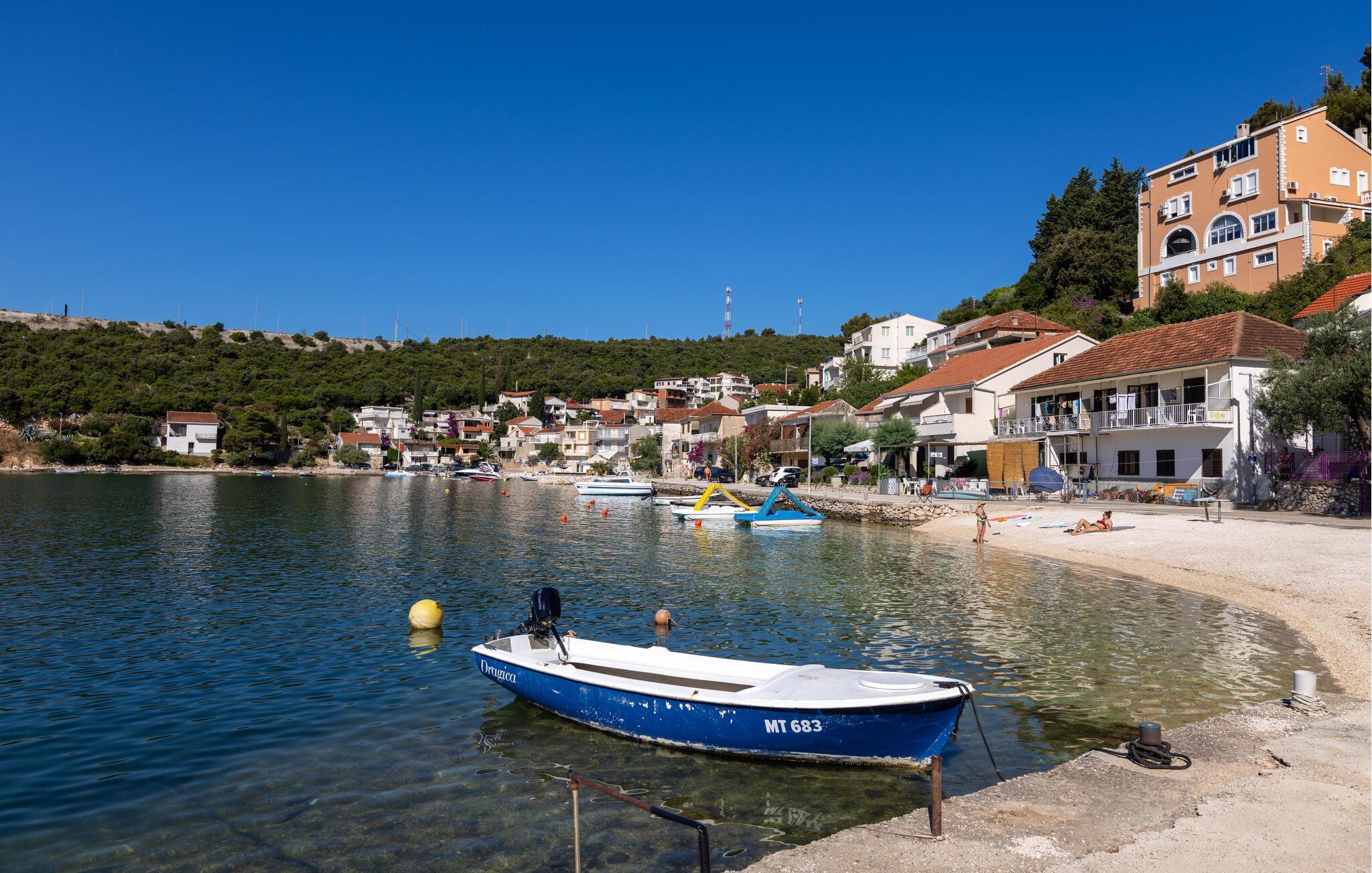 Slap af i denne praktiske ferielejlighed med en fantastisk havudsigt. Denne hyggelige lejlighed tilbyder alt, hvad I behøver for et afslappet og ukompliceret ophold: en lys stue med spisebord, en komfortabel sofa og et praktisk køkken. Slap af her, mens I tilbereder jeres yndlingsmåltid og nyder et godt glas vin. Gå ud på terrassen om morgenen med en dejlig kop kaffe og nyd den smukke udsigt over det blå hav og bugtens bølgende bakker. Læn jer tilbage og fordyb jer i middelhavsstemningen. Kun få meter væk ligger stranden, hvor I kan svømme i Adriaterhavets krystalklare vand og nyde solen. Udforsk de historiske gader i Dubrovniks gamle bydel, der er på UNESCOs verdensarvsliste. Tag en bådtur til de omkringliggende øer, eller oplev skjulte bugter, mens I ror kajak langs kysten. Vandreentusiaster vil nyde den betagende udsigt på ture gennem de grønne bakker omkring Klek.