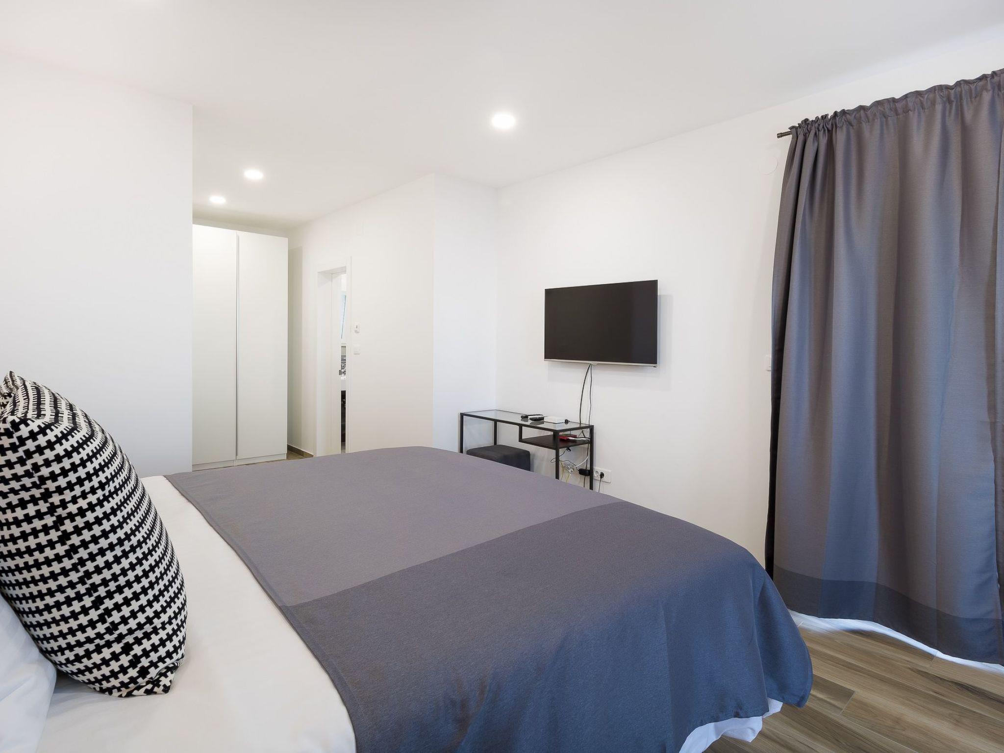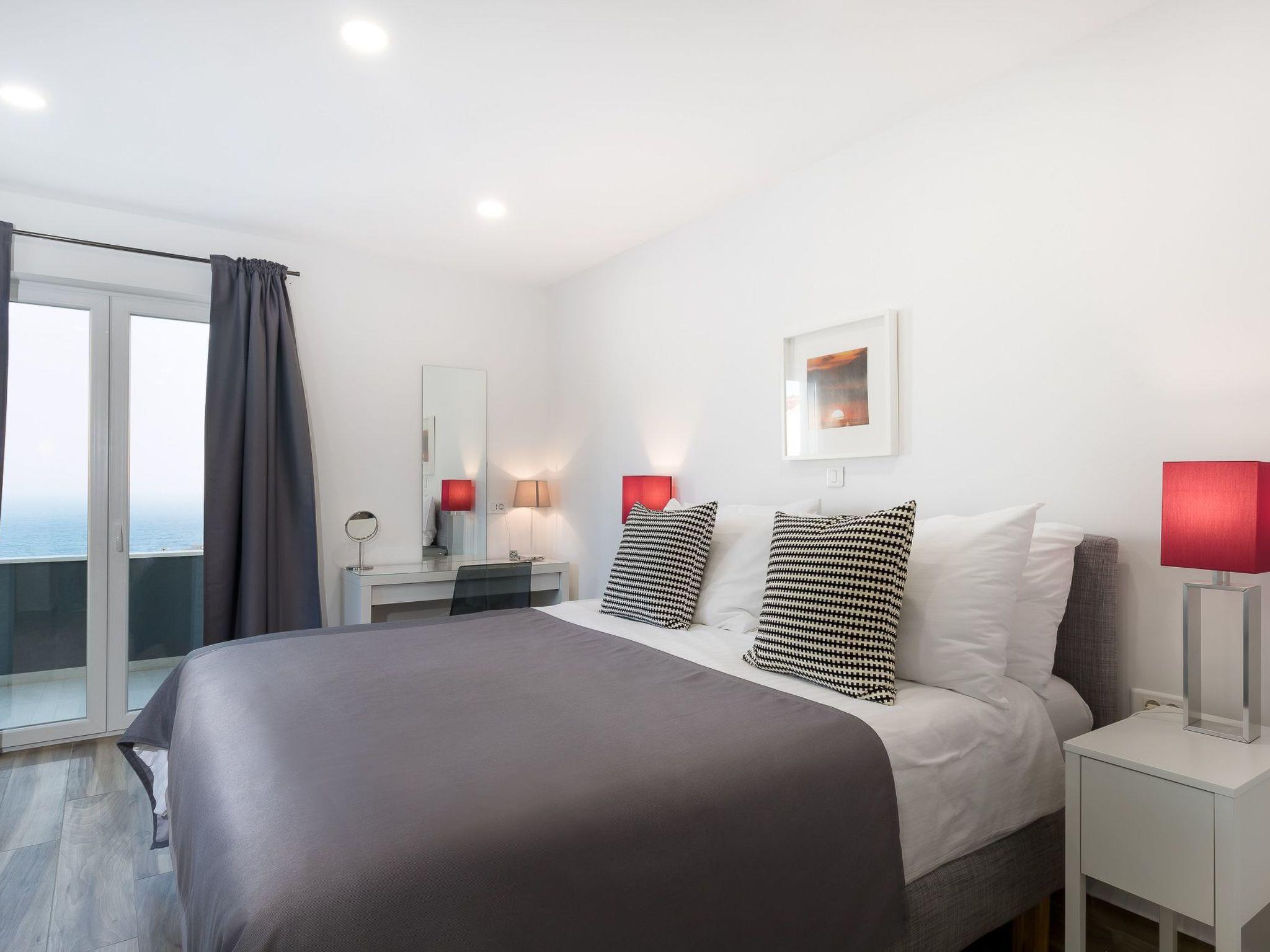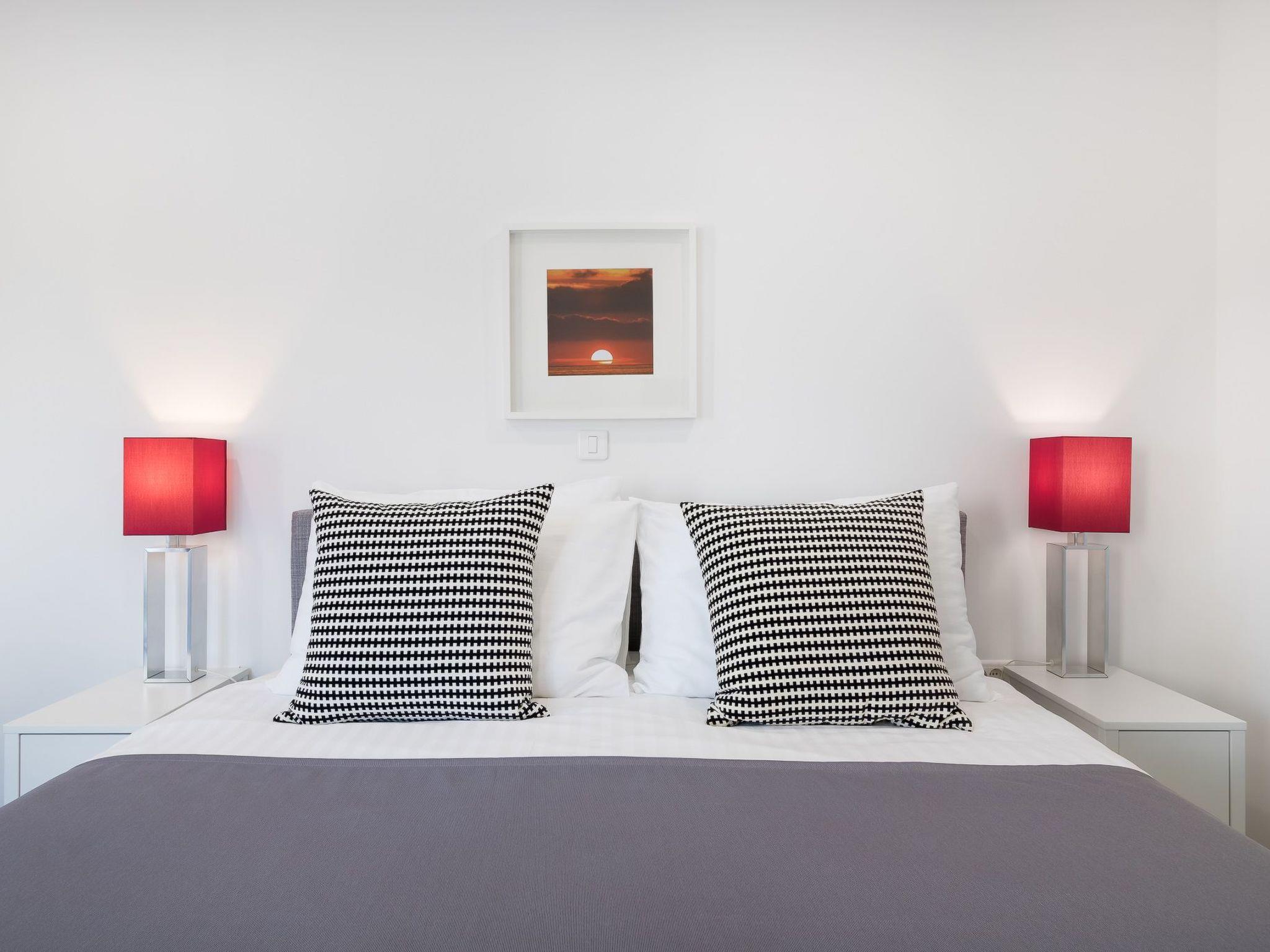 This modern and spacious holiday flat is spread over two floors and has a living/dining room with open-plan kitchen, four bedrooms and three bathrooms. The living/dining room is furnished with a sofa bed for a maximum of one child or teenager, a dining table, a smart TV and a fully equipped kitchen with a cooking island, all appliances and sufficient cutlery and crockery. The bedrooms all have a double bed measuring 180 cm x 200 cm. Two bedrooms have an en-suite bathroom. Two bathrooms are equipped with a shower, a washbasin and a toilet. The third bathroom has a bath, washbasin and toilet. There is also a fourth separate toilet. The master bedroom with en-suite bathroom with bathtub has a balcony with views of the old town and the sea and an LED TV.