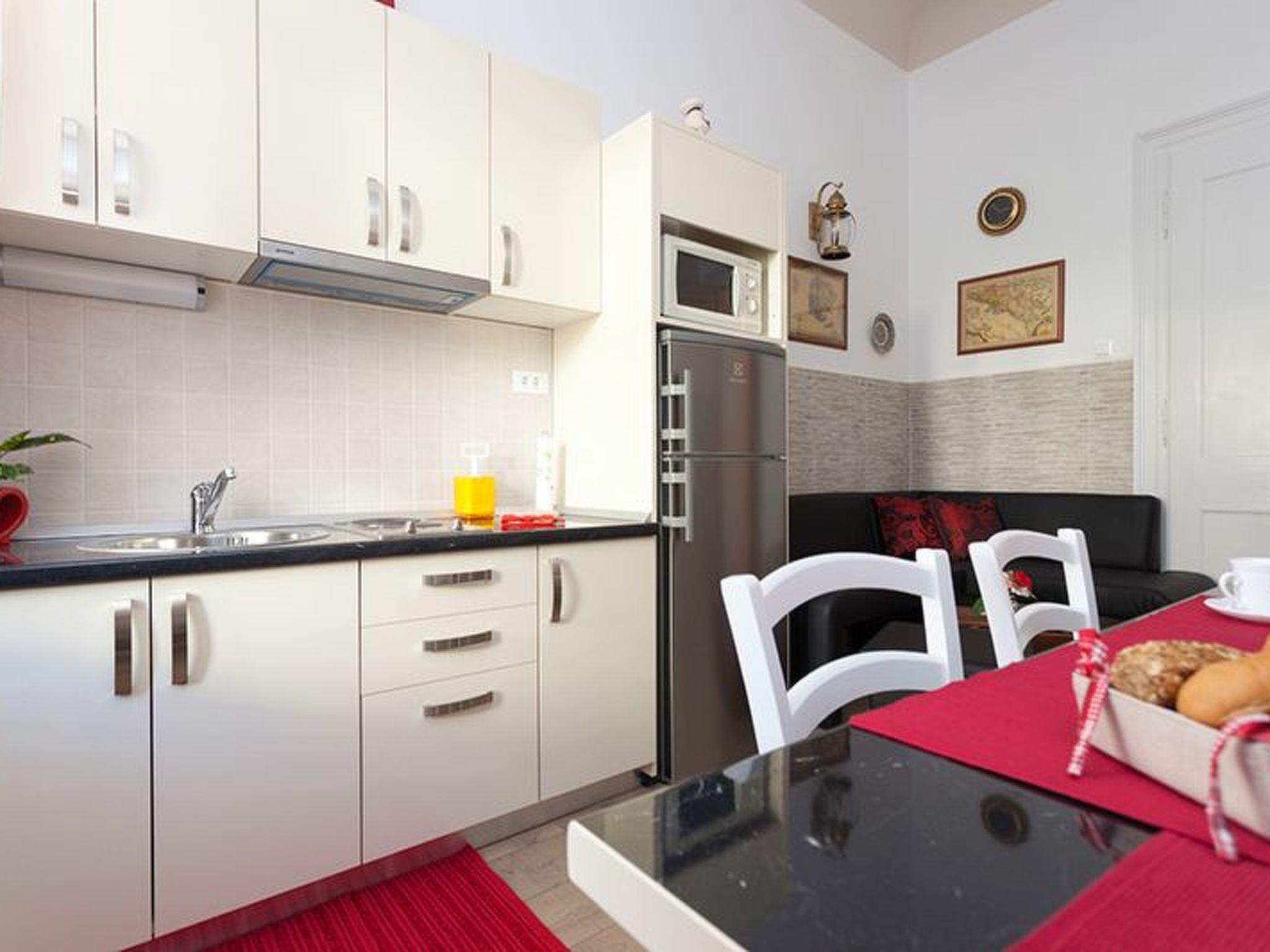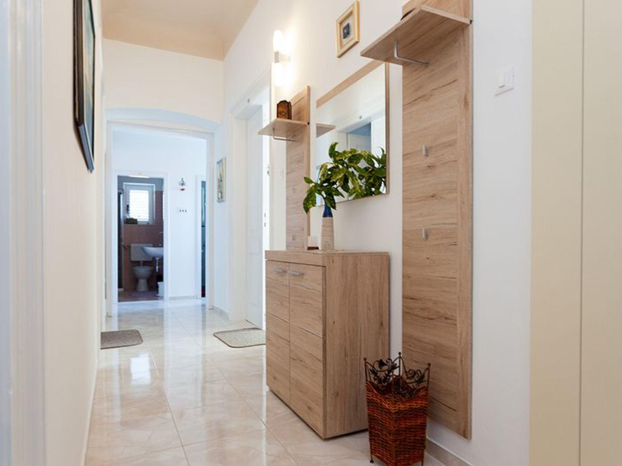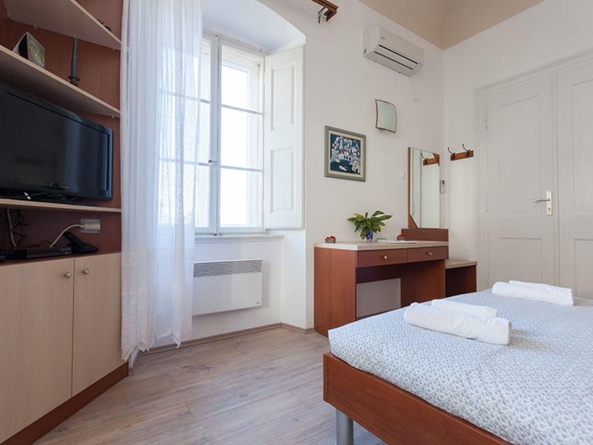 The apartment has 114m2 Is intended for 5 people, and consist of 1 bedroom with double bed, 1 bedroom with double bed and one single bed,Fully equiped kitchen, two bathrooms, one with shower, other with bath, hall, and large terazze table and chairs wth Old Town and Sea view. SAT TV, Air-condition, washing mashine. Safe, Baby crib Wireless internet connection