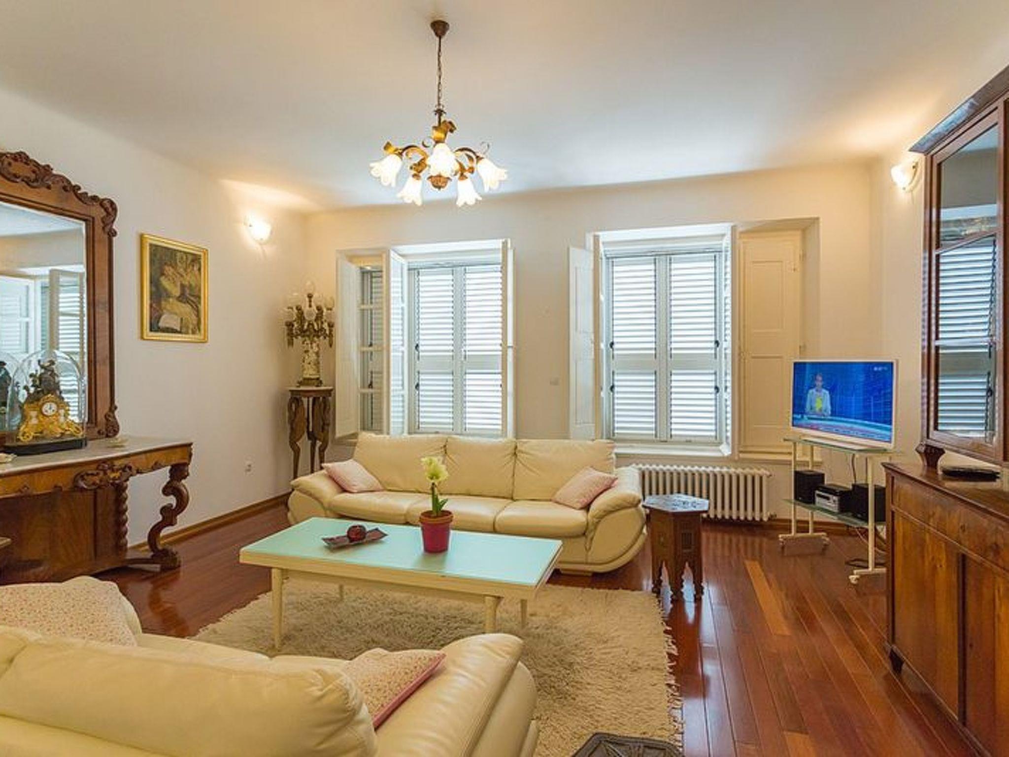 Apartment house Dvori offers a generous 100m2 of interior space, the highlight of which is the living room whose antique furnishings and high ceilings inspire the feeling of grandeur of centuries’ past.