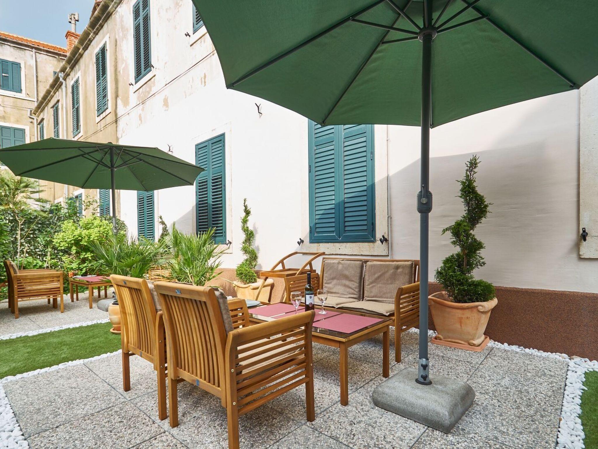 The apartment's exterior is equally enticing, with a spacious patio garden at the forefront. Here, you'll find tables and chairs set amongst lush greenery—a perfect spot for alfresco dining or simply soaking up the serene atmosphere. The garden offers ample space for children to play, making it a hit with families. Just 30 meters from your doorstep, the beautiful pebble beach Suljic invites you to enjoy the sun and sea, while the absence of stairs to the apartment makes it accessible for the elderly or those with mobility impairments—however, it is not suitable for wheelchair users.
