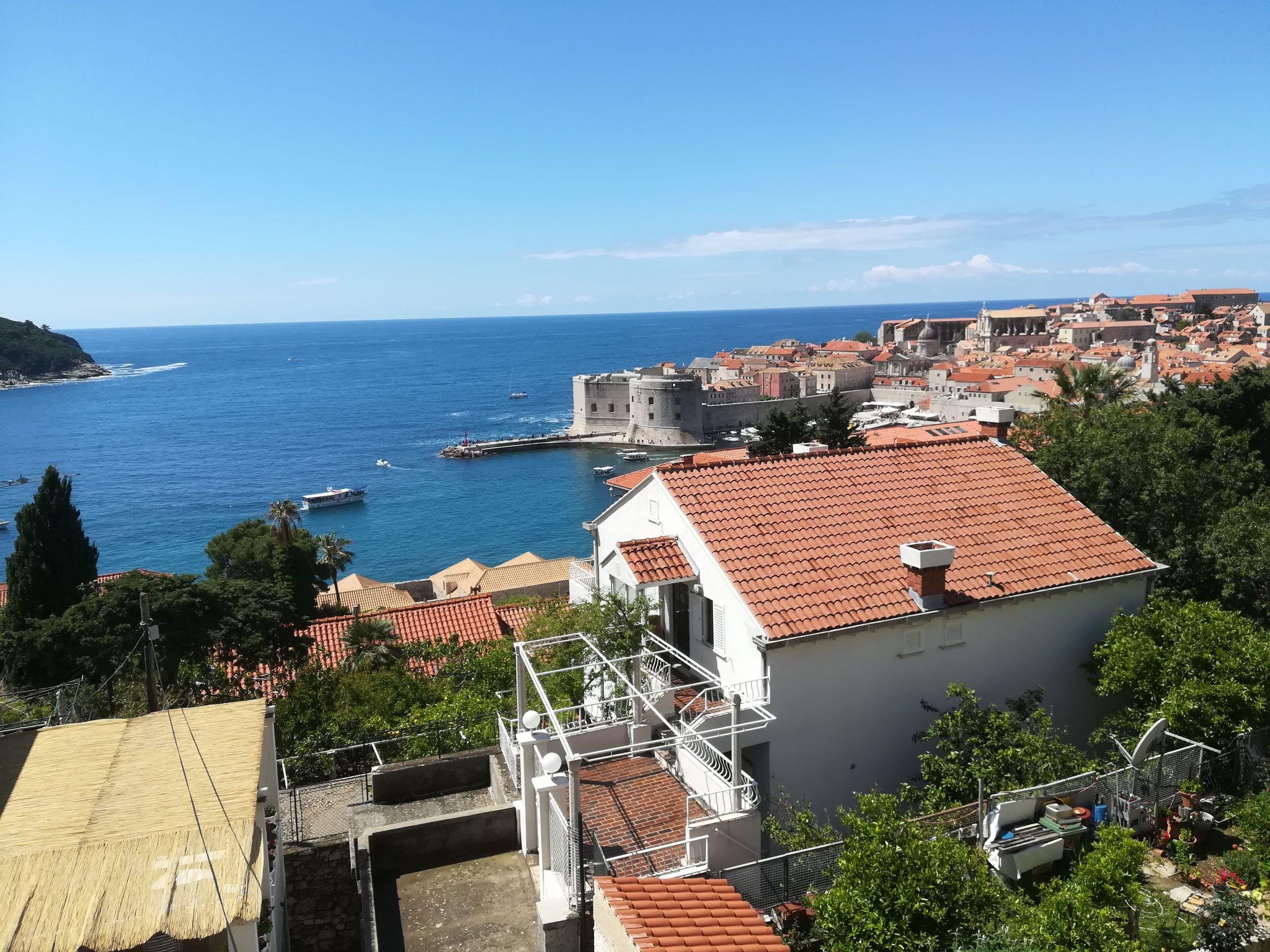 Holiday apartment with a sea view balcony and private use of the terrace in the garden, for up to 4 persons, 5 minutes from Banje beach and the Old Town