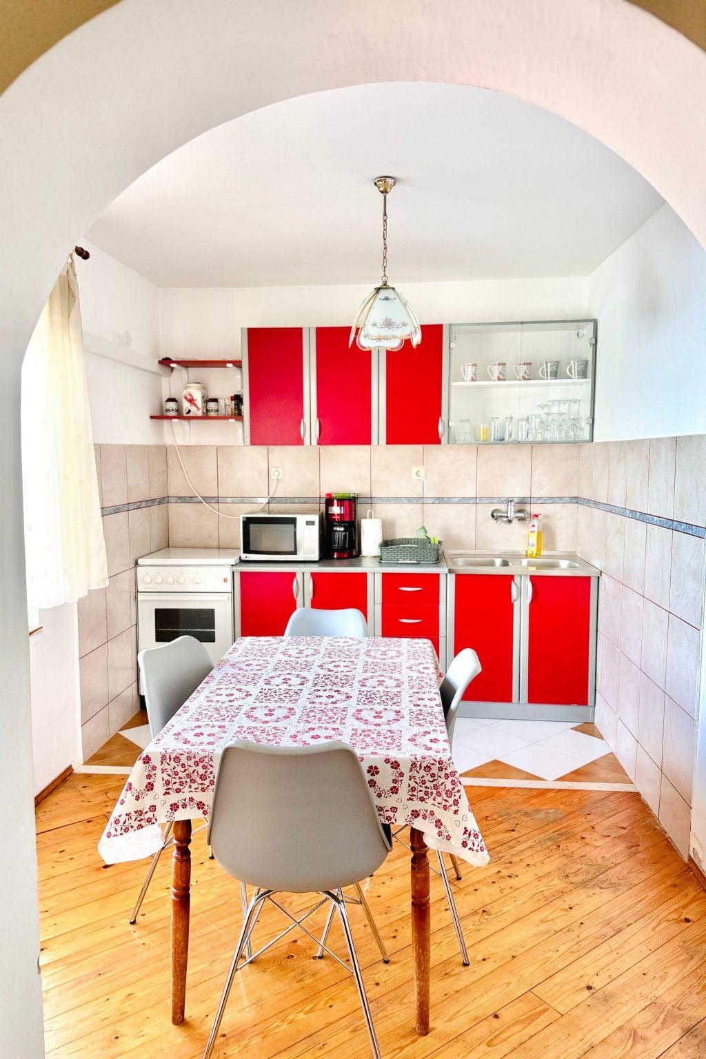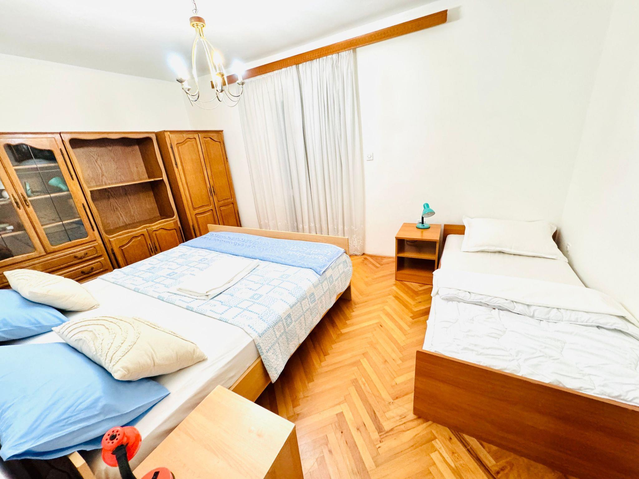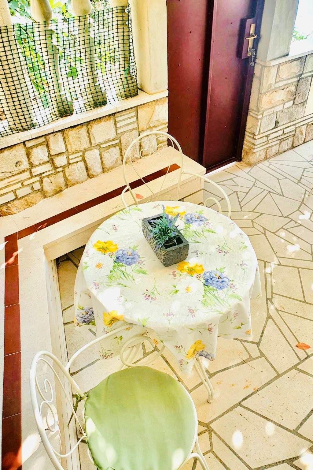 The villa contains two very spacious flats( an each flat's size is 150 square meters with the terrace or / with a very long balcony with the excellent sea-views). An each flat has an independent entry ( private entrance ). This holiday home contains spacious and comfortable five bedrooms + there are large sofa beds in spacious living rooms, fully equipped kitchens, bathrooms, 2 large stone terraces and balconies with excellent sea-views, air - conditioning, satellite TV, BBQ and many other facilities. All rooms are extremely bright and spacious as well as most of the rooms have the excellent sea- views!