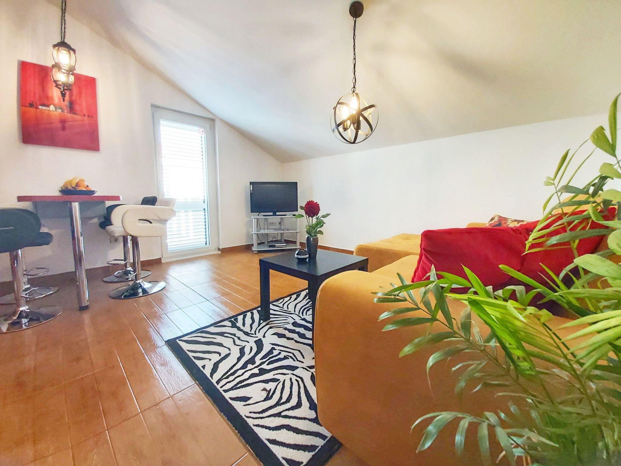 Embrace the apartment's prime location, a mere stone's throw from both the tranquil beach and the invigorating sea, each located 500 meters away, promising leisure and relaxation at your doorstep. The convenience of having the nearest town center within 200 meters means that essentials and more are never far away. From grocery shopping, just 100 meters from your door, to exploring a variety of dining options and engaging in local nightlife, everything you need for an authentic Dalmatian experience is within easy reach.