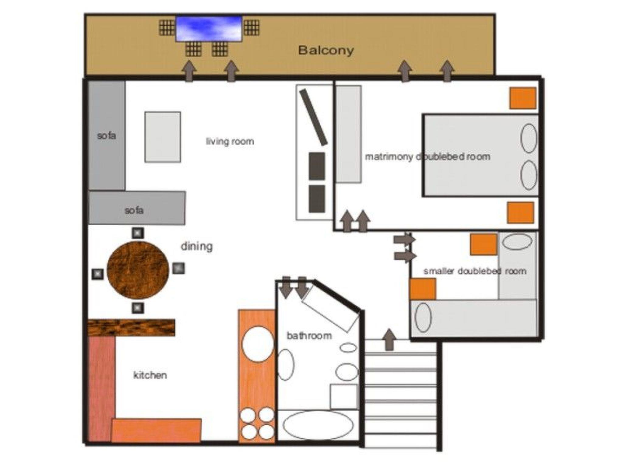 In our vacation apartment is one matrimony double bedroom, one small double bed room, a well equipped kitchen with all necessary modern equipment, a bathroom with washing machine, a comfortable living room with satellite digital LCD TV, music line and DVD.