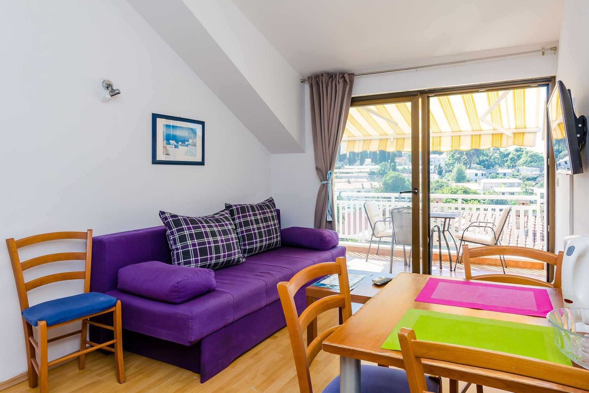 Apartments Princ Hrvoje er en indkvartering med egen forplejning i Dubrovnik. Ejendommen tilbyder fire enheder med aircondition.Barneseng er tilgængelig efter anmodning.Apartments Princ Hrvoje kan organisere daglige ture og lufthavnstransport mod et tillægsgebyr.Denne studiolejlighed kan komfortabelt rumme tre voksne og et barn op til 12 år.Denne rummelige studiolejlighed har gratis WiFi, aircondition og satellit-tv. Studiet har dobbeltseng, opholdsområde, enkelt sofa og tekøkken udstyret med køleskab, komfur, brødrister og mikroovn. Der er eget badeværelse med bruser. Møbleret balkon er til gæsternes rådighed.Barneseng er tilgængelig efter anmodning.De mest interessante seværdigheder kan ses i den berømte gamle bydel i Dubrovnik, som ligger 18 minutters gang fra overnatningsstedet, samt forskellige strande, restauranter, caféer, barer, butikker, bagerier og banker. Gæsterne kan også finde en købmand og en busstation inden for 100 meters rækkevidde. Den nærmeste strand ""Bellevue"" er 800 meter væk fra ejendommen. Vi anbefaler at nyde en svævebanetur, stationen ligger kun 20 minutters gang fra boligen. Det tilbyder panoramaudsigt over det historiske centrum og de omkringliggende øer.Dubrovniks busstation og færgehavn, der forbinder fastlandet med forskellige dalmatiske øer, ligger 5 minutters kørsel fra overnatningsstedet, mens Dubrovnik Lufthavn ligger 21 km derfra.